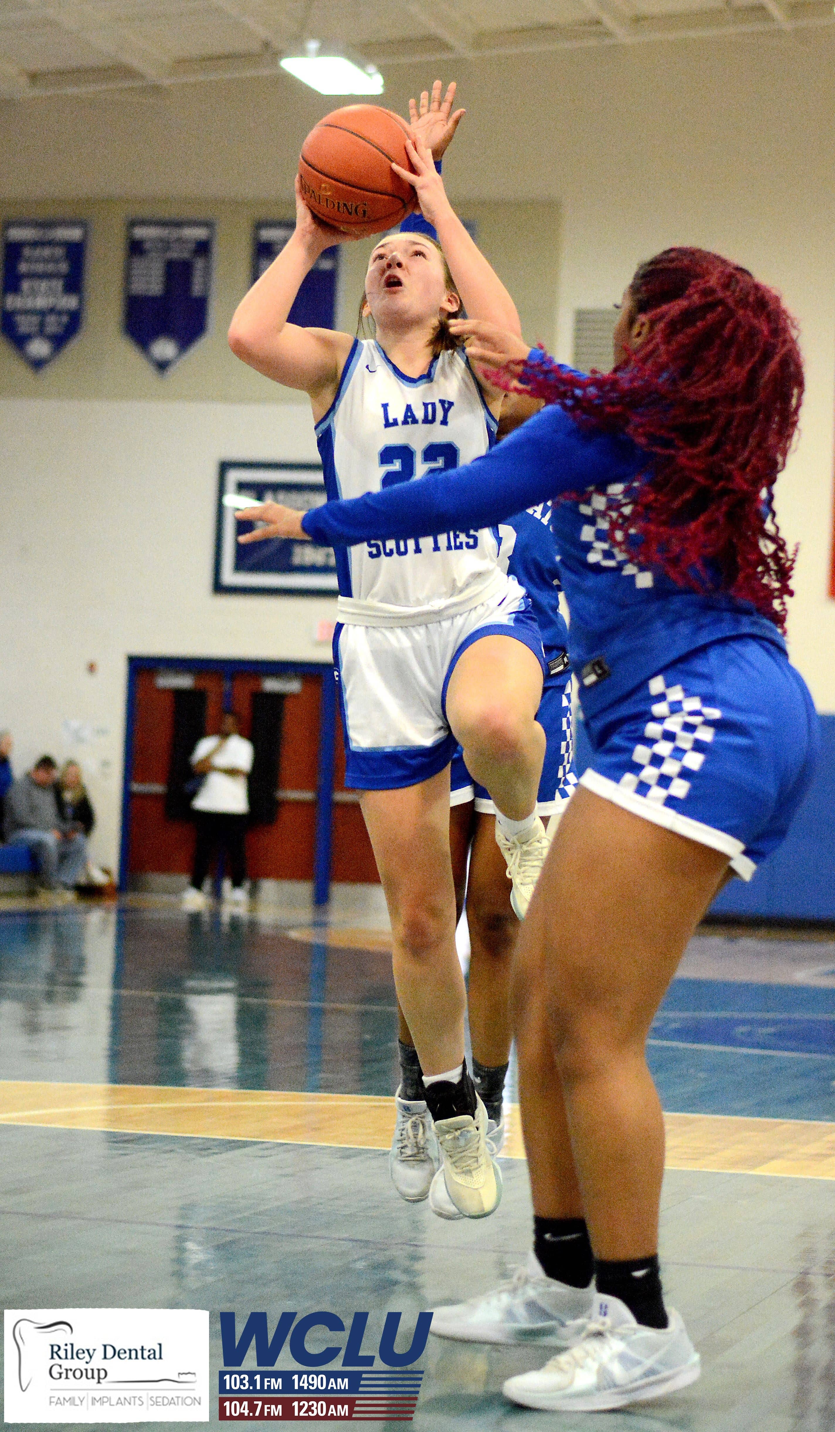 Glasgow’s Kayla Kirkpatrick shoots a layup against Franklin-Simpson. Glasgow lost, 65-40. John Brown/WCLU Sports