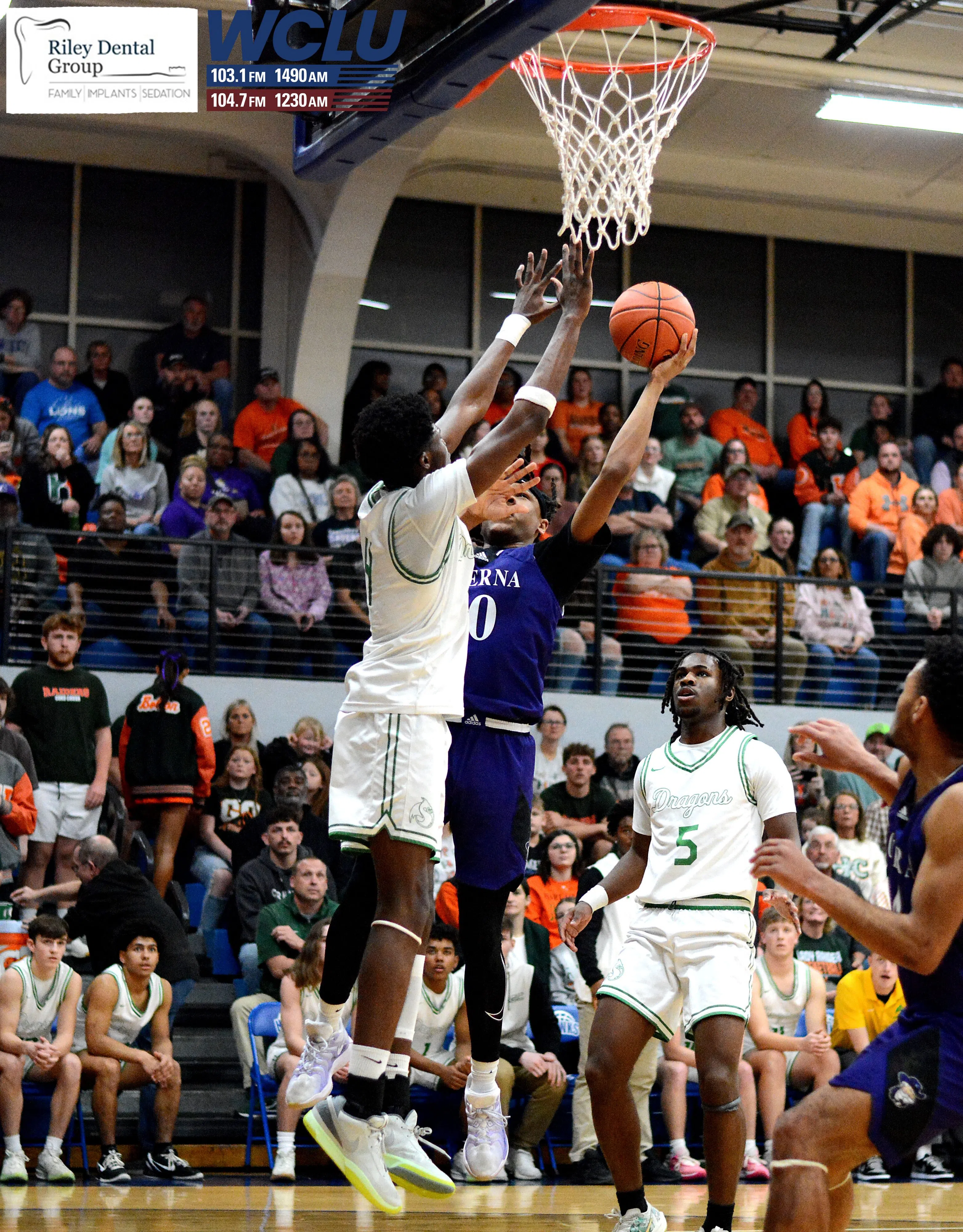 Caverna’s Russell Williams looks at his shot as Cortavian Maxey charges in to get the rebound against Green County in the Boys’ 18th District Tournament. Caverna lost, 62-53. John Brown/WCLU Sports