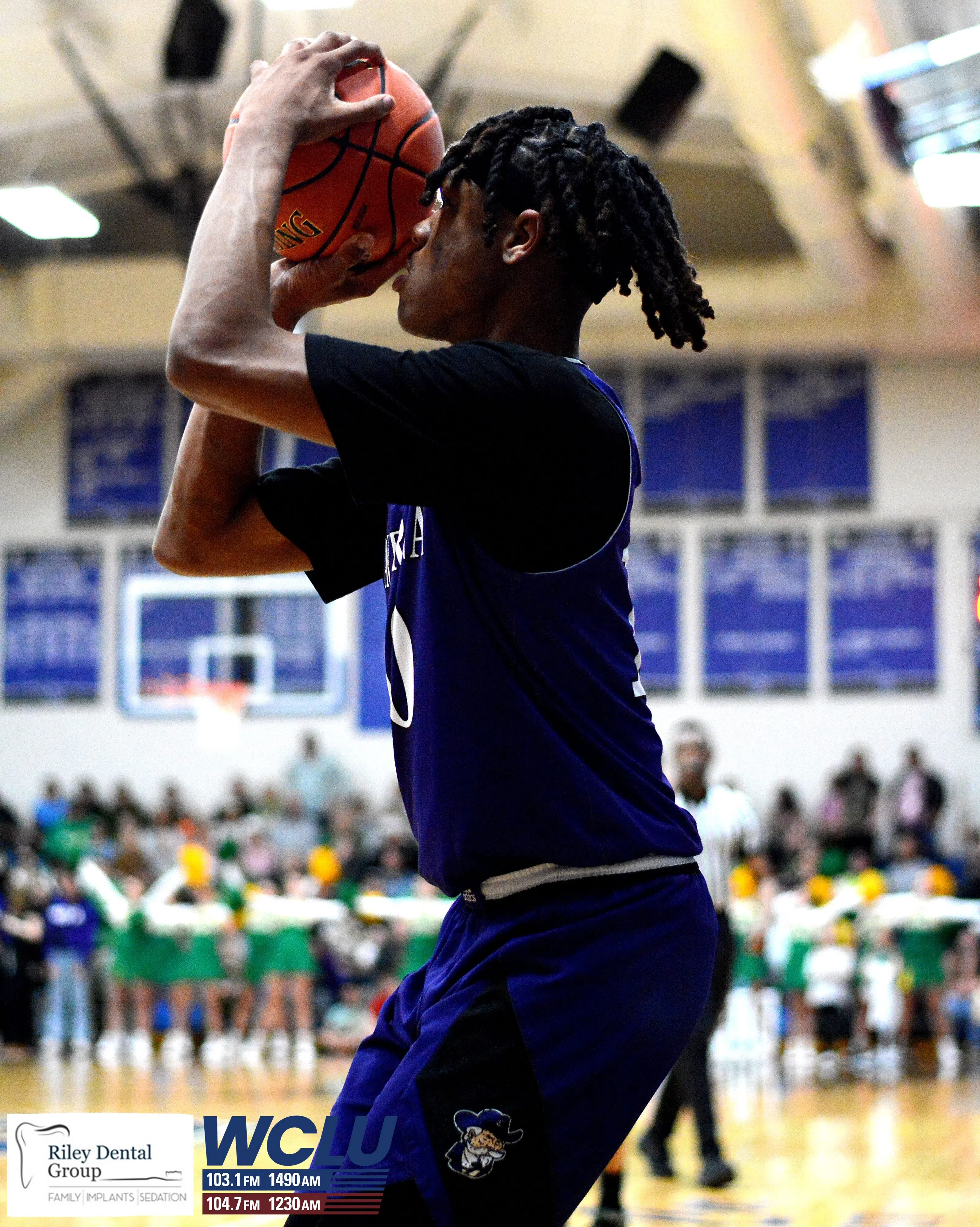 Caverna’s Cortavian Maxey sets to shoot against Green County in the Boys’ 18th District Tournament. Caverna lost, 62-53. John Brown/WCLU Sports