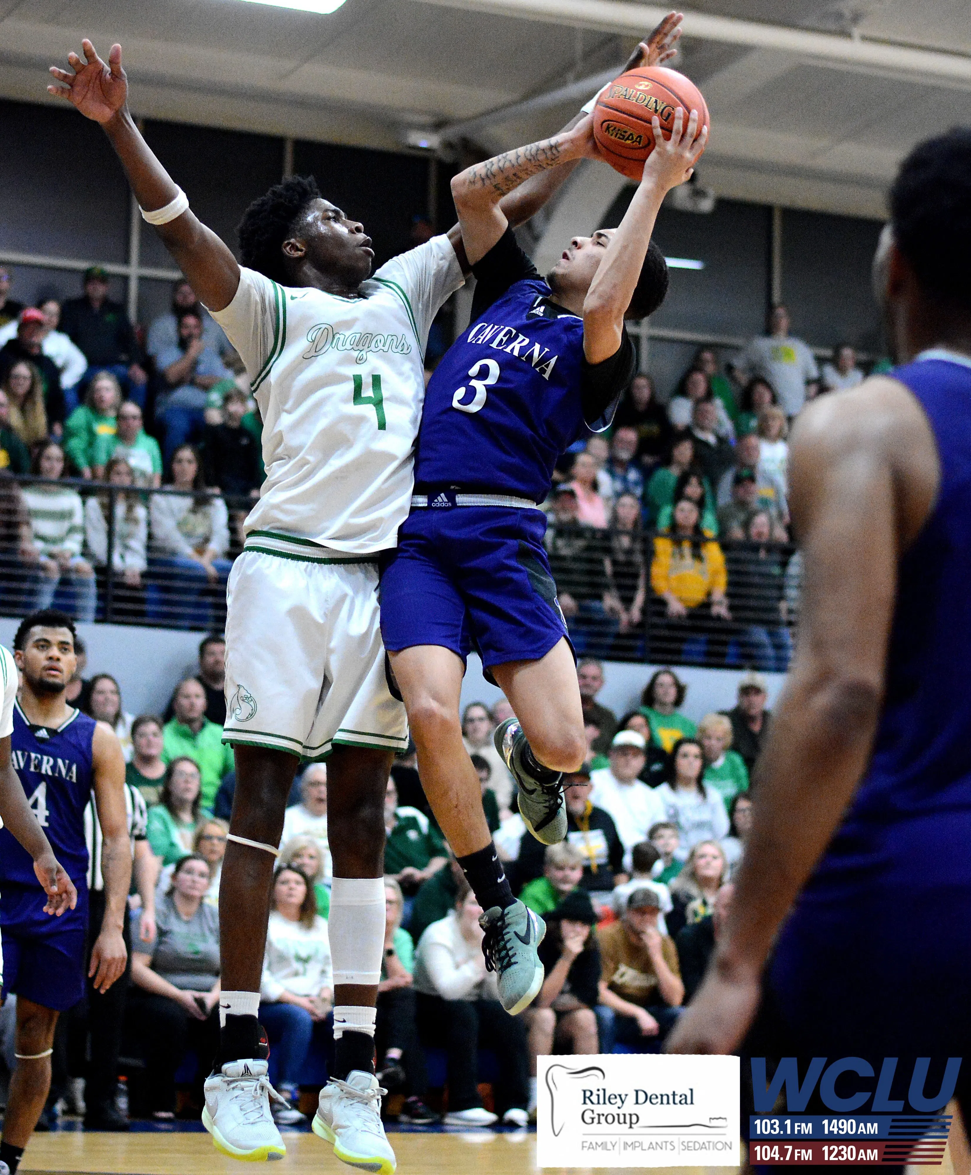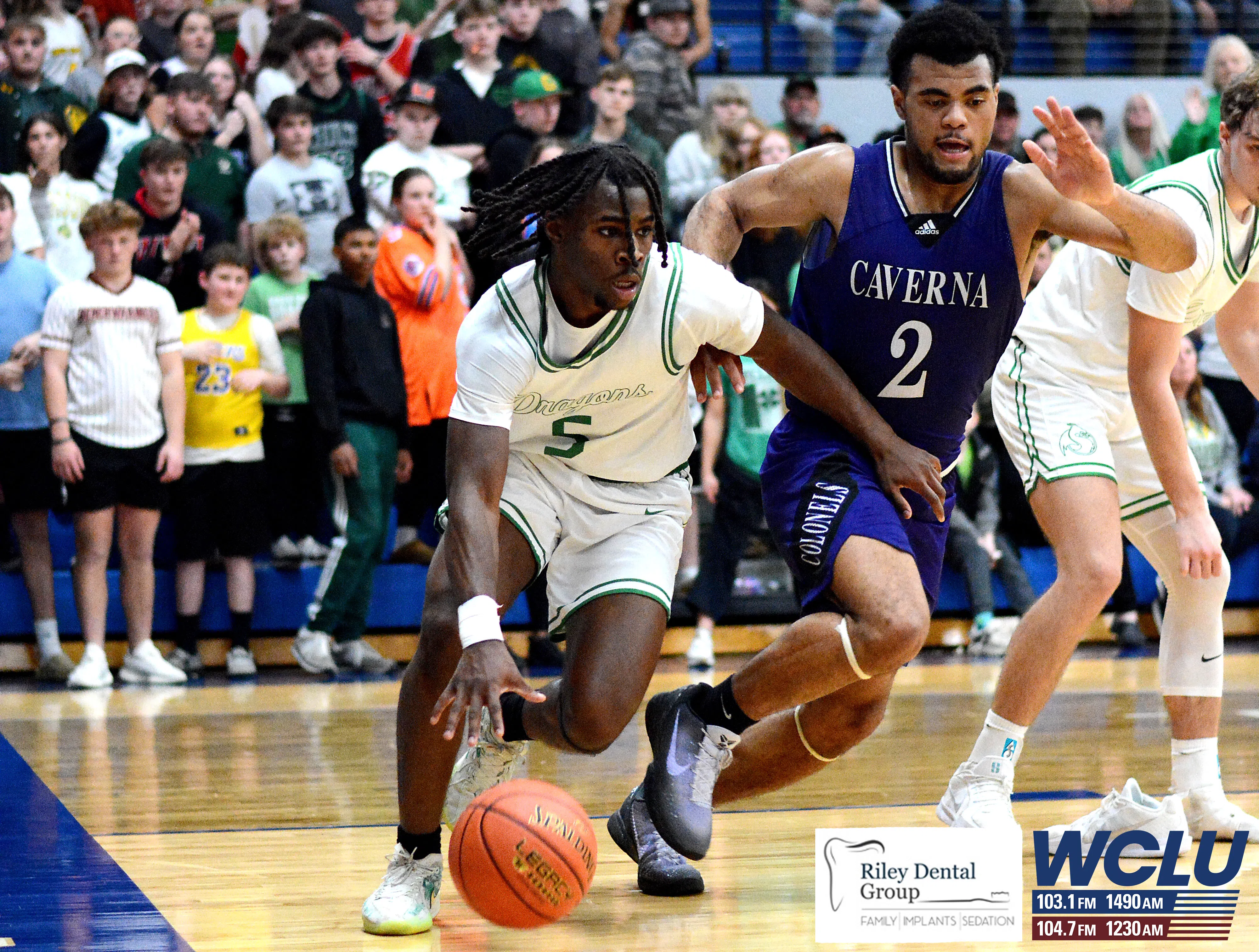 Caverna’s Jaylin Craine drives by his defender against Green County in the Boys’ 18th District Tournament. Caverna lost, 62-53. John Brown/WCLU Sports