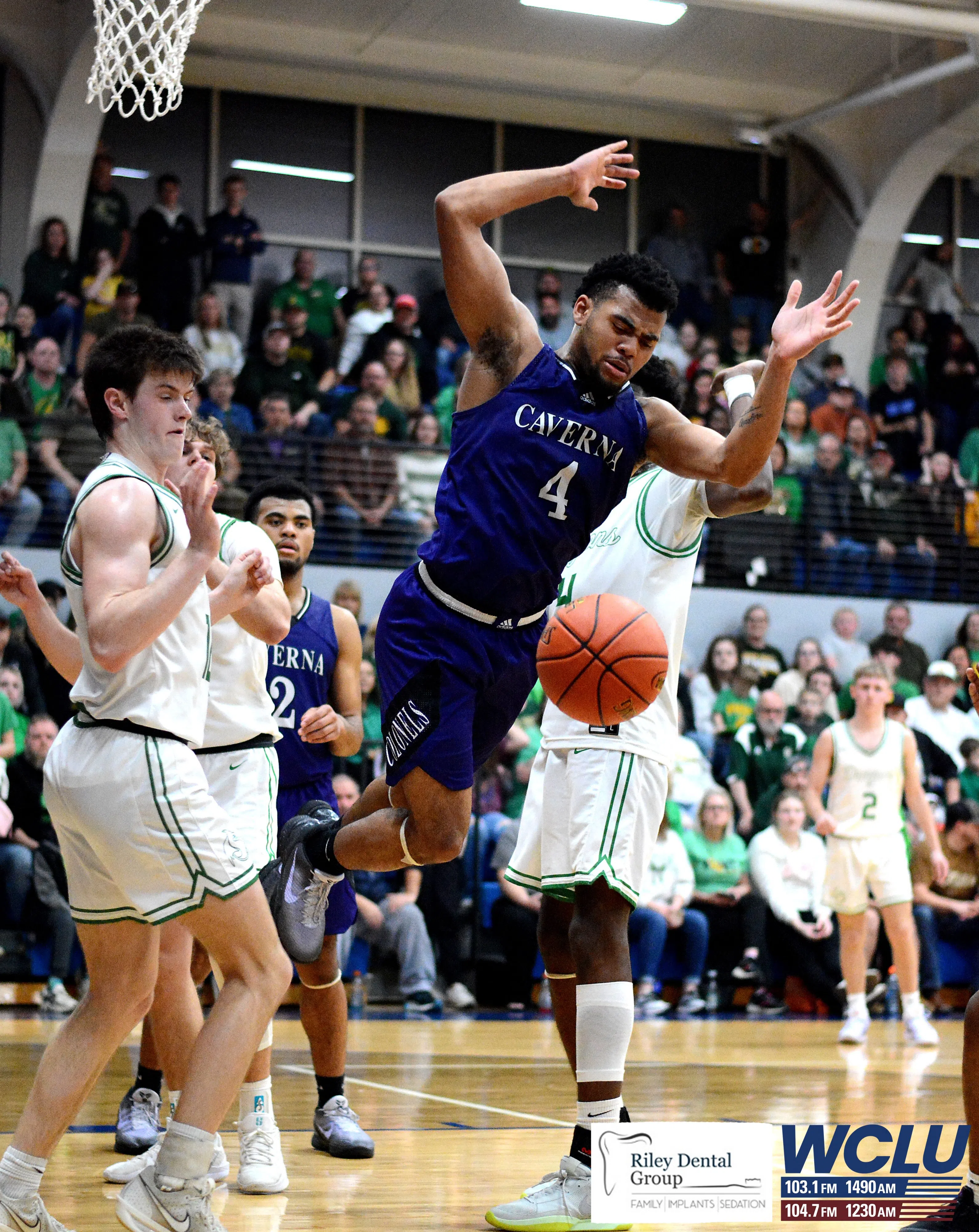 Caverna’s Tyson Martin is fouled as he shoots against Green County in the Boys’ 18th District Tournament. Caverna lost, 62-53. John Brown/WCLU Sports