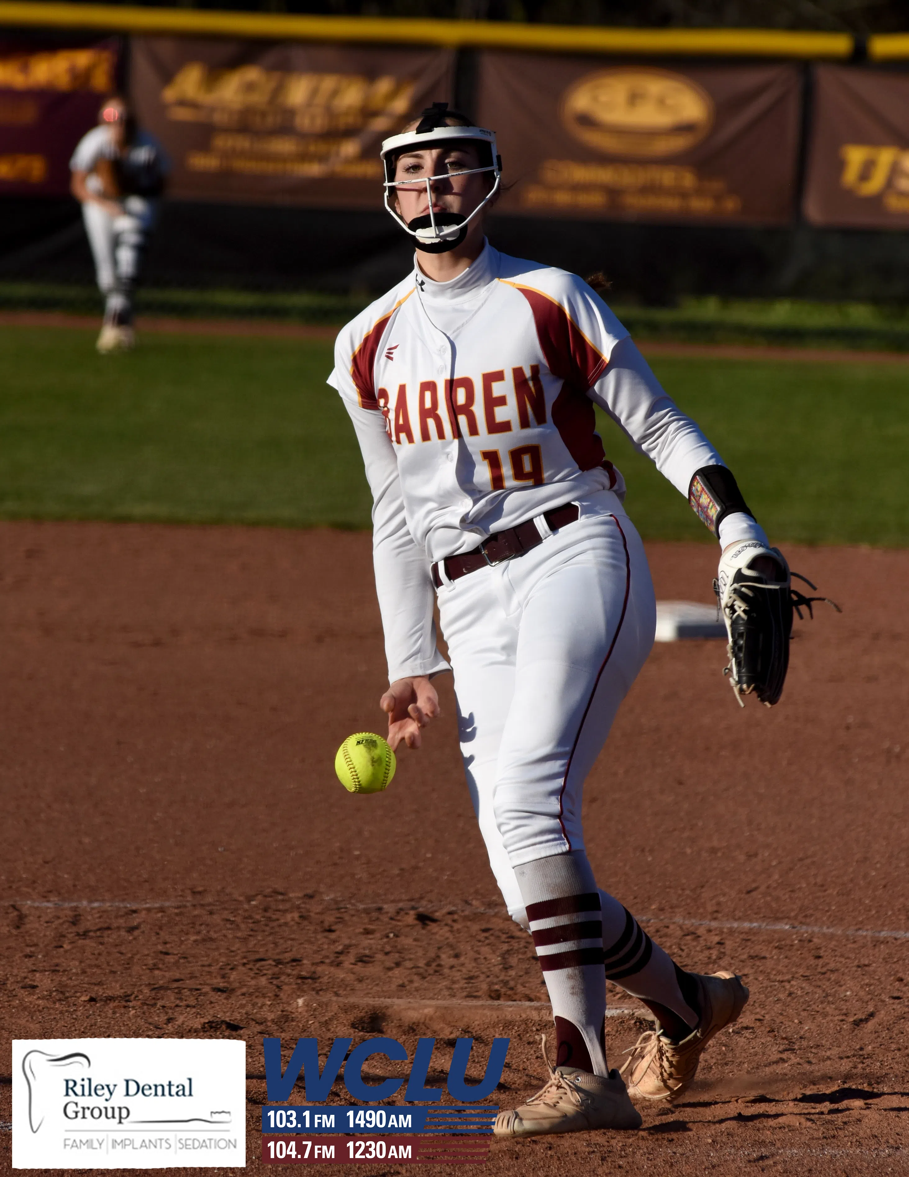 Barren County’s Shea Bogue pitches against Warren East in a 15th District contest. The Trojanettes won, 10-4. James Brown/WCLU Sports