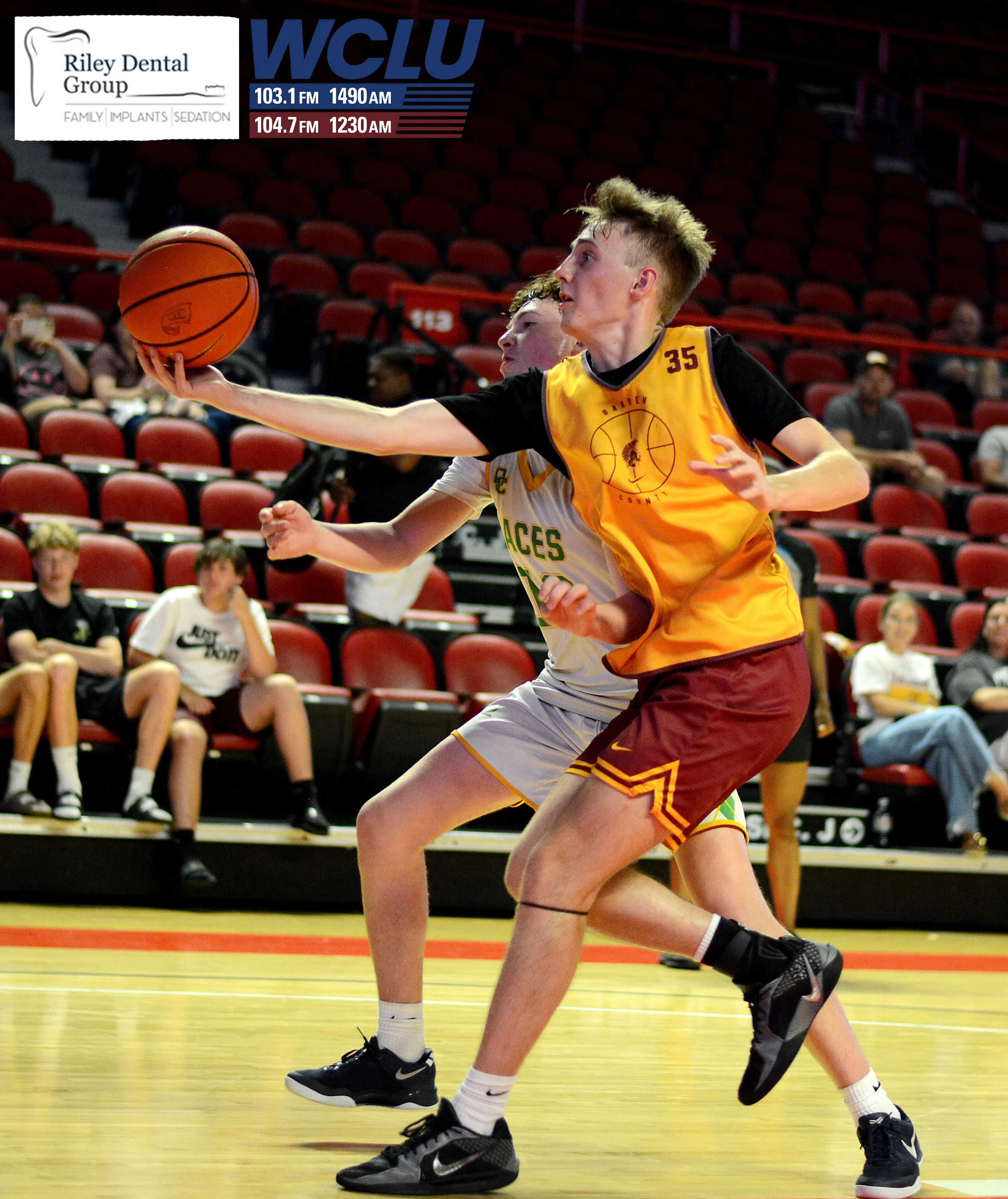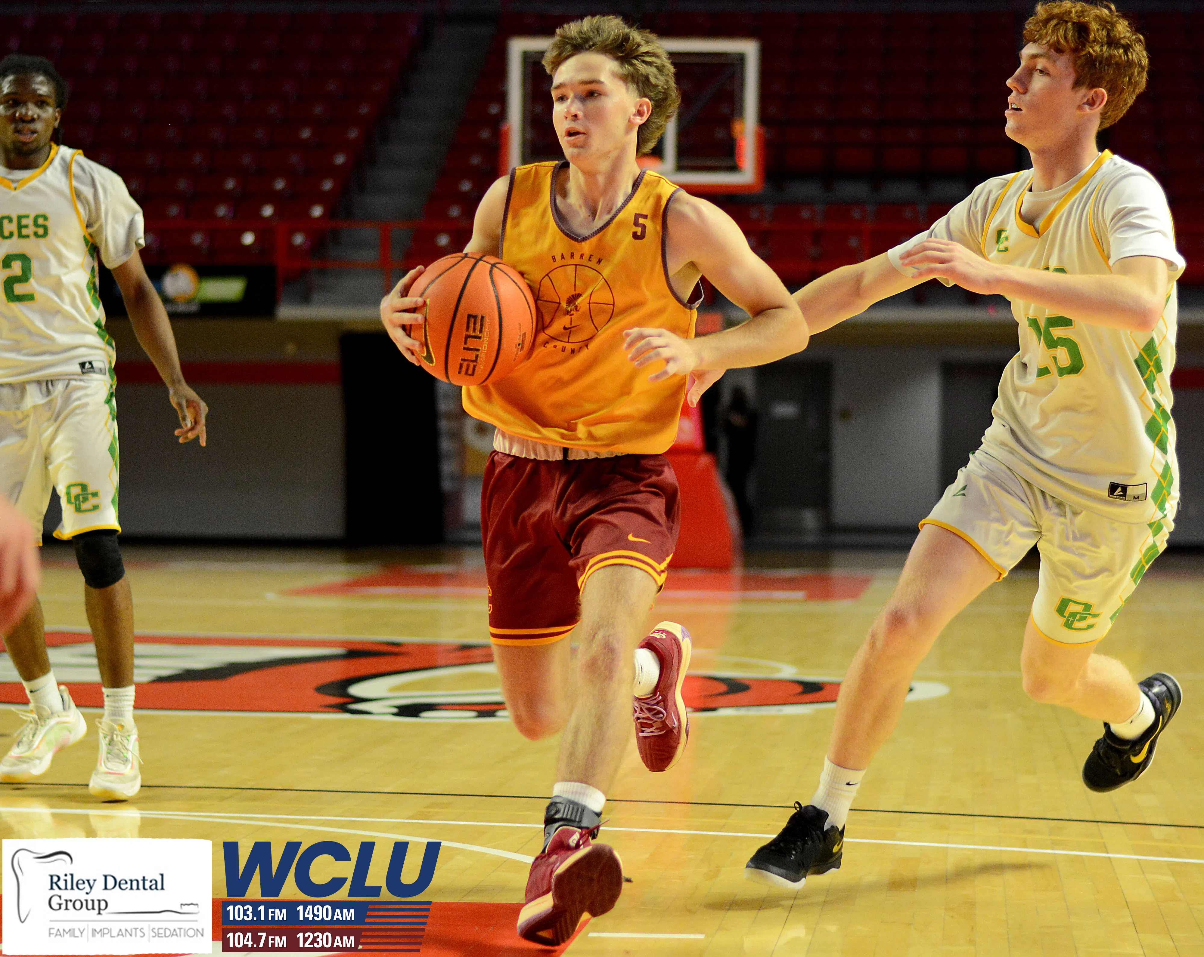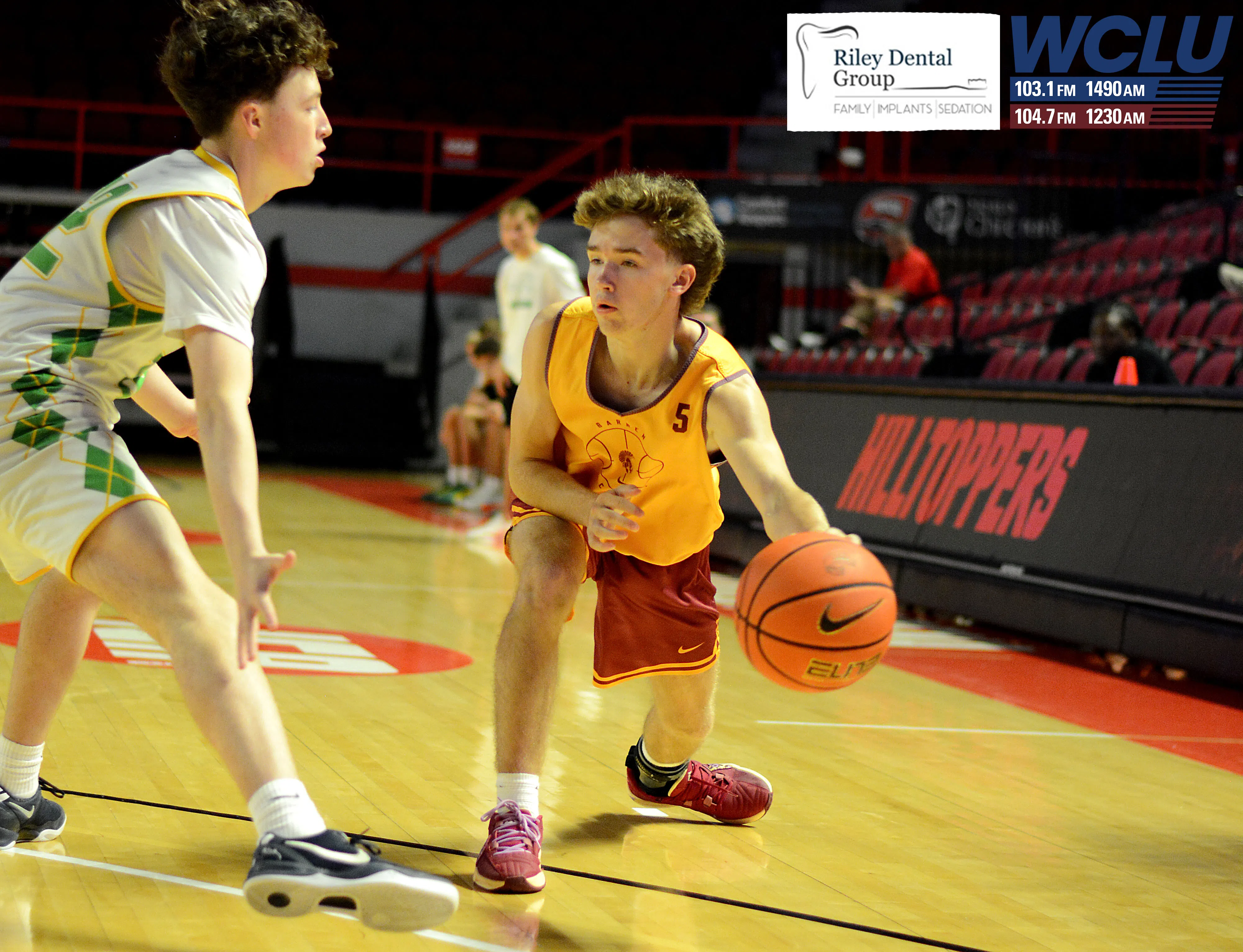 Barren County’s Maddox Griggs drives the lane against Owensboro Catholic in a summer camp game at WKU. John Brown/WCLU Sports