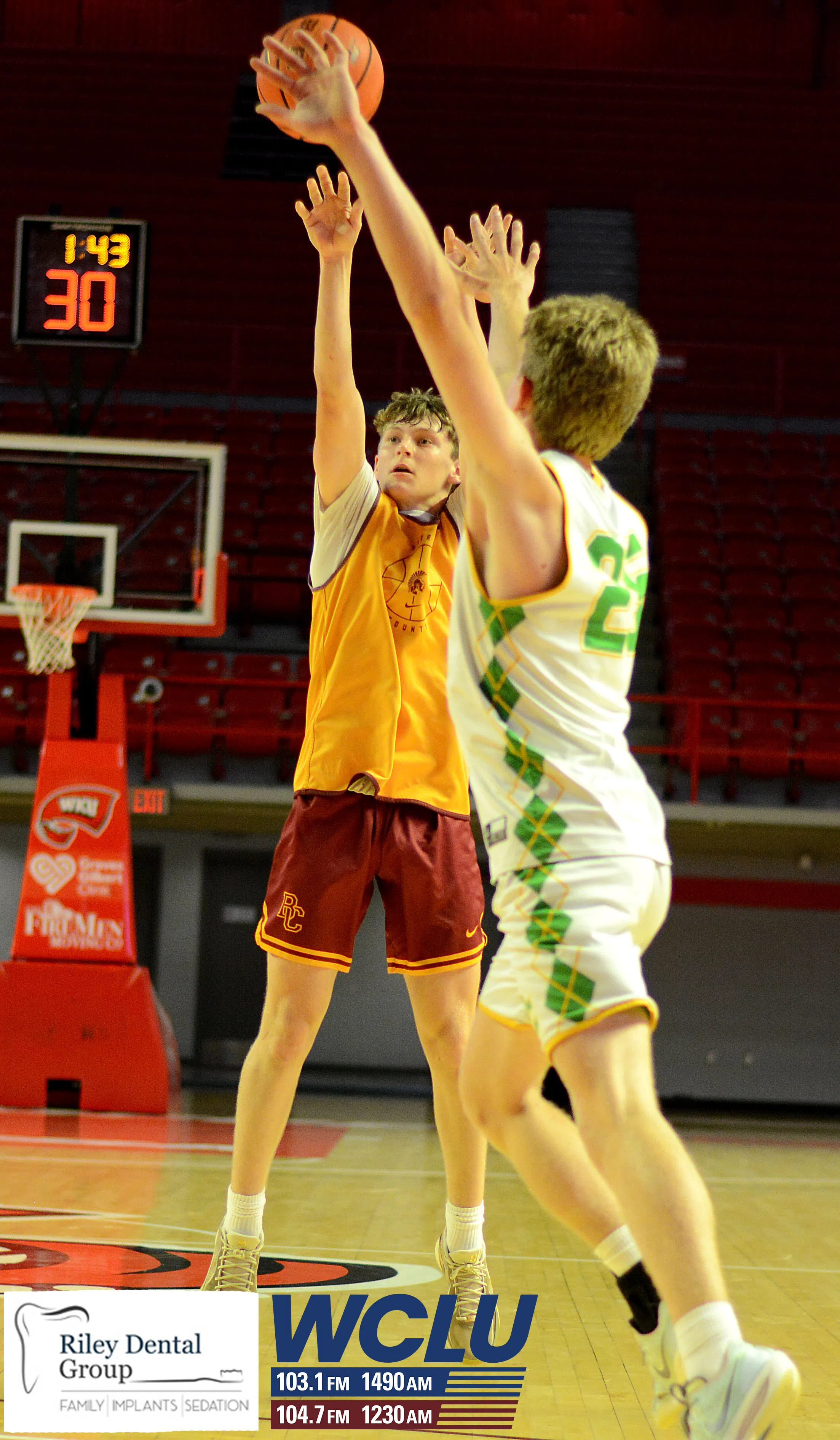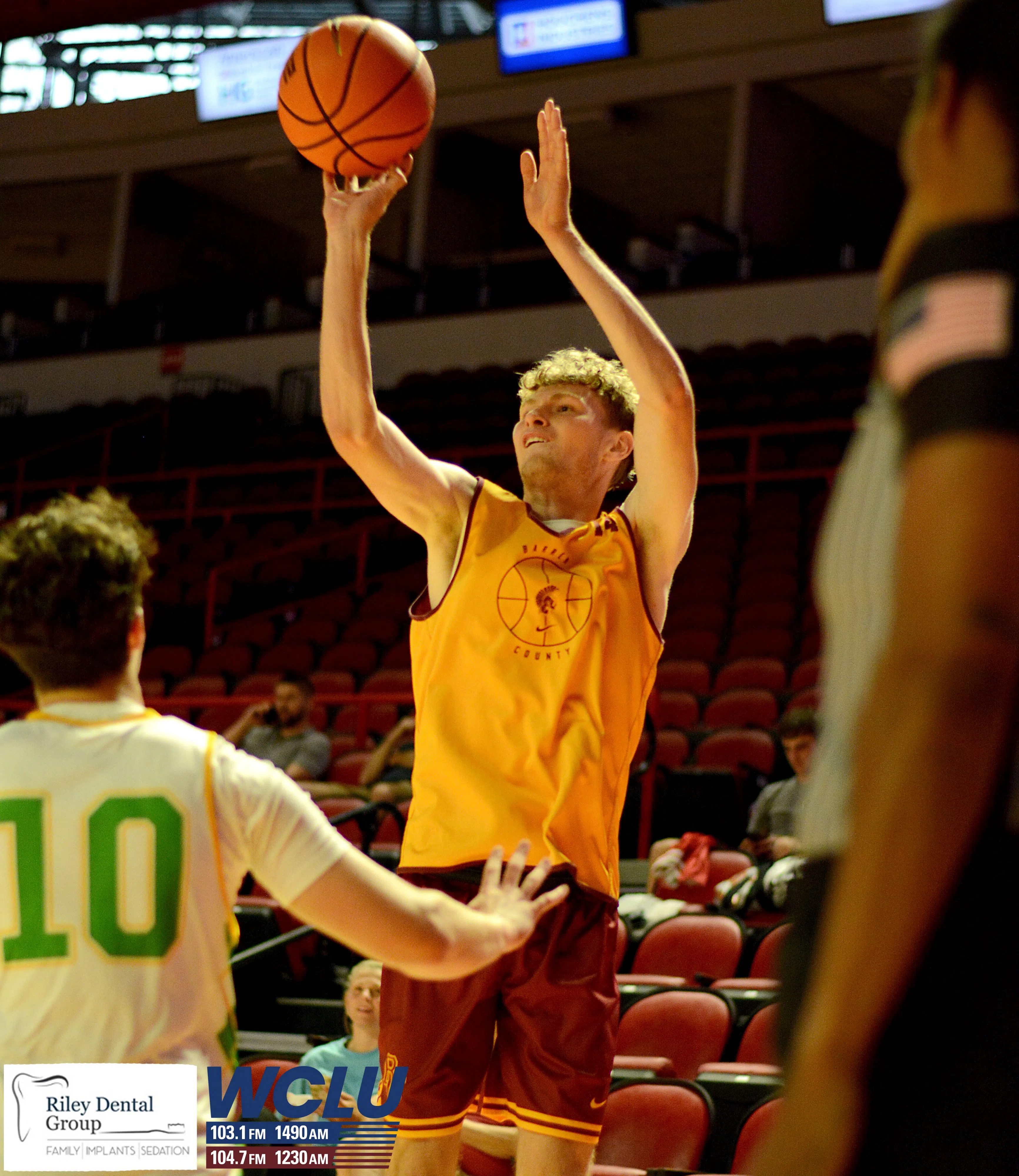 Barren County’s Weston Shelton shoots a 3-pointer against Owensboro Catholic in a summer camp game at WKU. John Brown/WCLU Sports