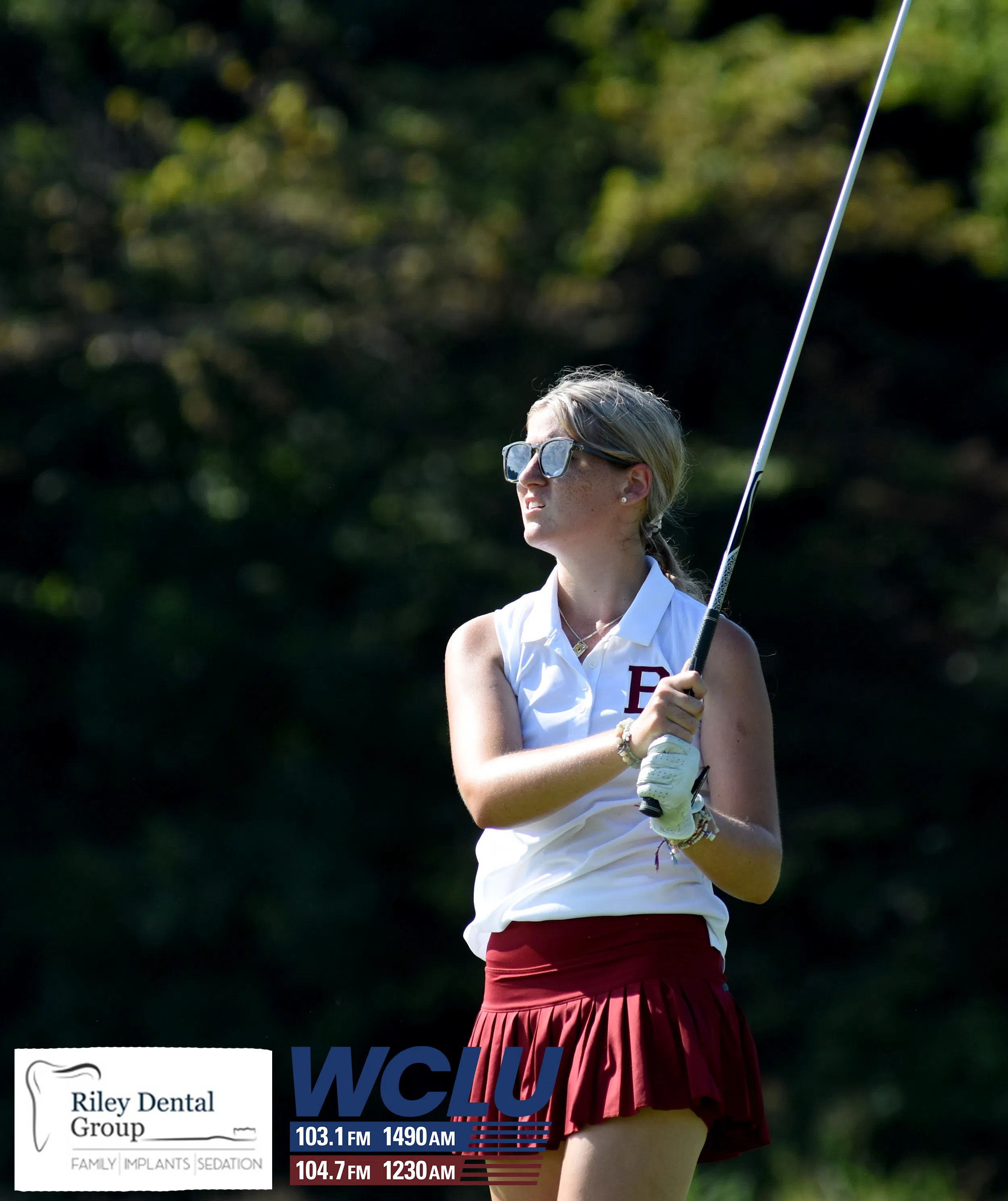 Barren County’s Rayleigh Tarry watches a ball she hit from the No. 3 tee box at Park Mammoth Golf Club during the Lady Spartan Invitational. James Brown/WCLU Sports