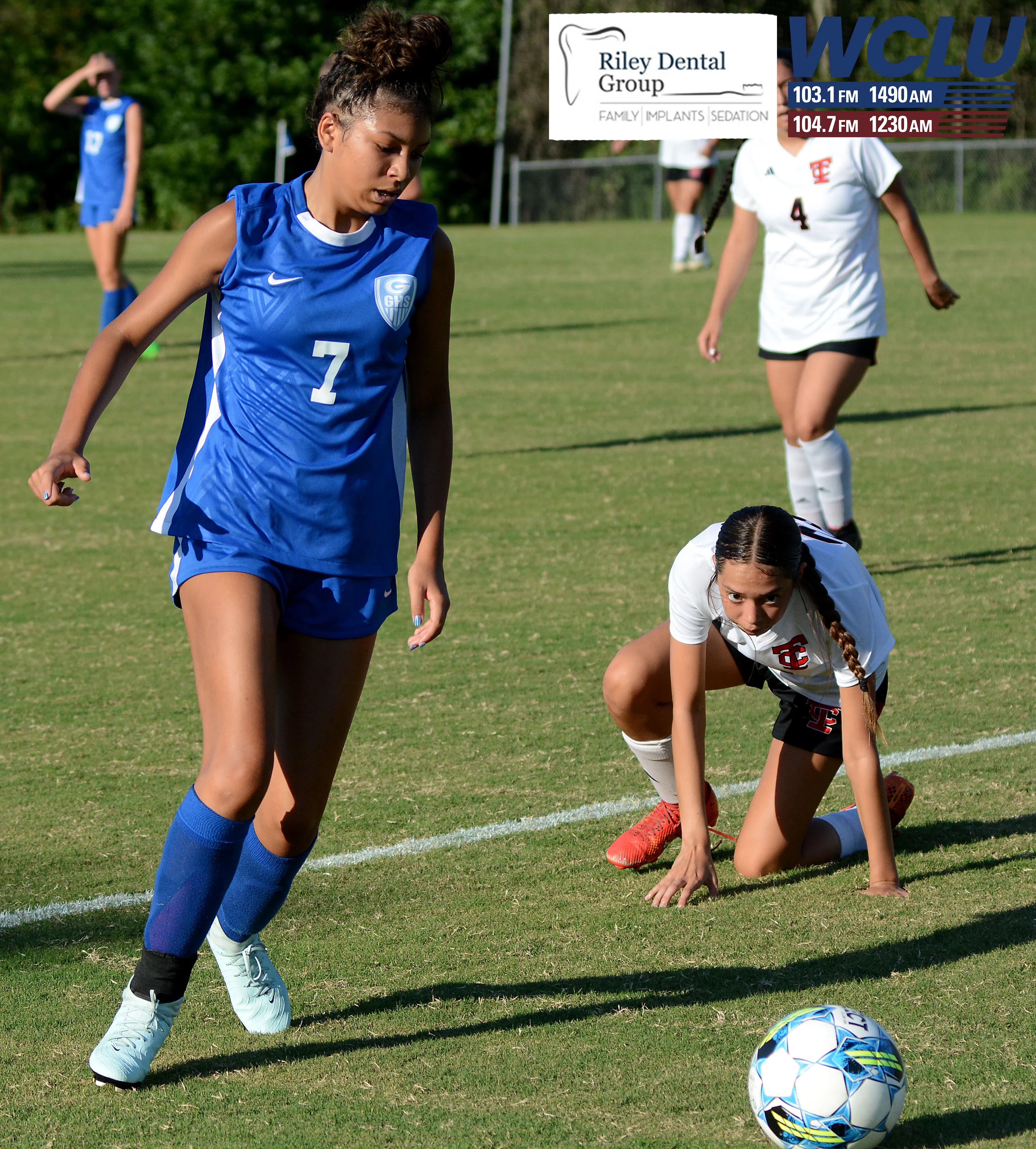 Glasgow’s Alanna Bailey dribbles by a downed defender against Todd County Central. The Lady Scotties won, 3-1. Auggie Brown/WCLU Sports