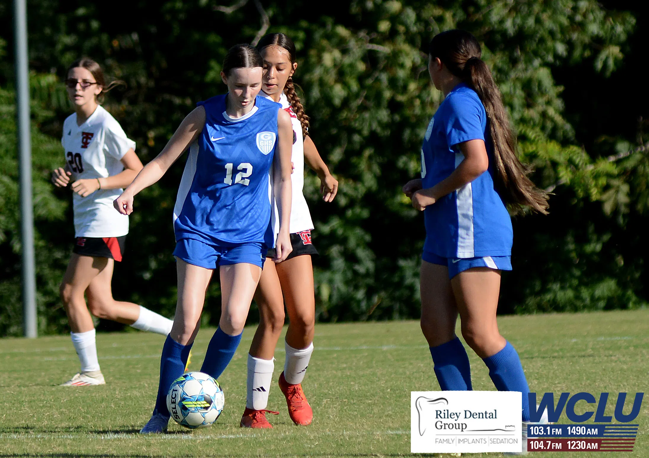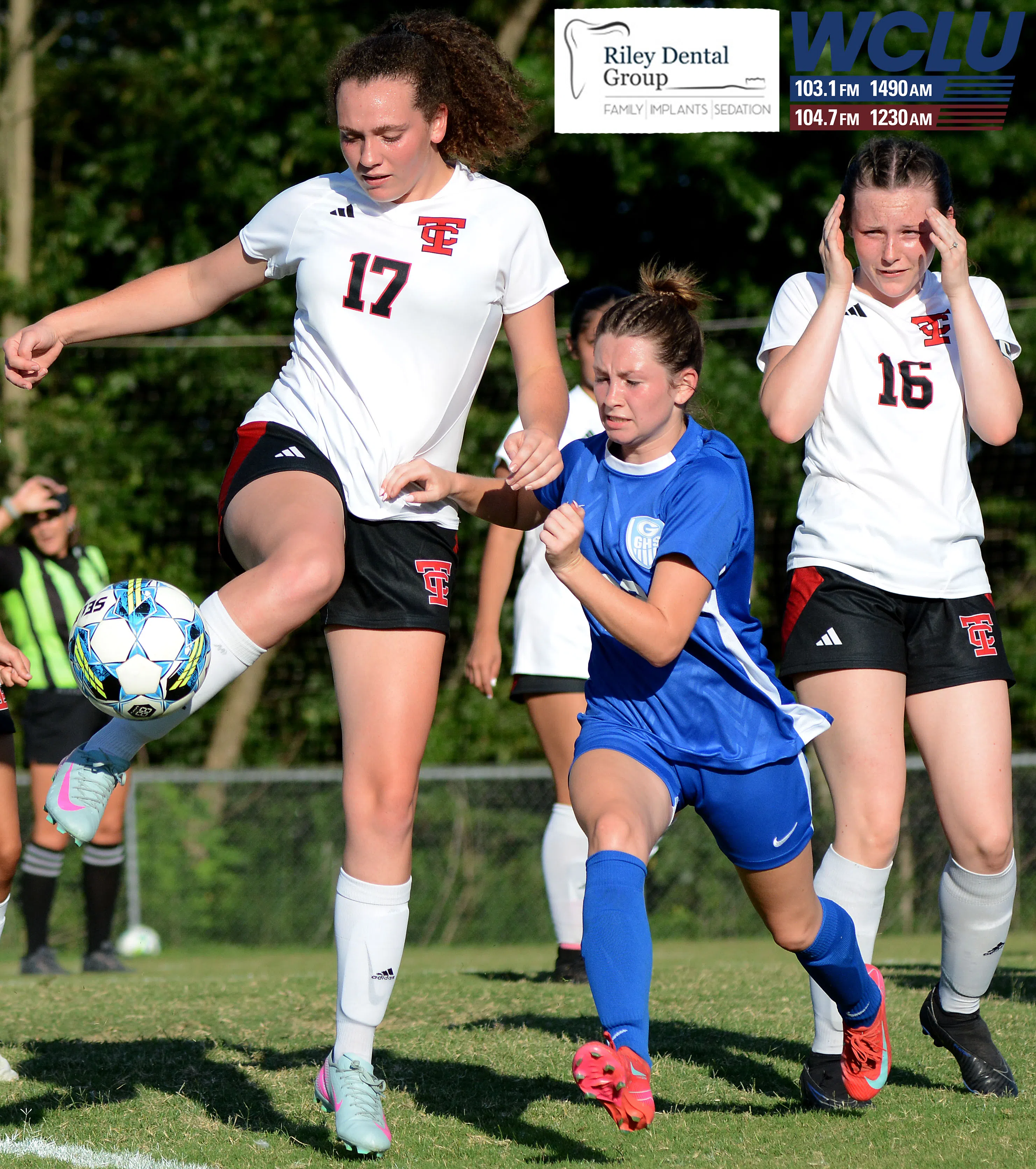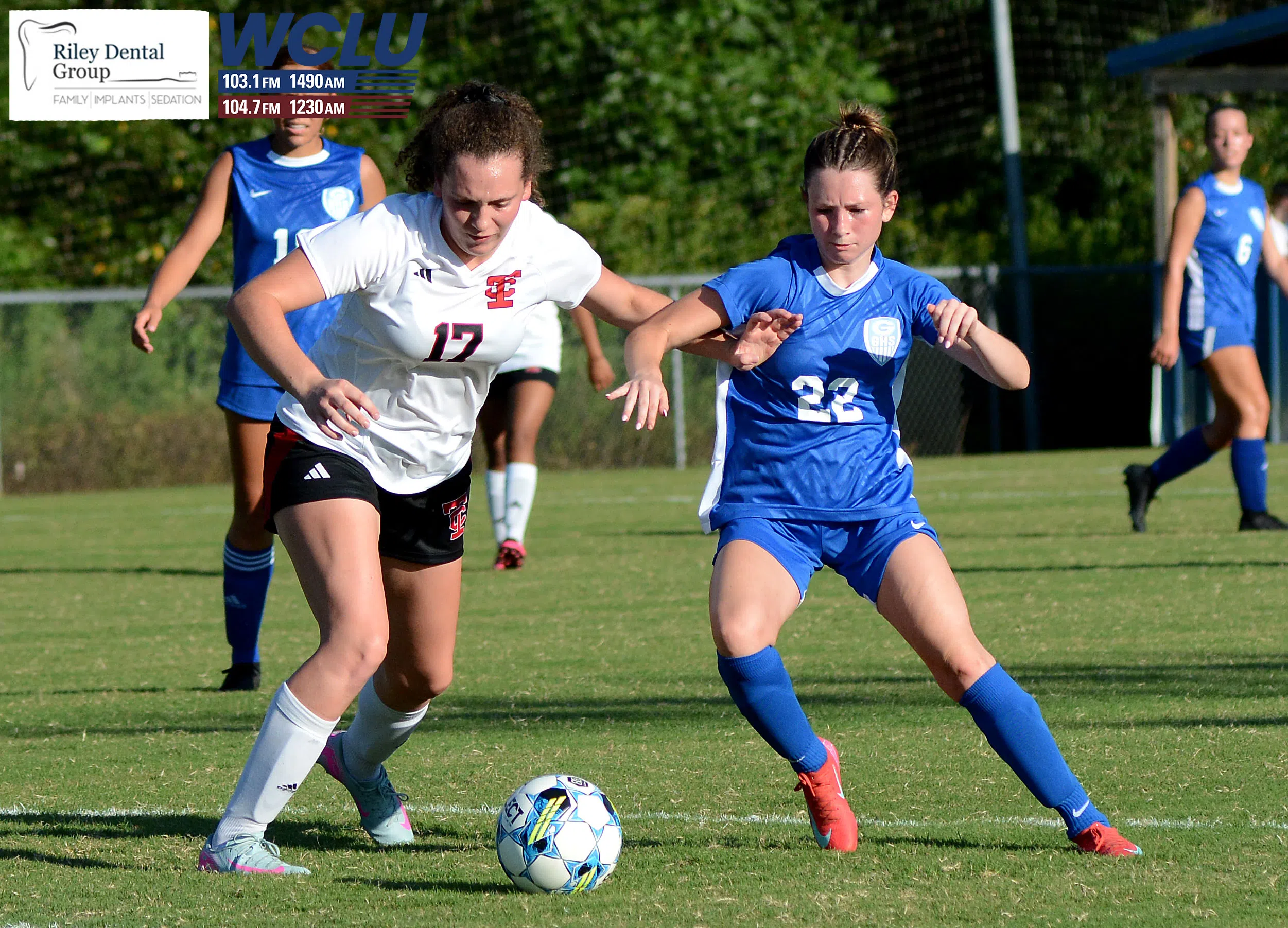 Glasgow’s Hadley Stinson battles for possession of the ball against Todd County Central. The Lady Scotties won, 3-1. Auggie Brown/WCLU Sports
