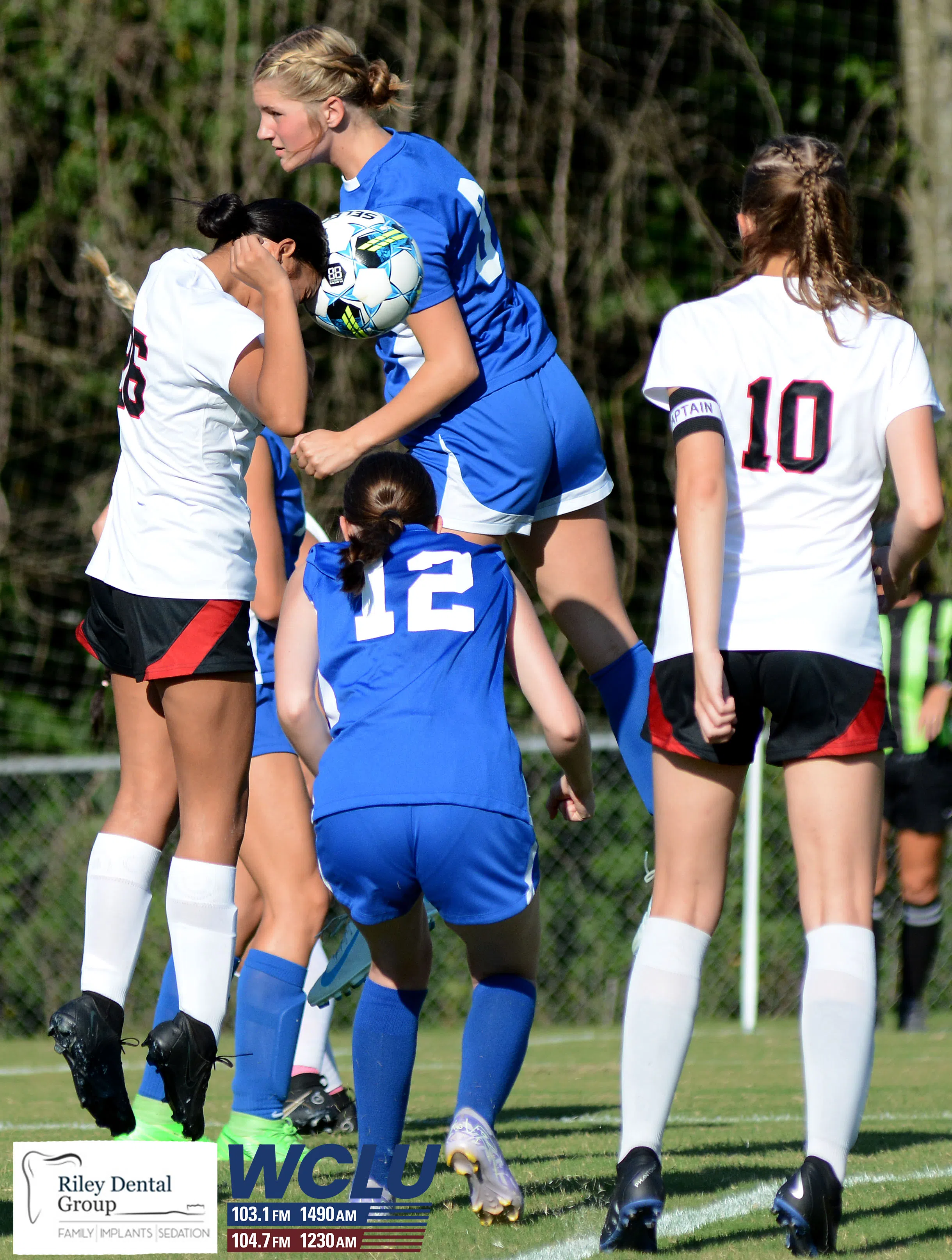 Glasgow’s Brile Pitcock attempts to head the ball on goal against Todd County Central. The Lady Scotties won, 3-1. Auggie Brown/WCLU Sports