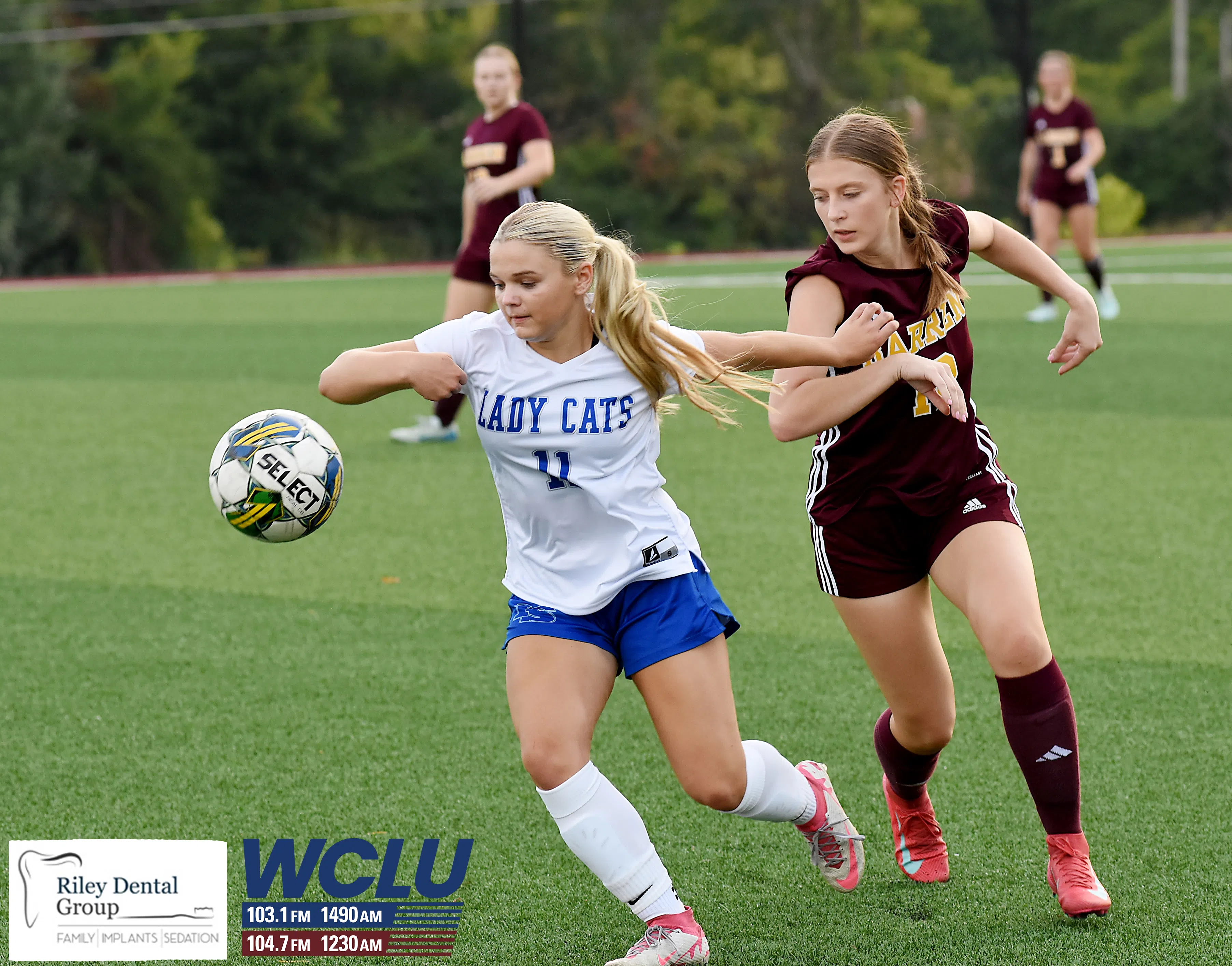 Barren County’s Haley Mutter battles for the ball against Franklin-Simpson. The Trojanettes lost, 4-3. James Brown/WCLU Sports
