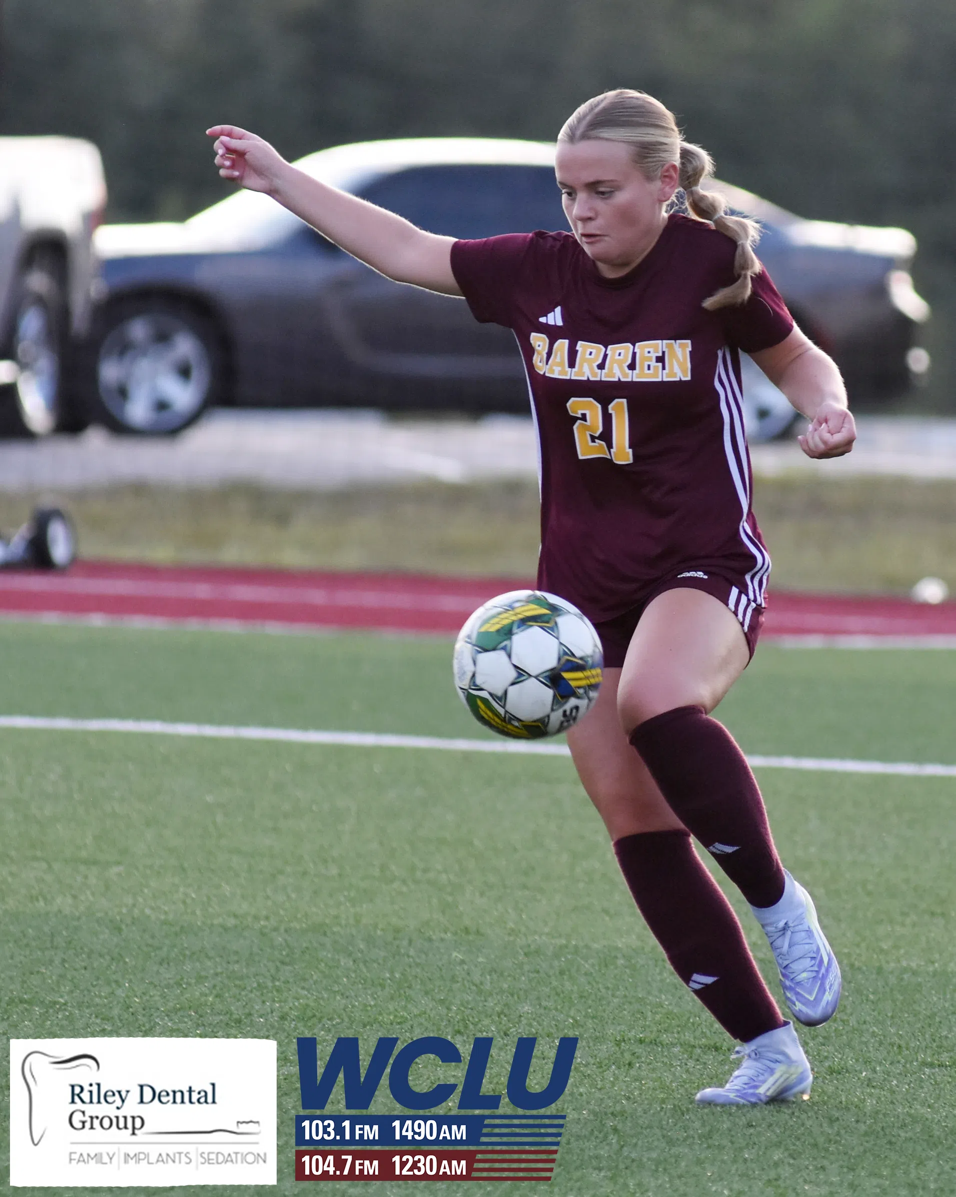 Barren County’s Sephora Valcine sets to head the ball against Franklin-Simpson. The Trojanettes lost, 4-3. James Brown/WCLU Sports