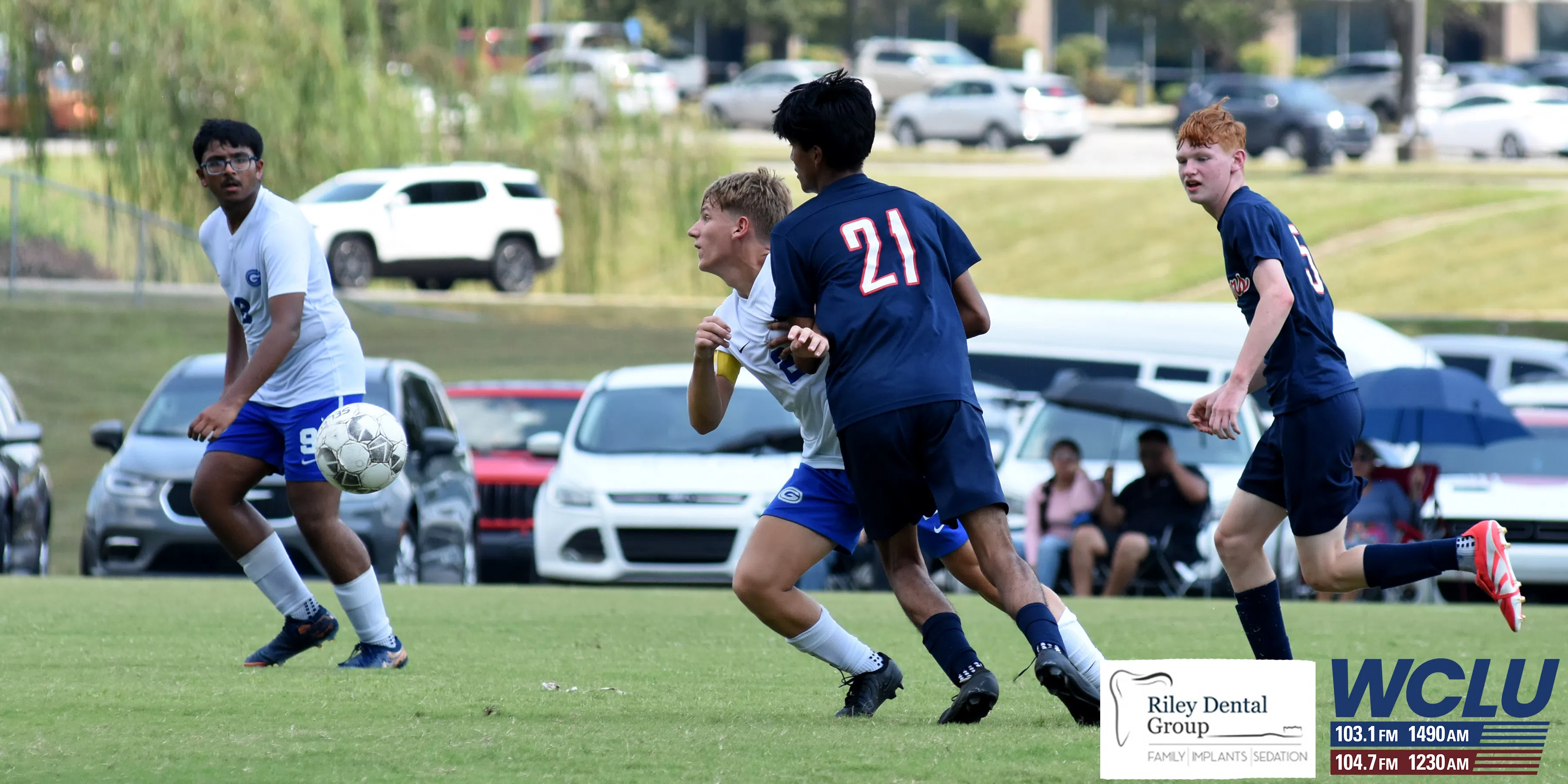 Glasgow’s Jared Malagon battles for the ball against Russell County. The Scotties tied the Lakers, 0-0. James Brown/WCLU Sports