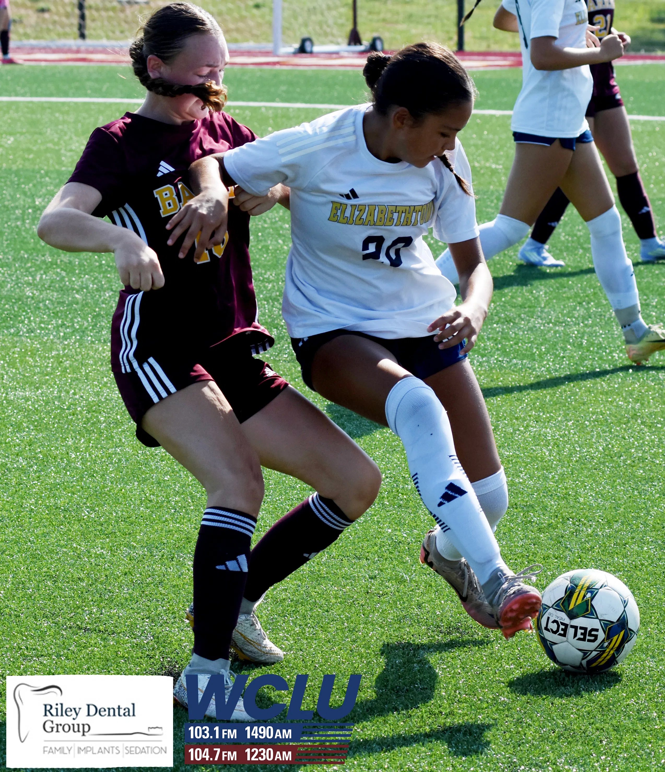 Barren County’s Brooklyn Wright battles for the ball against Elizabethtown. The Trojanettes lost, 8-0. James Brown/WCLU Sports