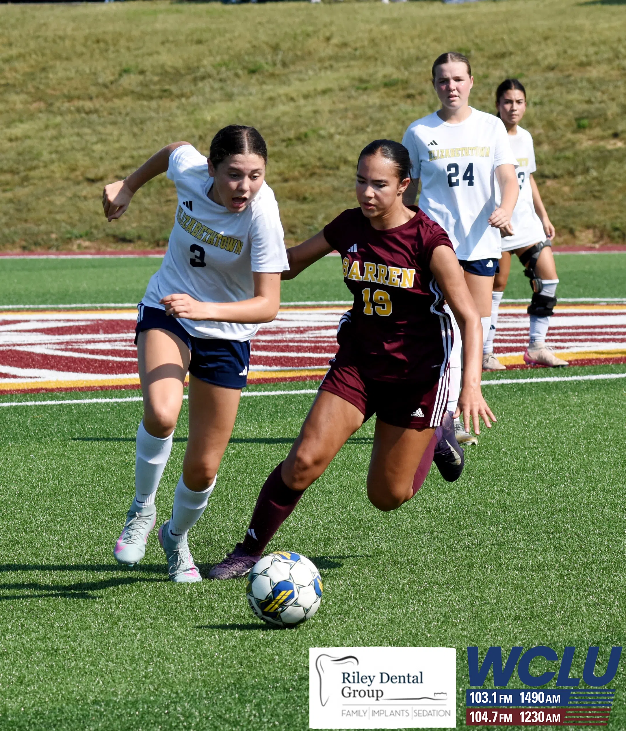 Glasgow’s Brooklyn Wright battles for the ball against Elizabethtown. The Trojanettes lost, 8-0. James Brown/WCLU Sports