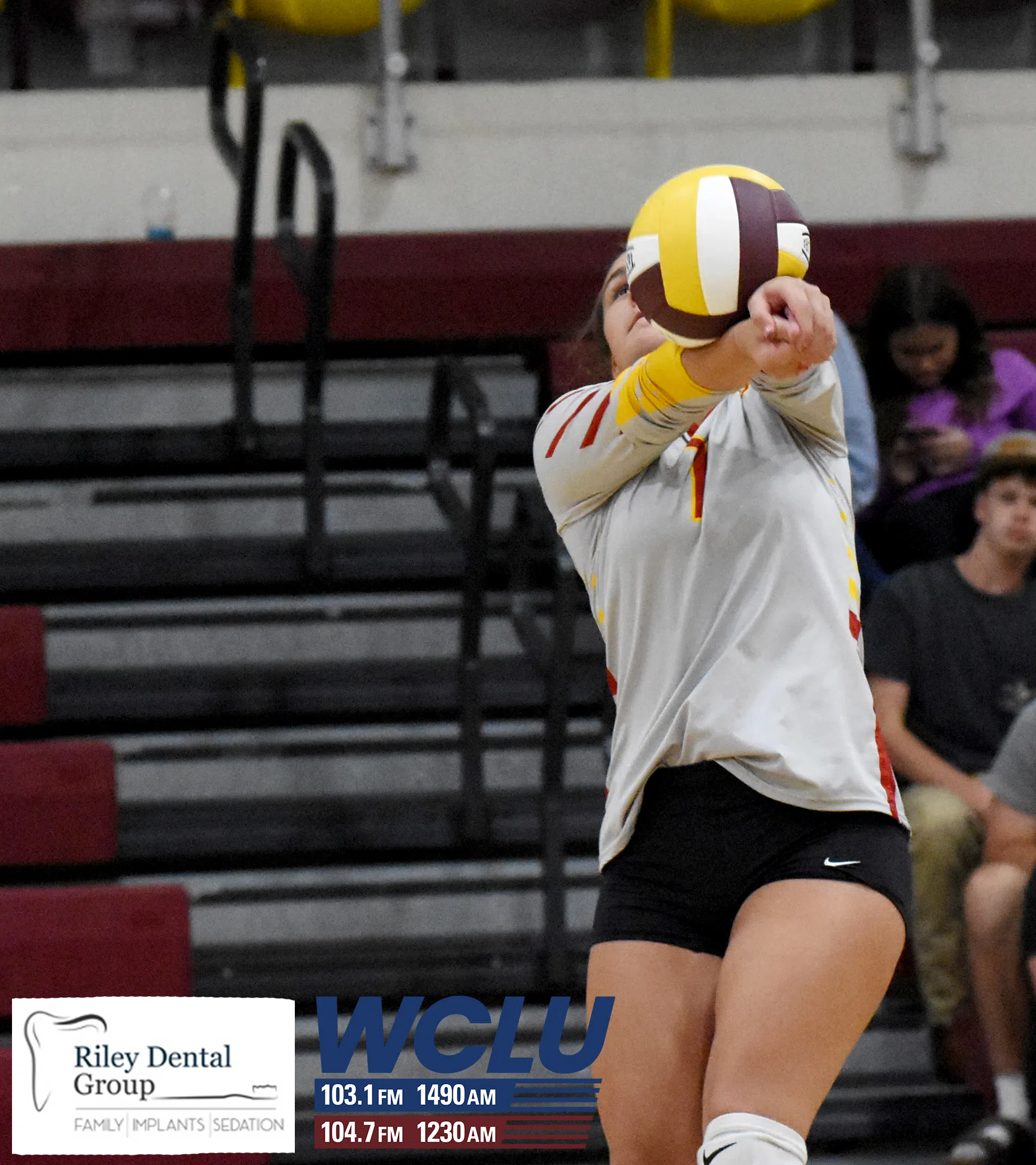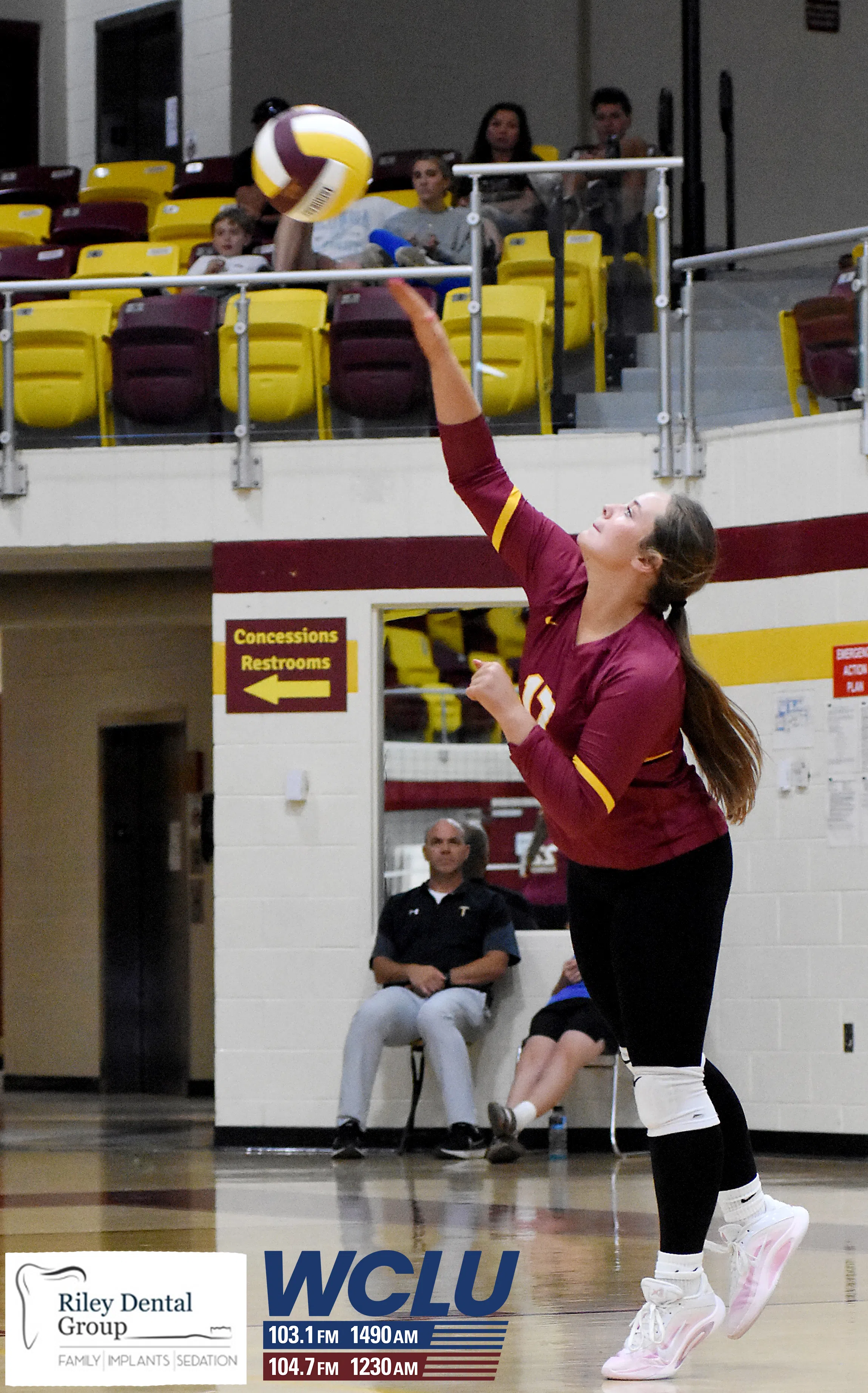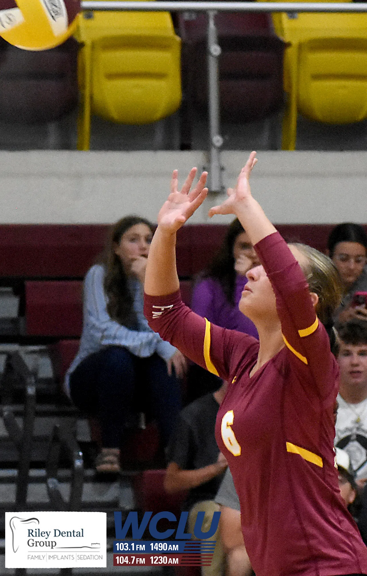 Barren County’s Audrey Jones gets set to receive the ball against Allen County-Scottsville in a 15th District match. The Trojanettes lost, 3-1. James Brown/WCLU Sports