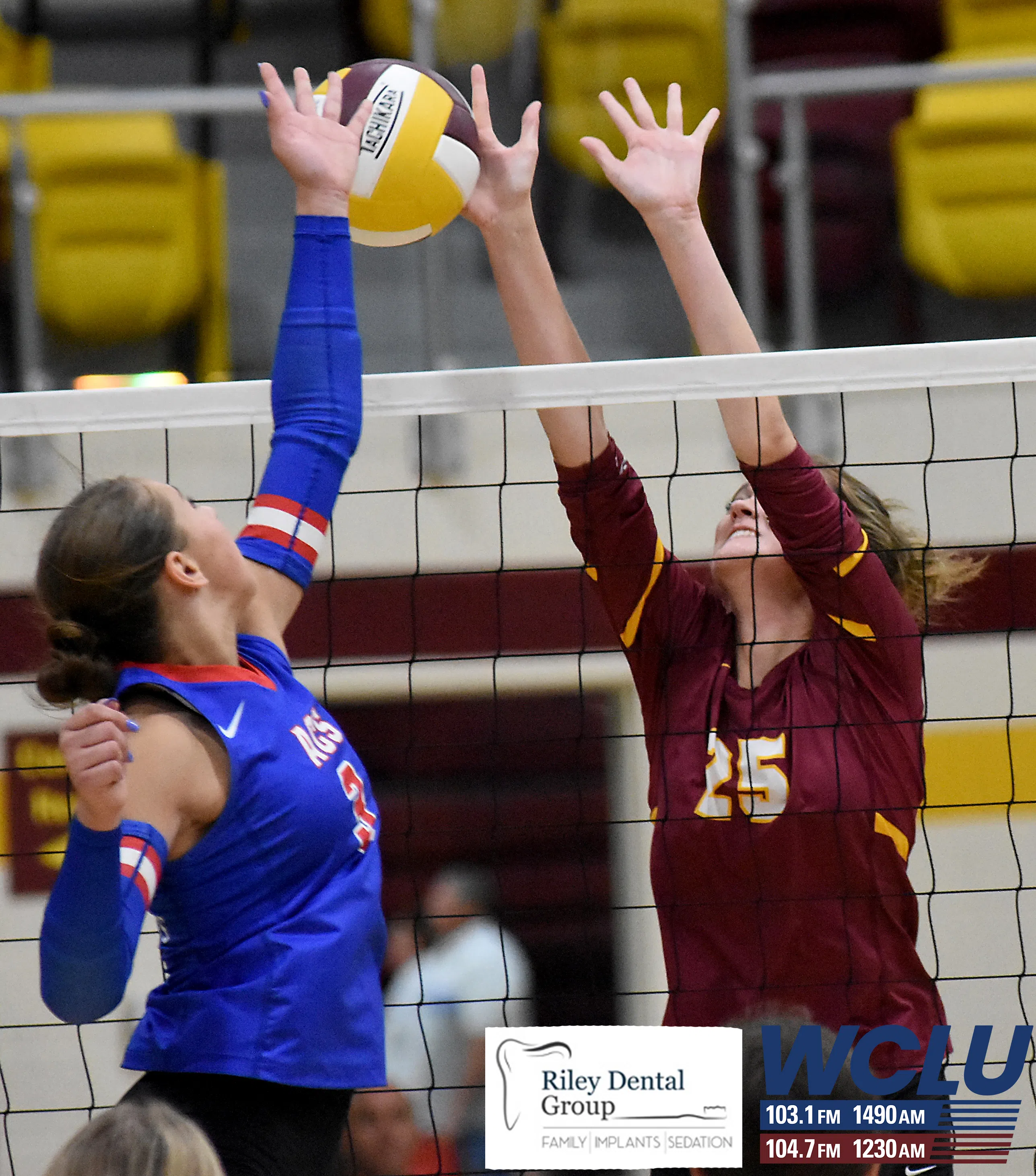 Barren County’s Hannah Bragg defends at the net against Allen County-Scottsville in a 15th District match. The Trojanettes lost, 3-1. James Brown/WCLU Sports