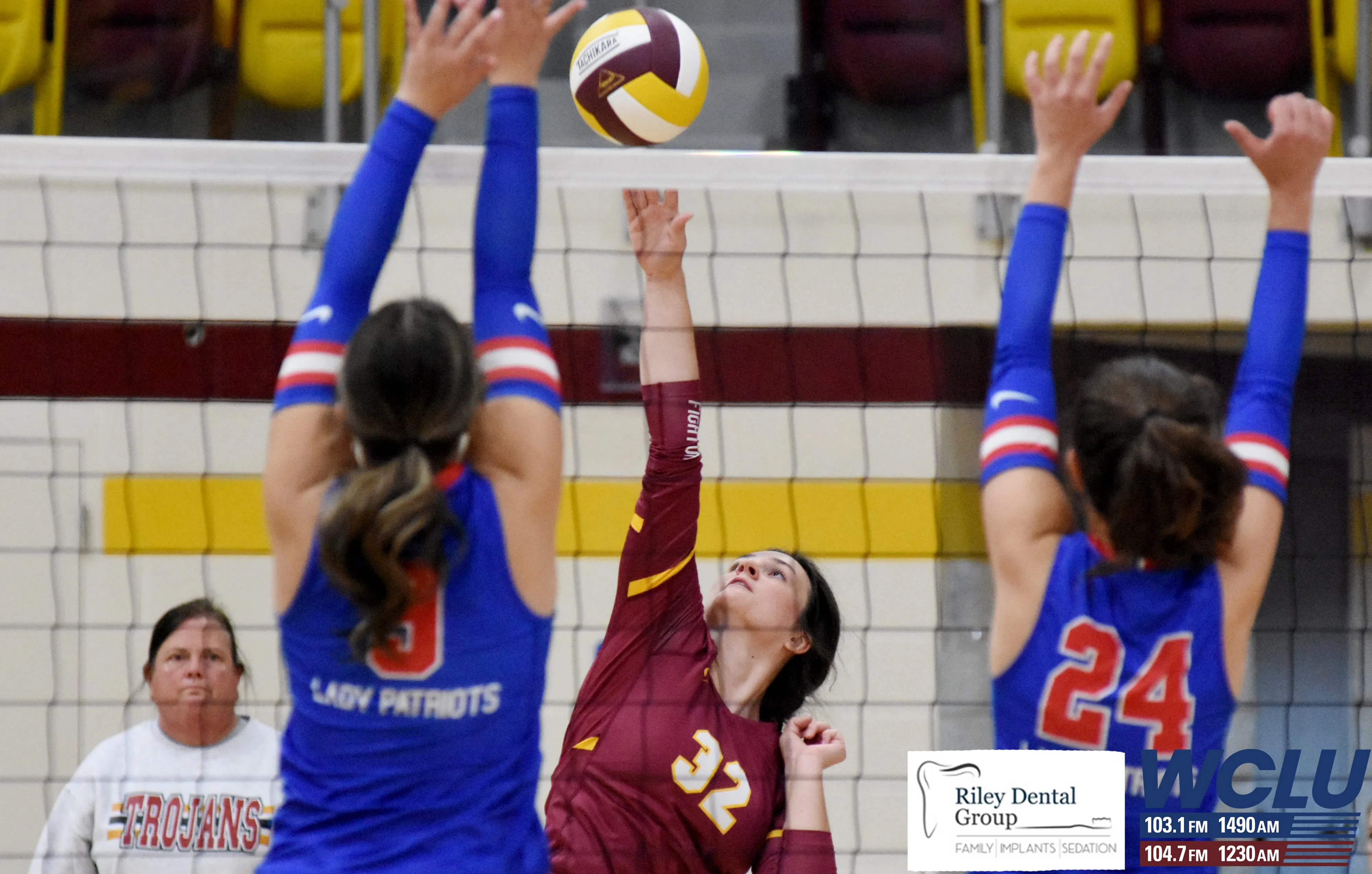 Barren County’s Regan Griffiths defends at the net against Allen County-Scottsville in a 15th District match. The Trojanettes lost, 3-1. James Brown/WCLU Sports