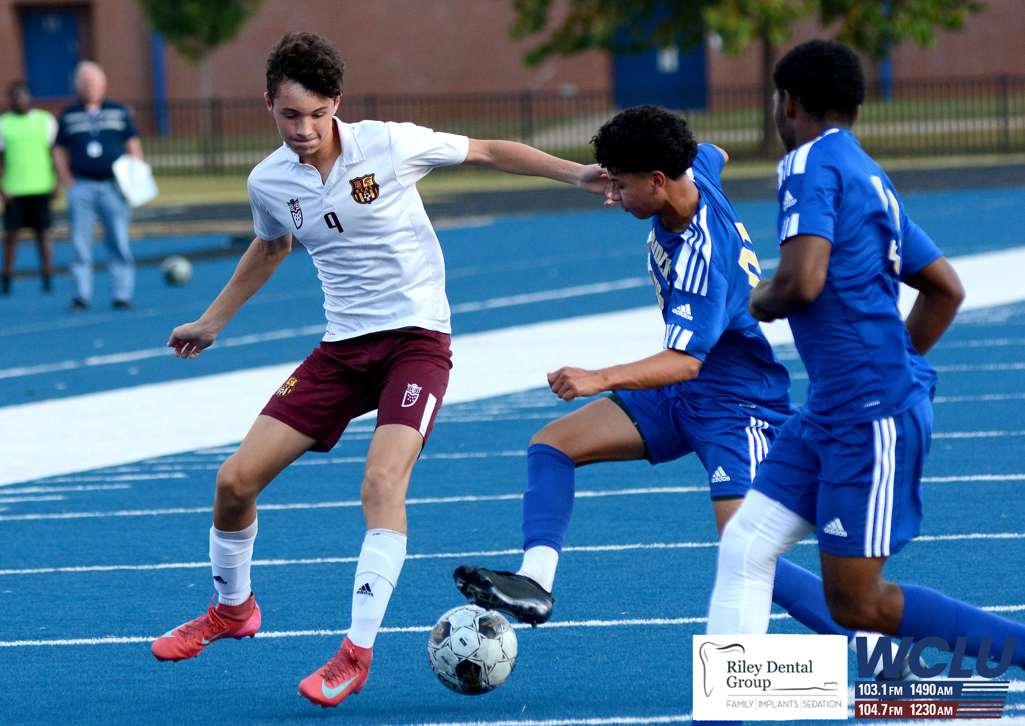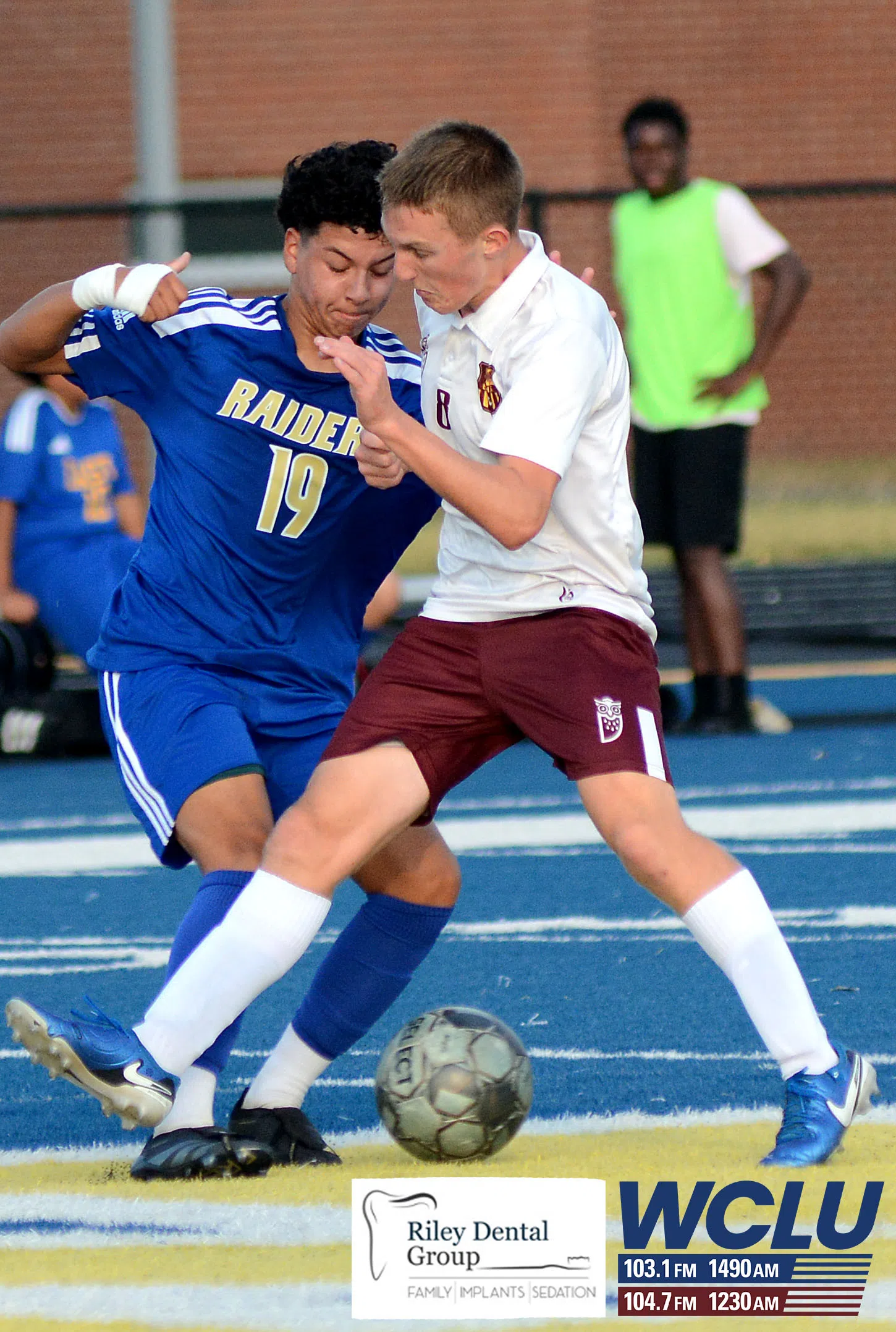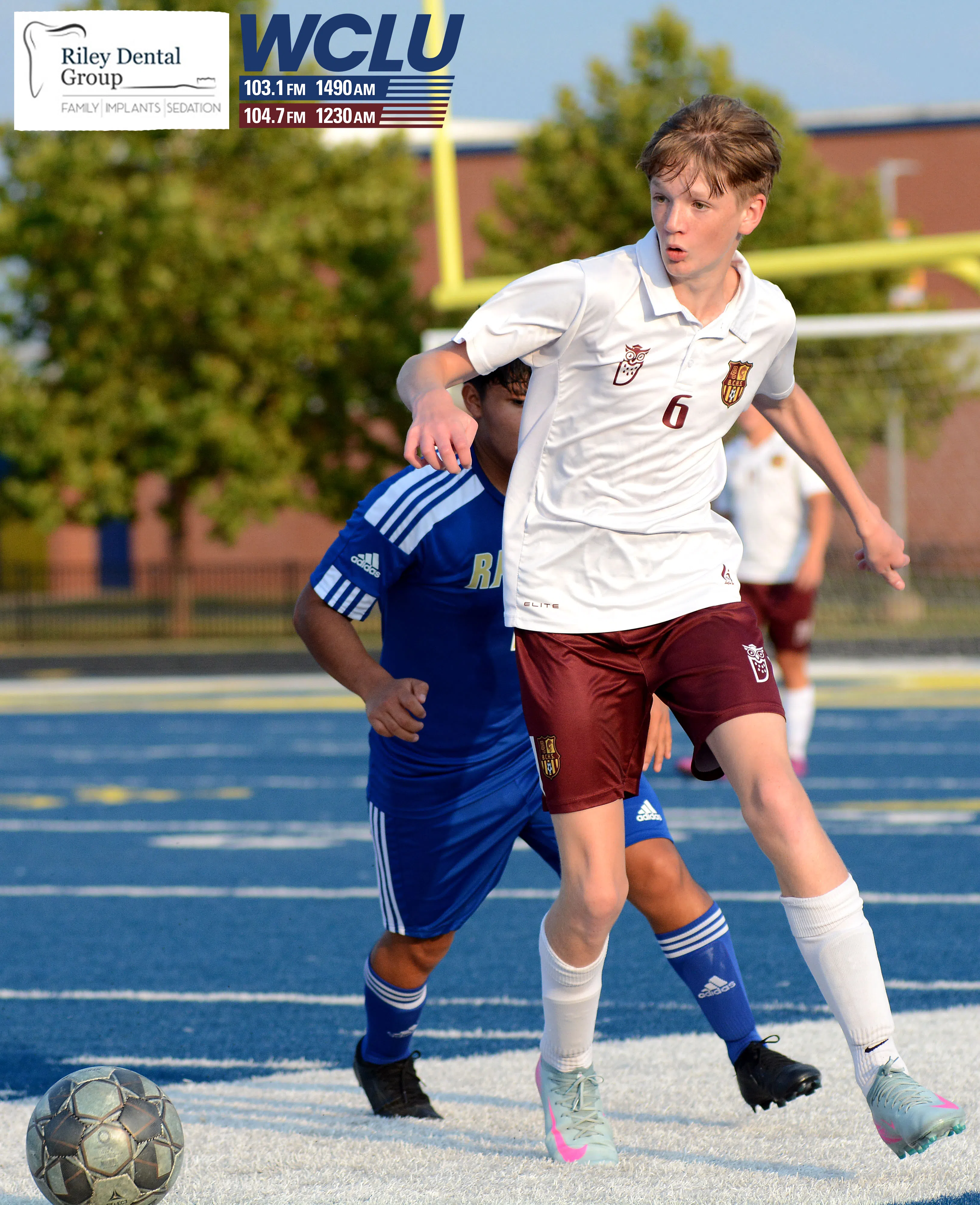 Barren County’s Micheal Owens battles for the ball against Warren East. The Trojans lost, 7-2. Auggie Brown/WCLU Sports