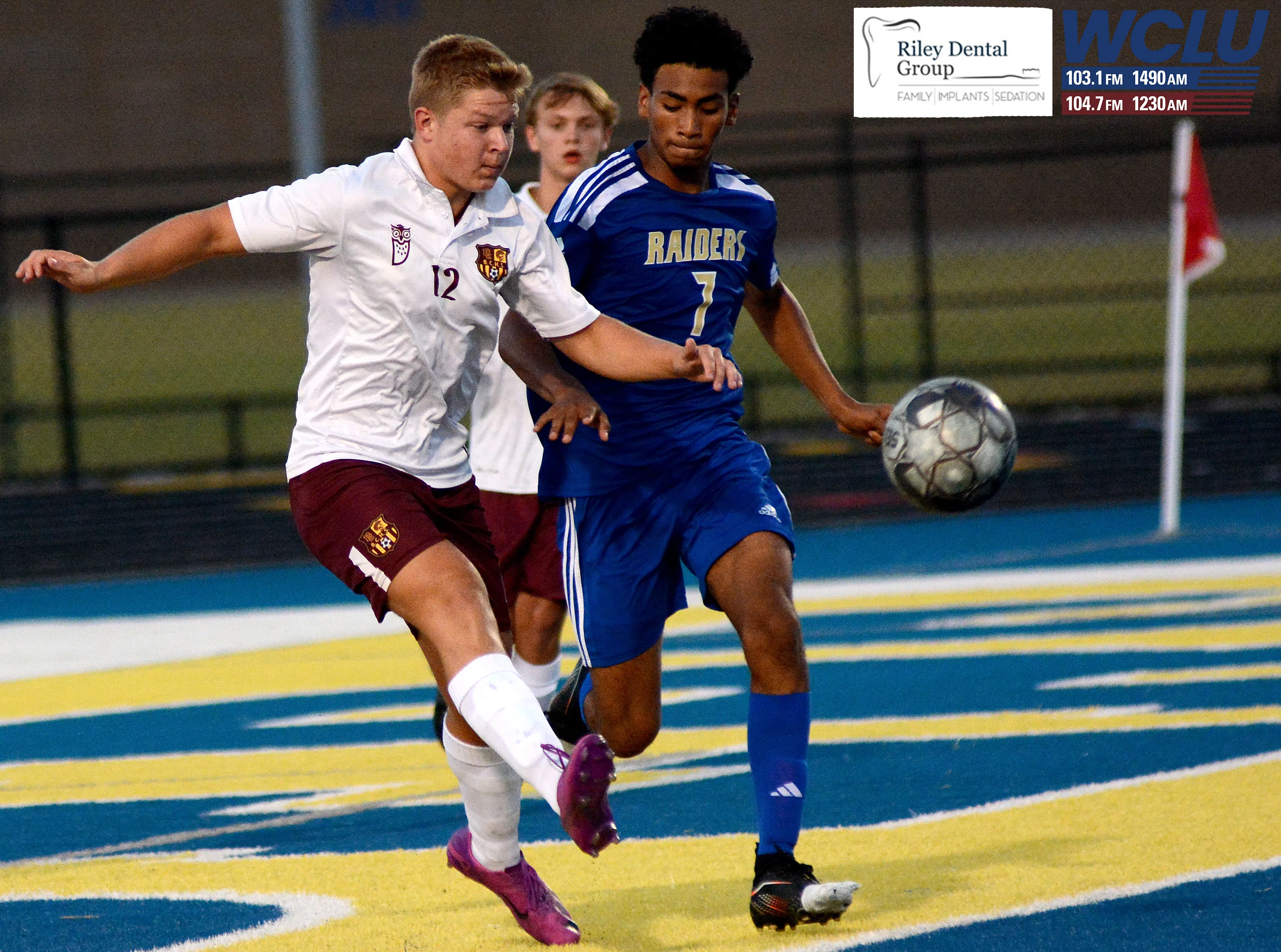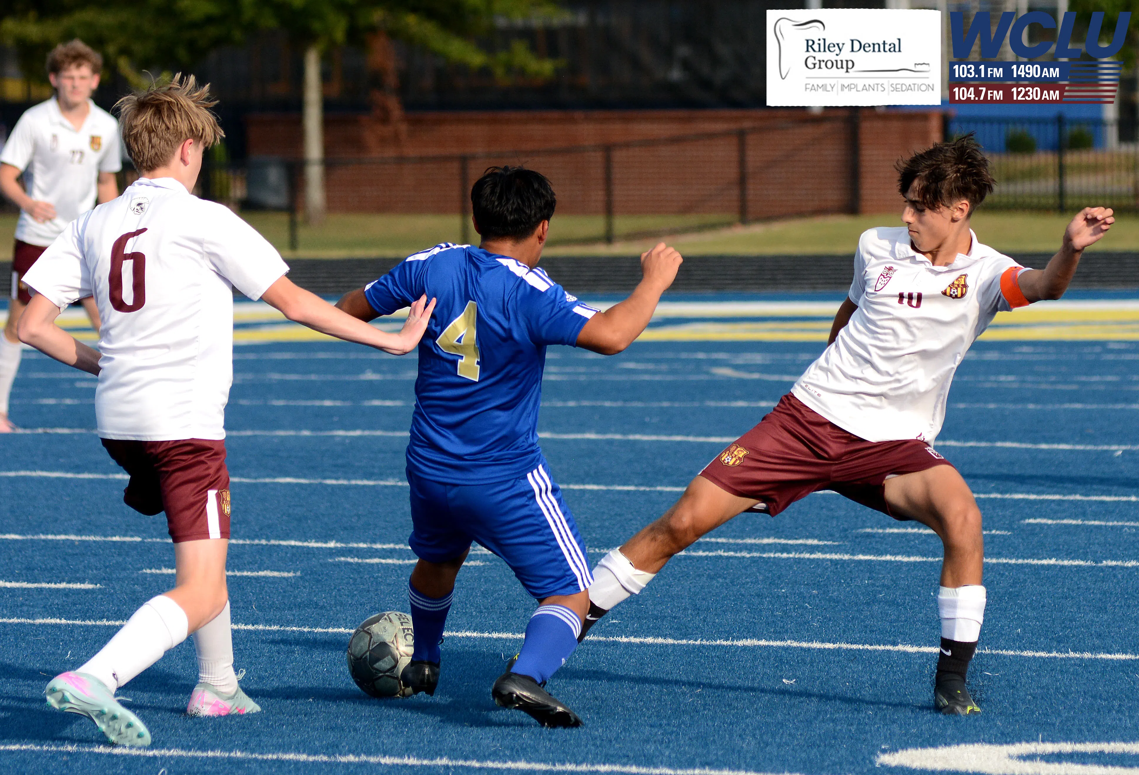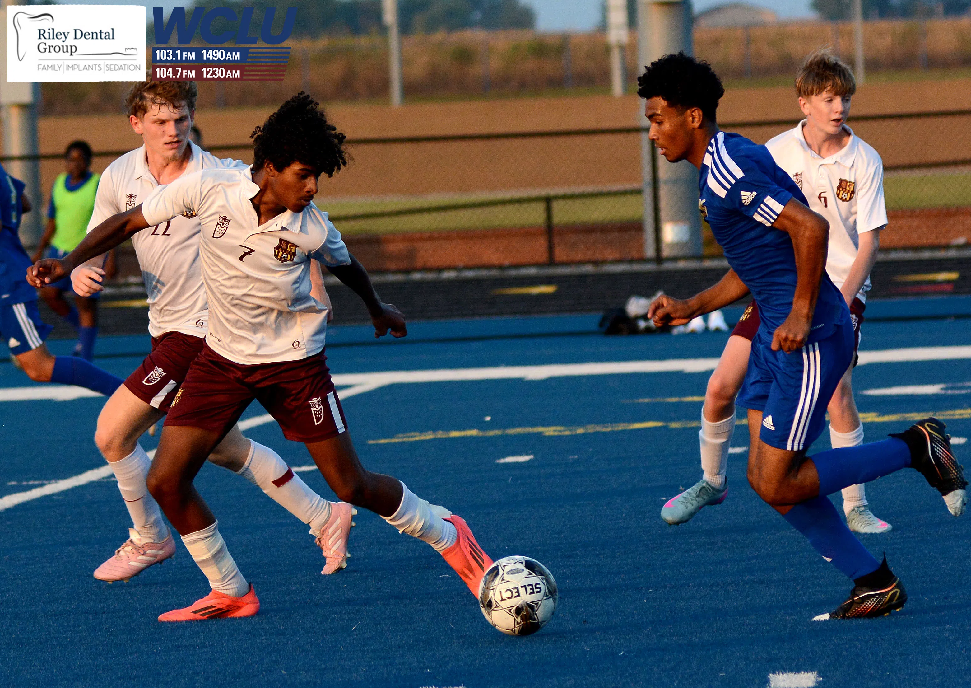 Barren County’s Micheal Owens battles for the ball against Warren East. The Trojans lost, 7-2. Auggie Brown/WCLU Sports