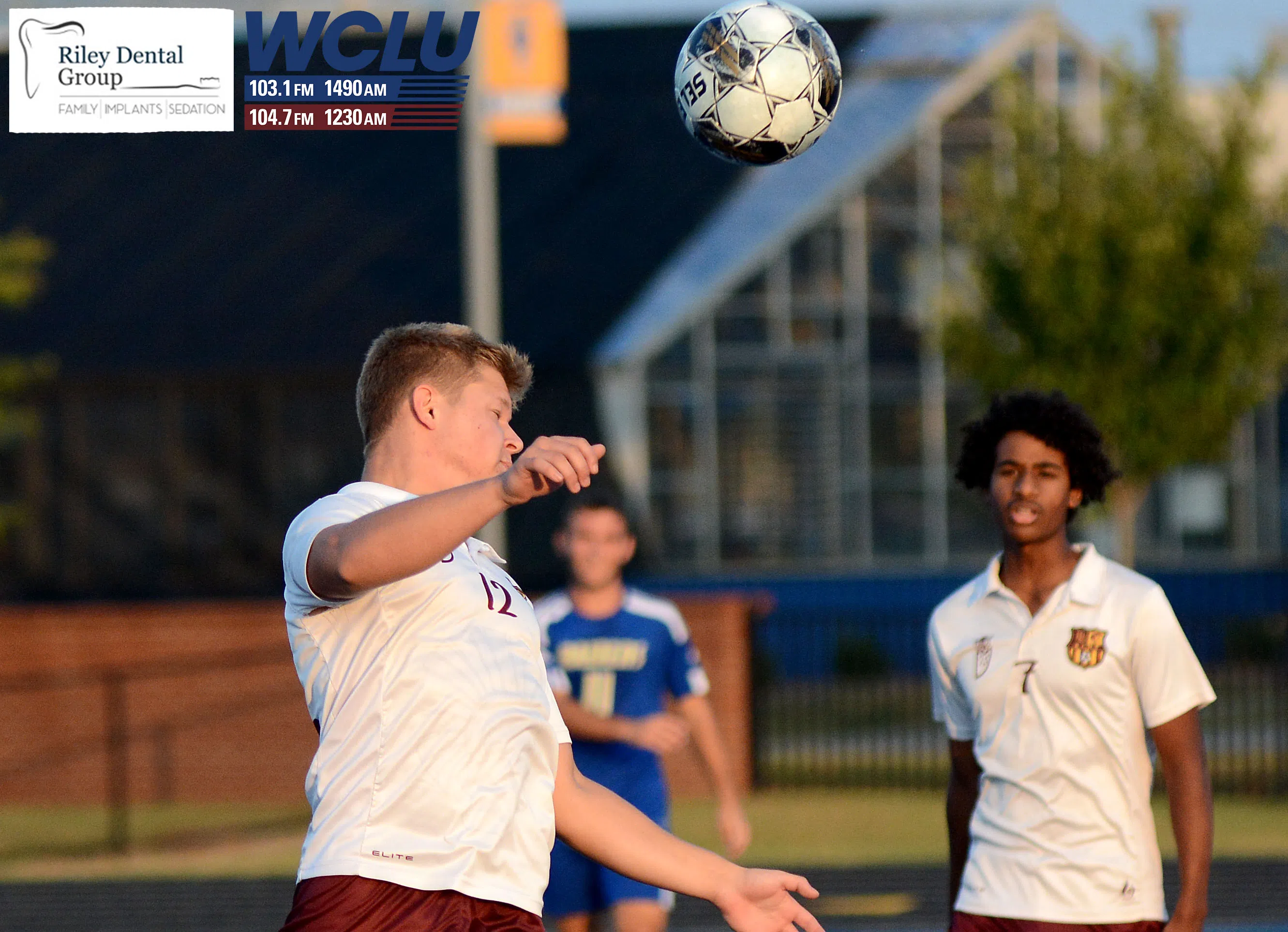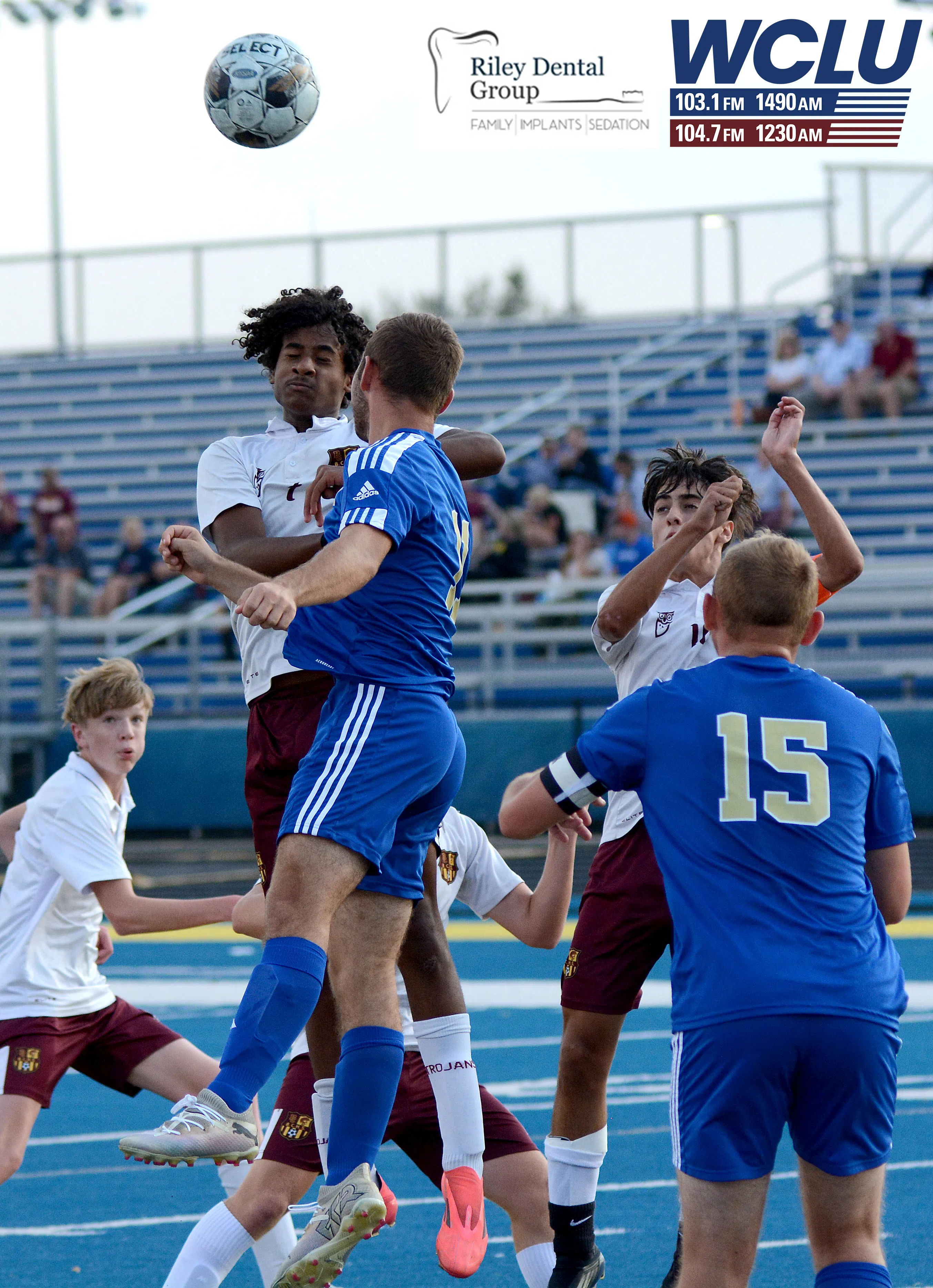 Barren County’s Cameron Shores heads the ball up field against Warren East. The Trojans lost, 7-2. Auggie Brown/WCLU Sports