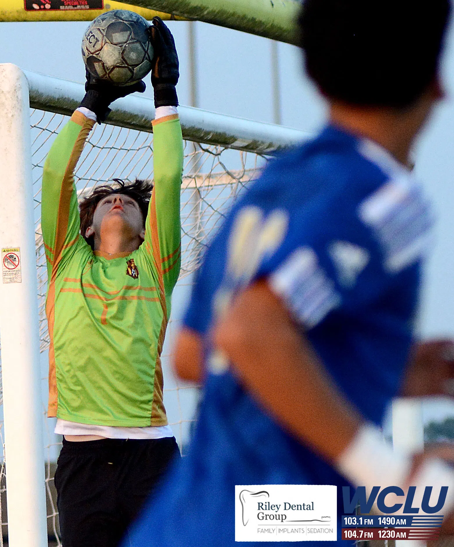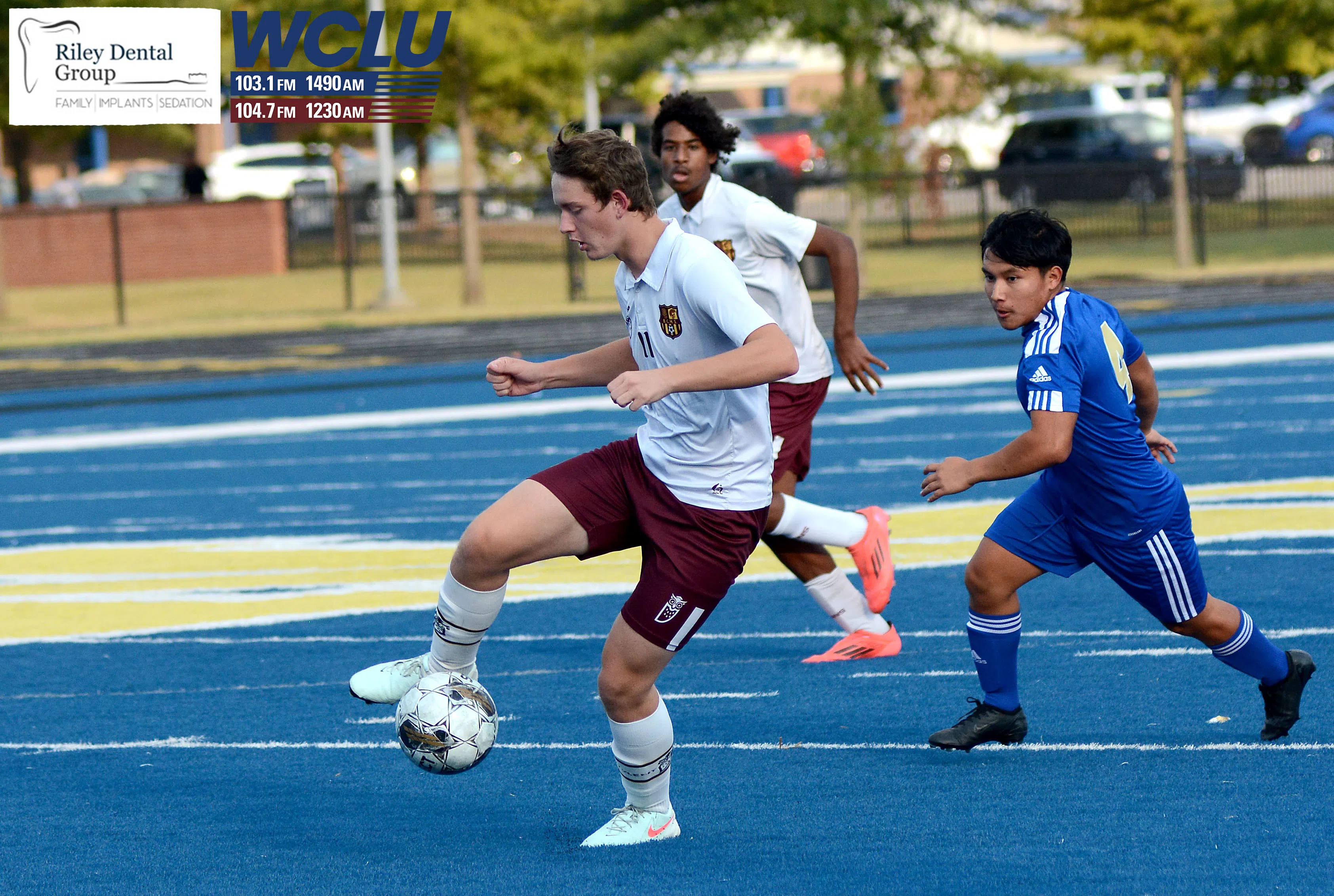 Barren County’s Cameron Shores clears the ball out of the box against Warren East. The Trojans lost, 7-2. Auggie Brown/WCLU Sports
