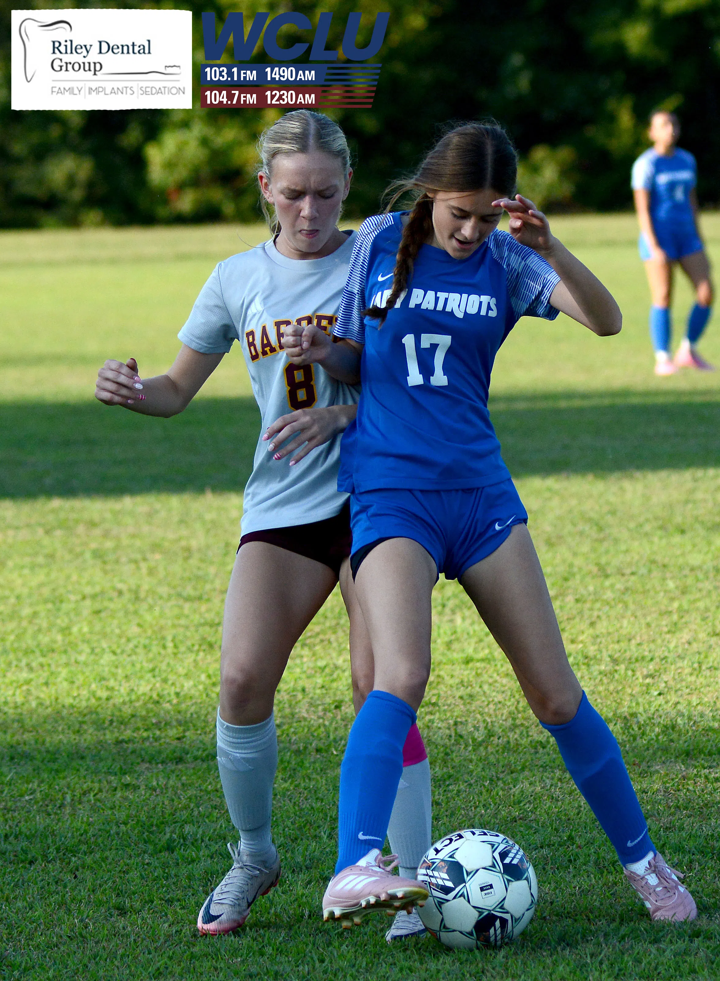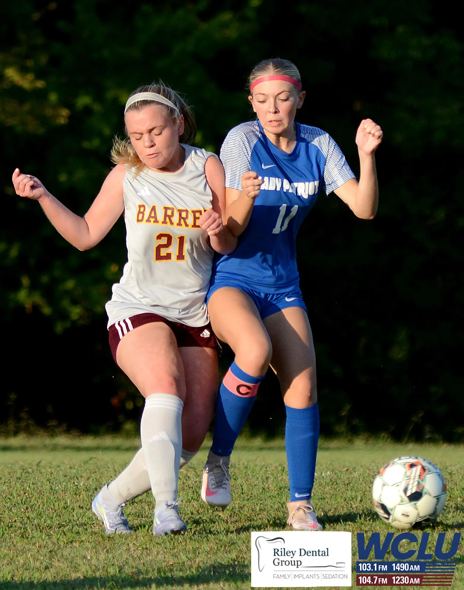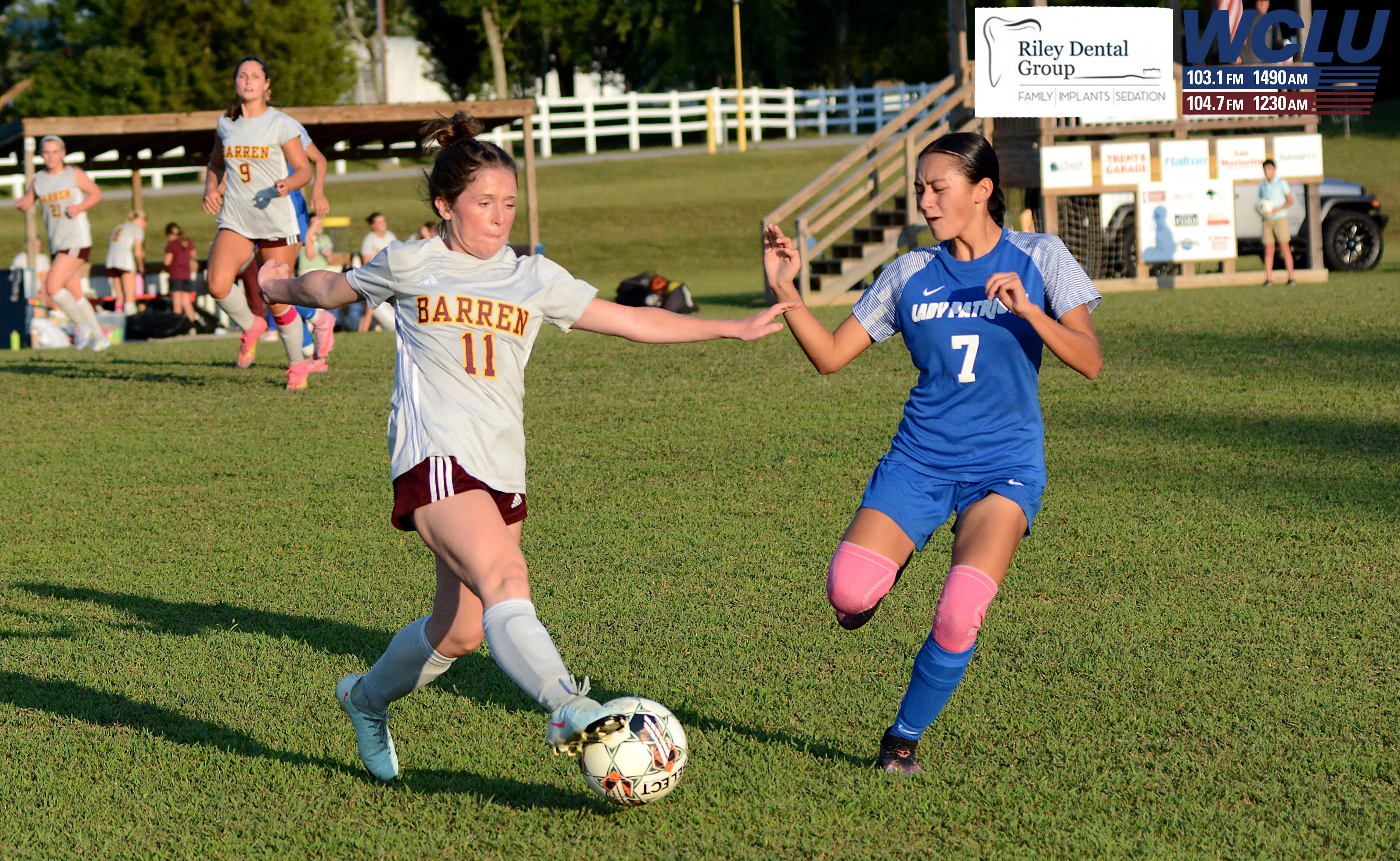 Barren County’s Natalie Somerville battles for the ball against Allen County-Scottsville. Barren County won, 2-0. Auggie Brown/WCLU Sports