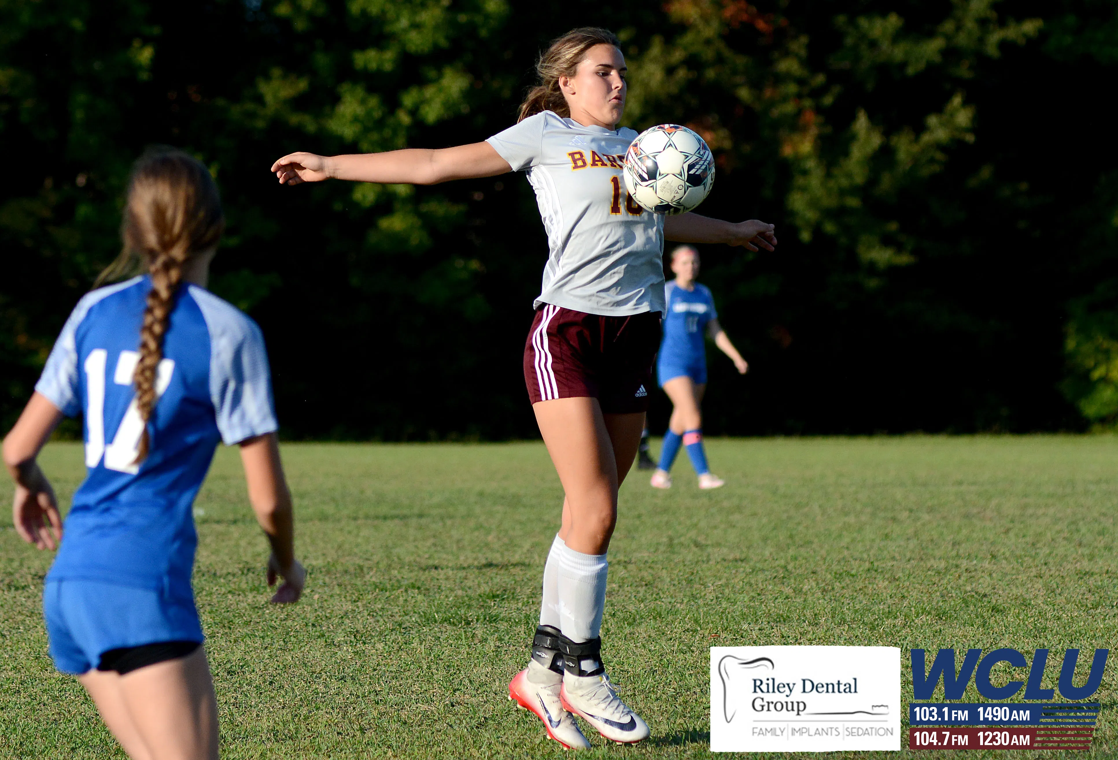Barren County’s Shelby Byrd settles the ball with her chest against Allen County-Scottsville. Barren County won, 2-0. Auggie Brown/WCLU Sports