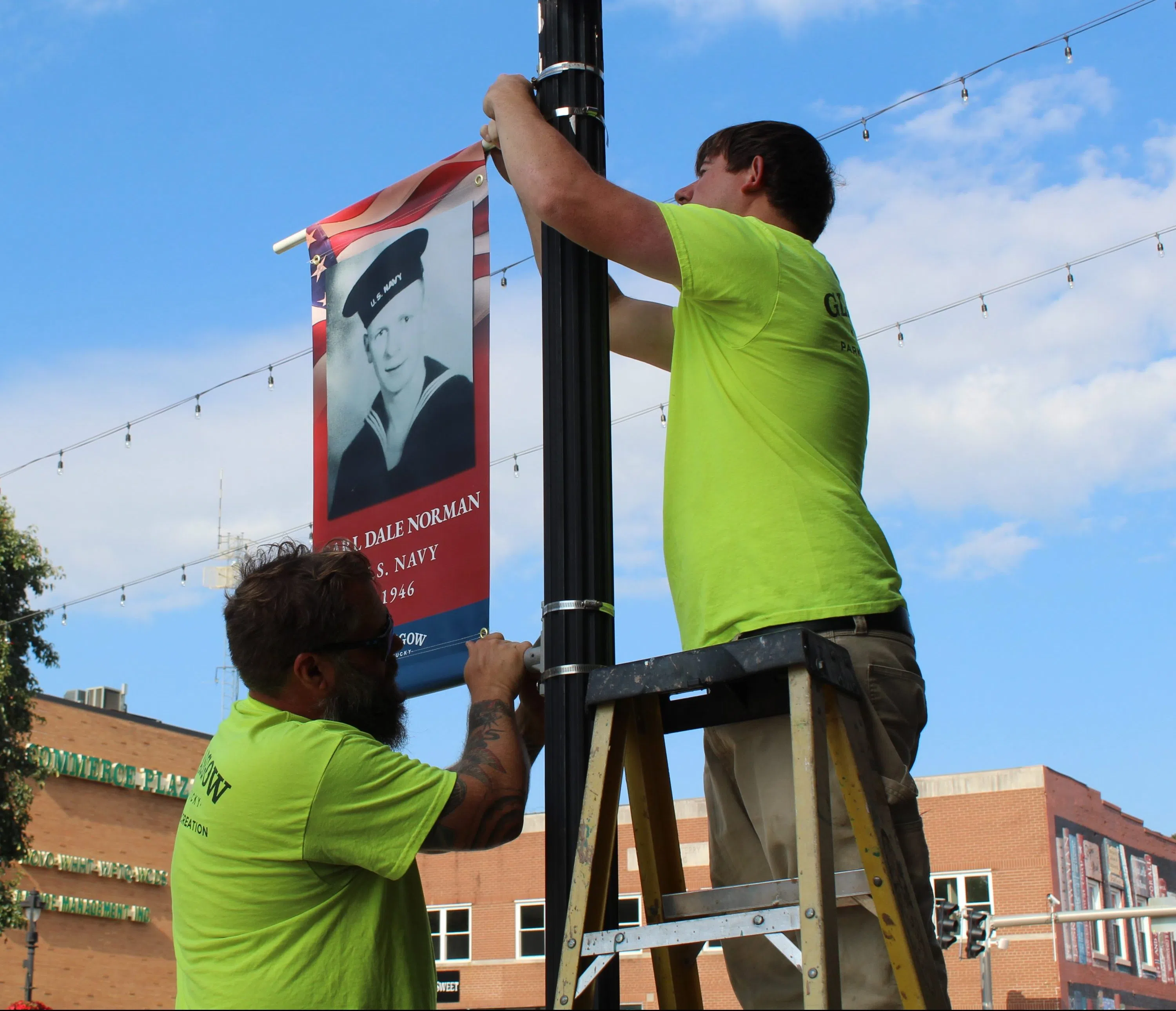 The red, white and blue banners hang off lampposts in and around the Glasgow Public Square and feature a photo of the local veteran, their branch of service and the length of time served. In 2024, city employees hung 17 veterans banners, and 16 the year prior.