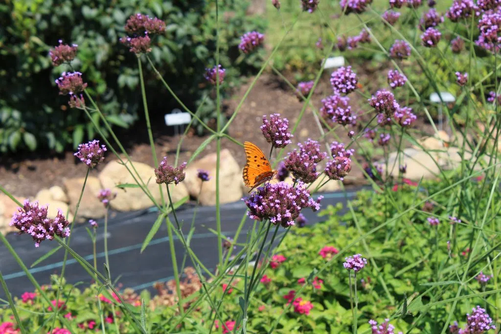 Seemingly in competition with Baker for the crowd’s attention, orange butterflies floated from one flower to another in the nearby garden, which Baker said used to be just an empty green area. Baker explained this area is a certified Monarch Waystation.