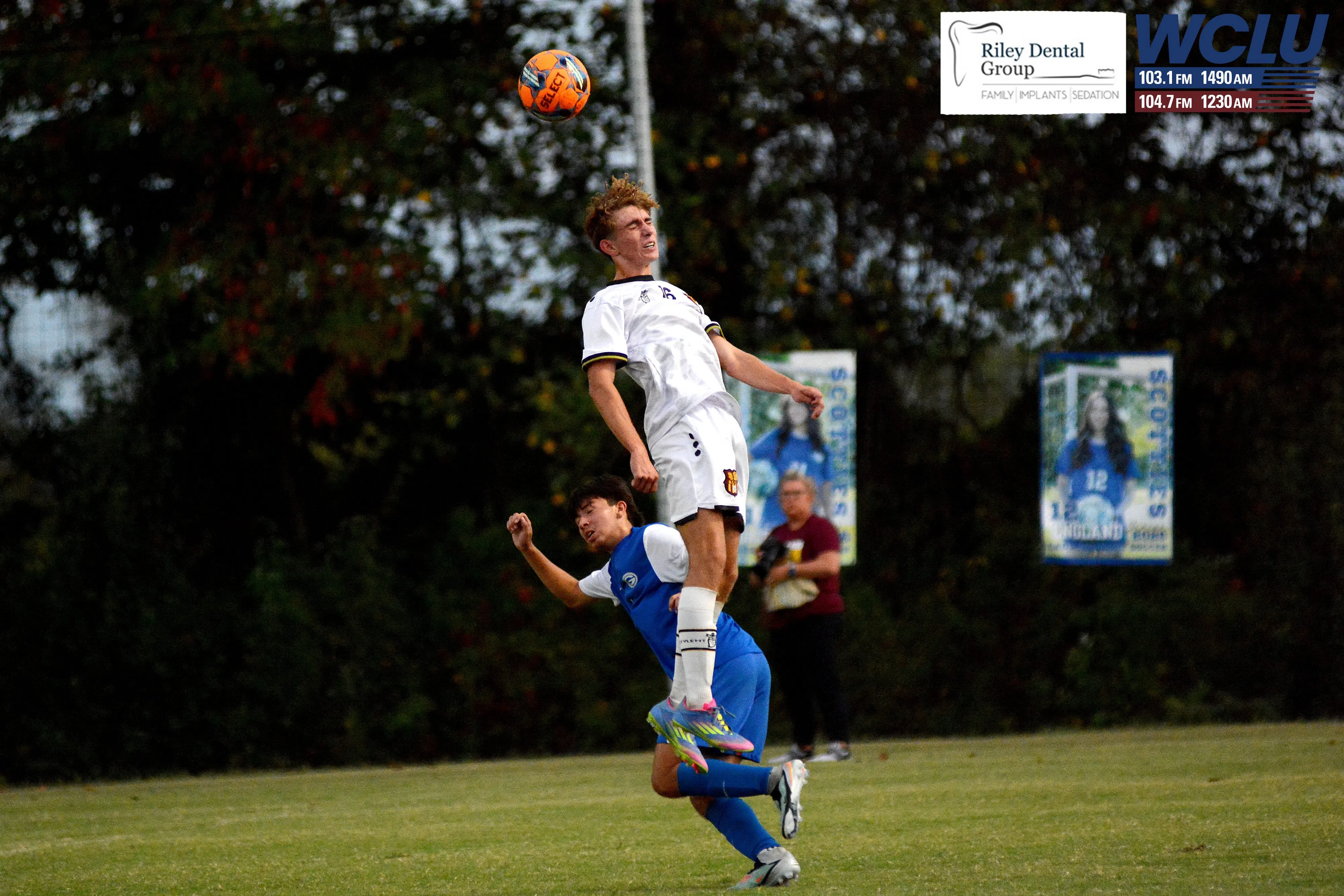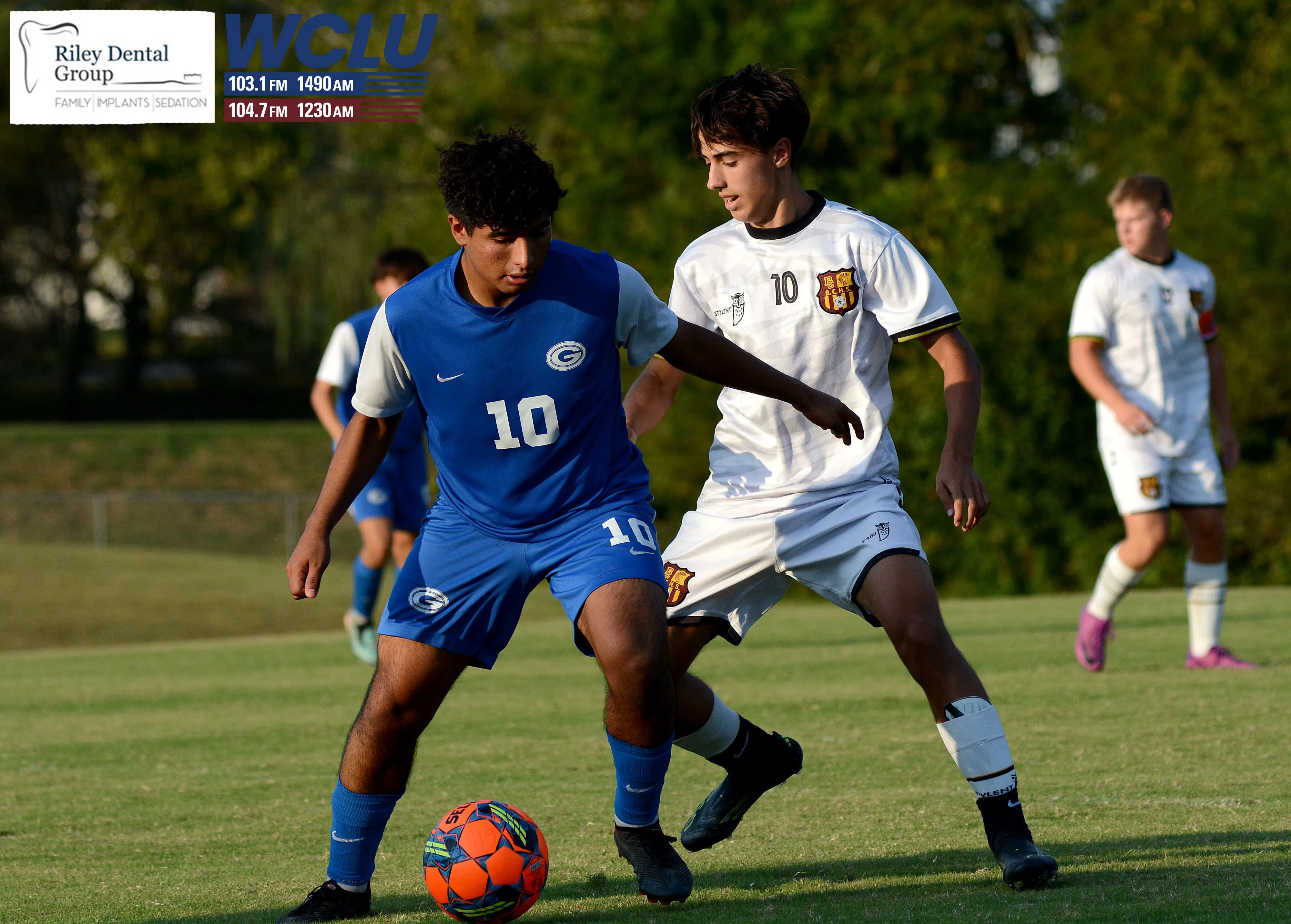 Barren County’s Austin Emerson and Glasgow’s Ian Parocai battle for the ball. Glasgow won, 6-2. Auggie Brown/WCLU Sports