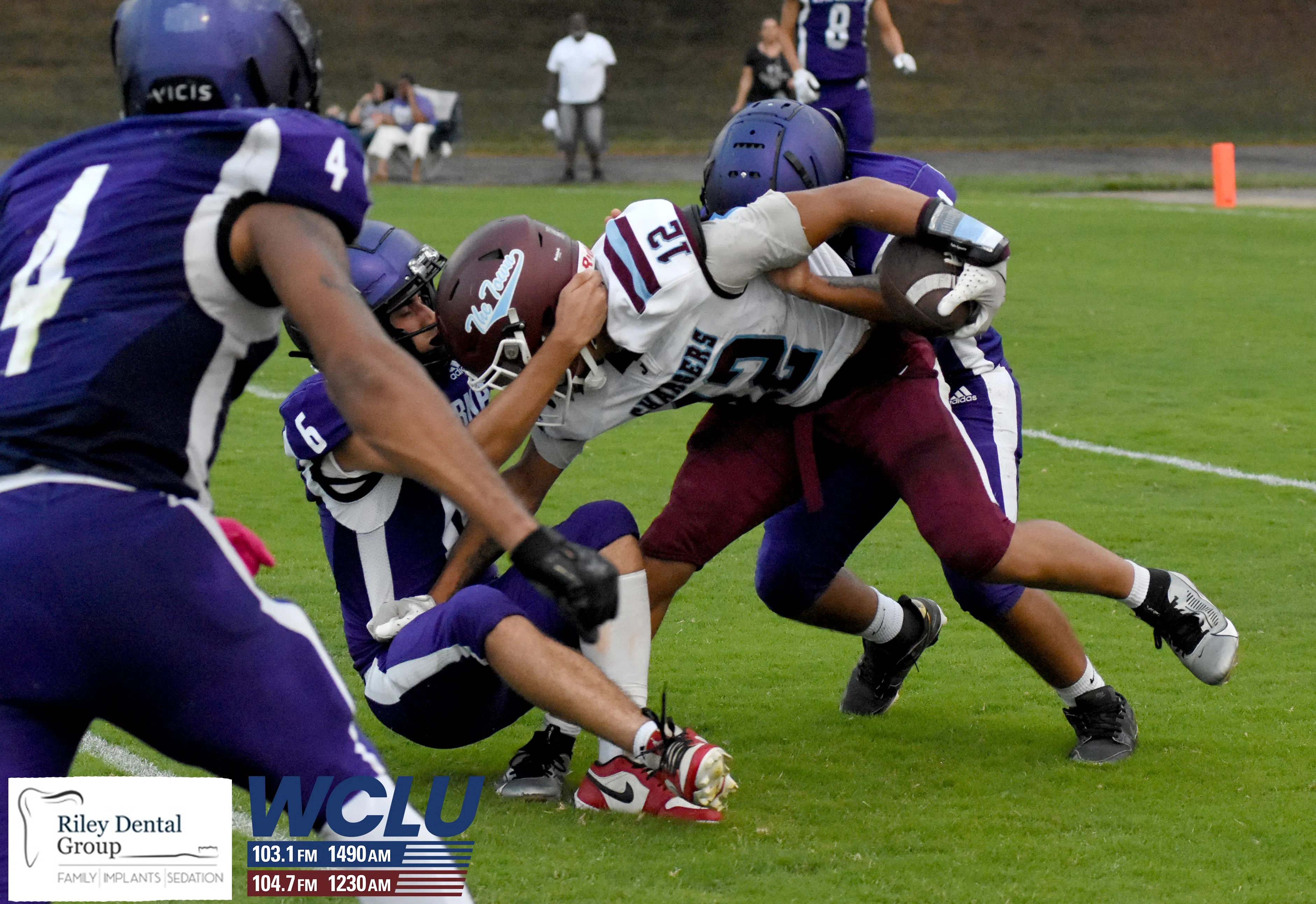 Caverna’s Zandon Corn hits the quarterback against Jeffersontown. The Colonels lost, 50-12. James Brown/WCLU Sports