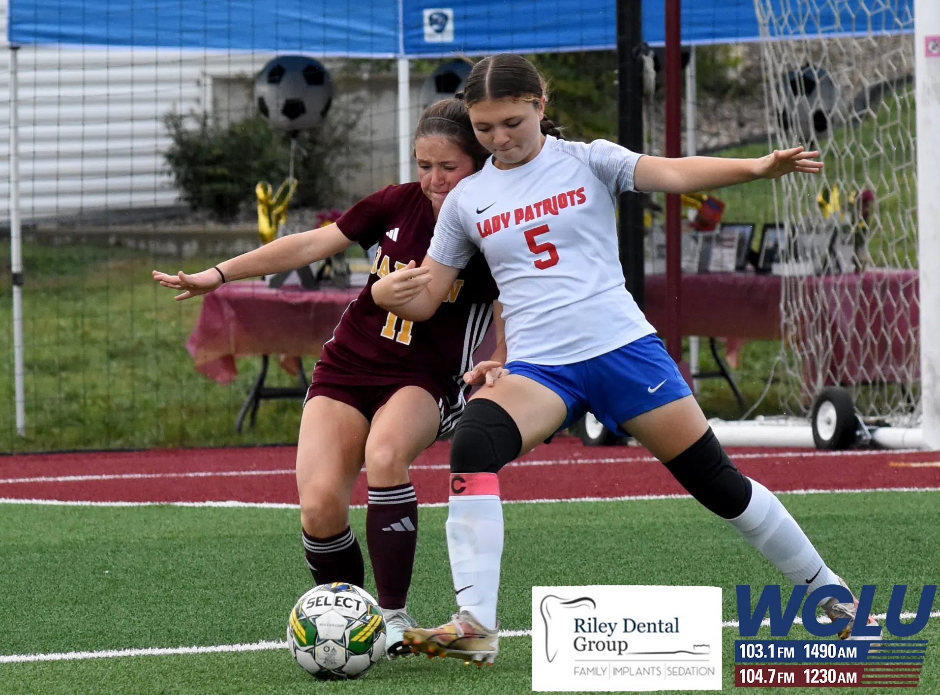 Barren County’s Emma Mouser battles for the ball against Allen County-Scottsville in a 15th District contest. The Trojanettes won, 4-0. James Brown/WCLU Sports