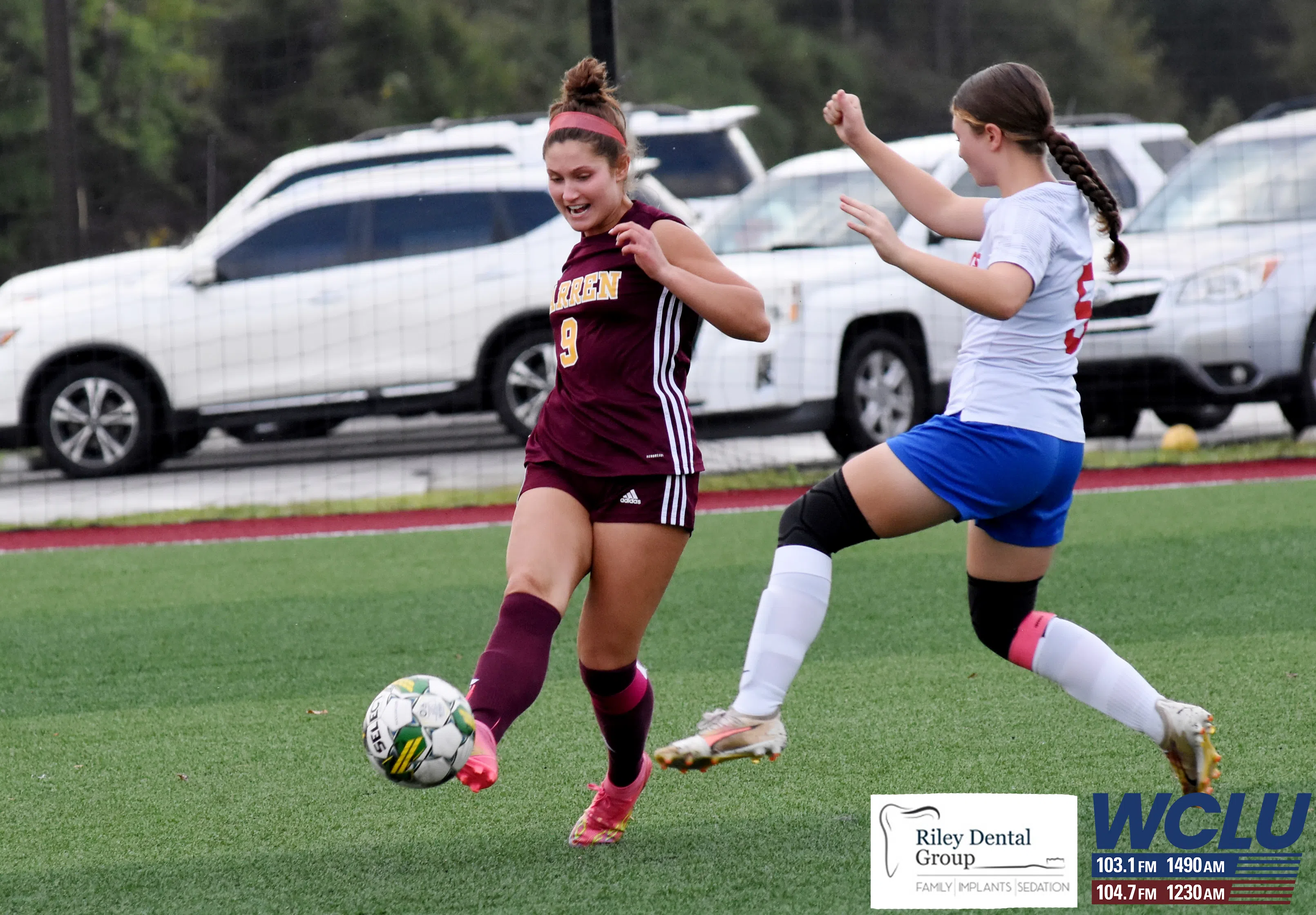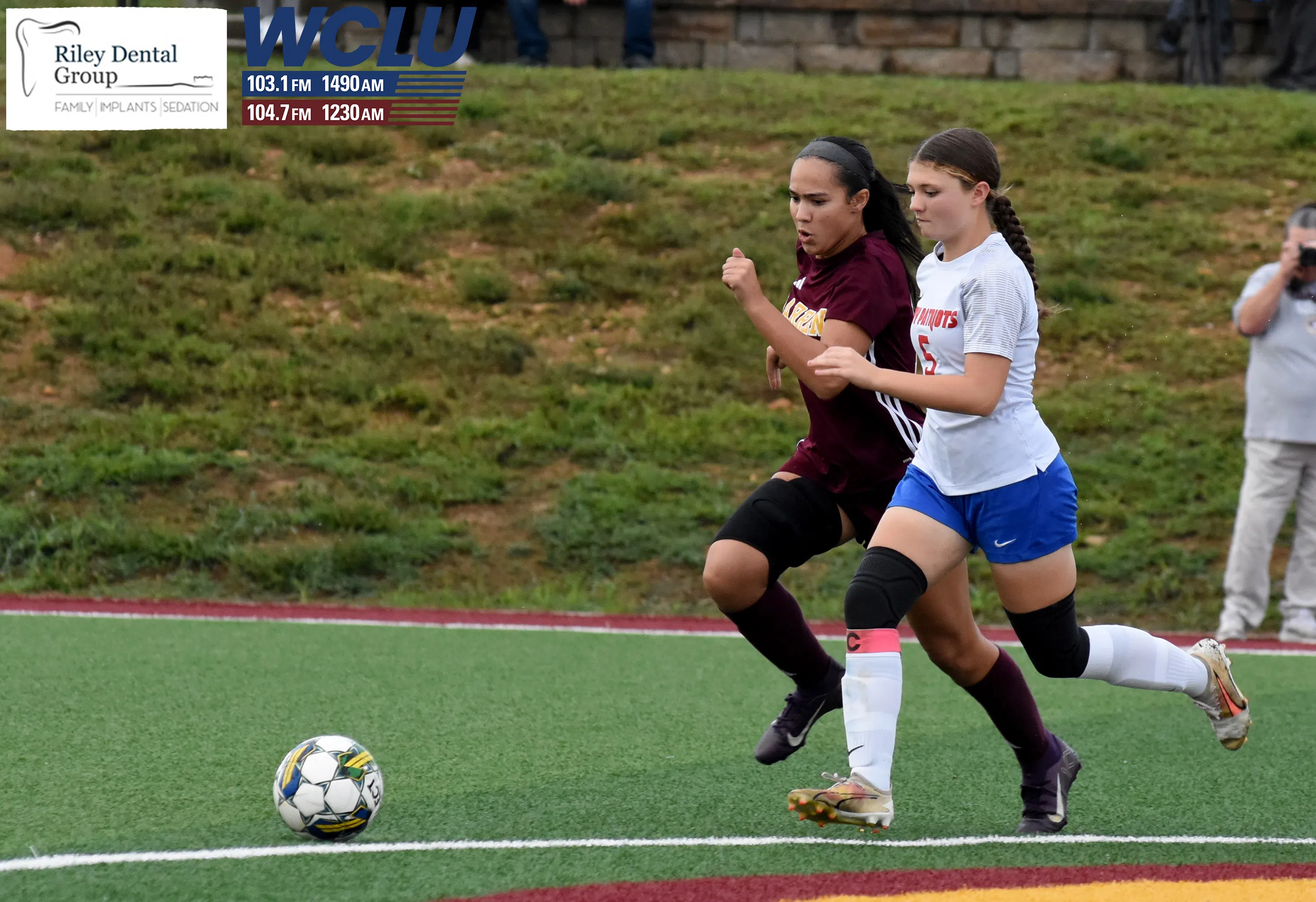 Barren County’s Brooklyn Wright races for the ball against Allen County-Scottsville in a 15th District contest. The Trojanettes won, 4-0. James Brown/WCLU Sports