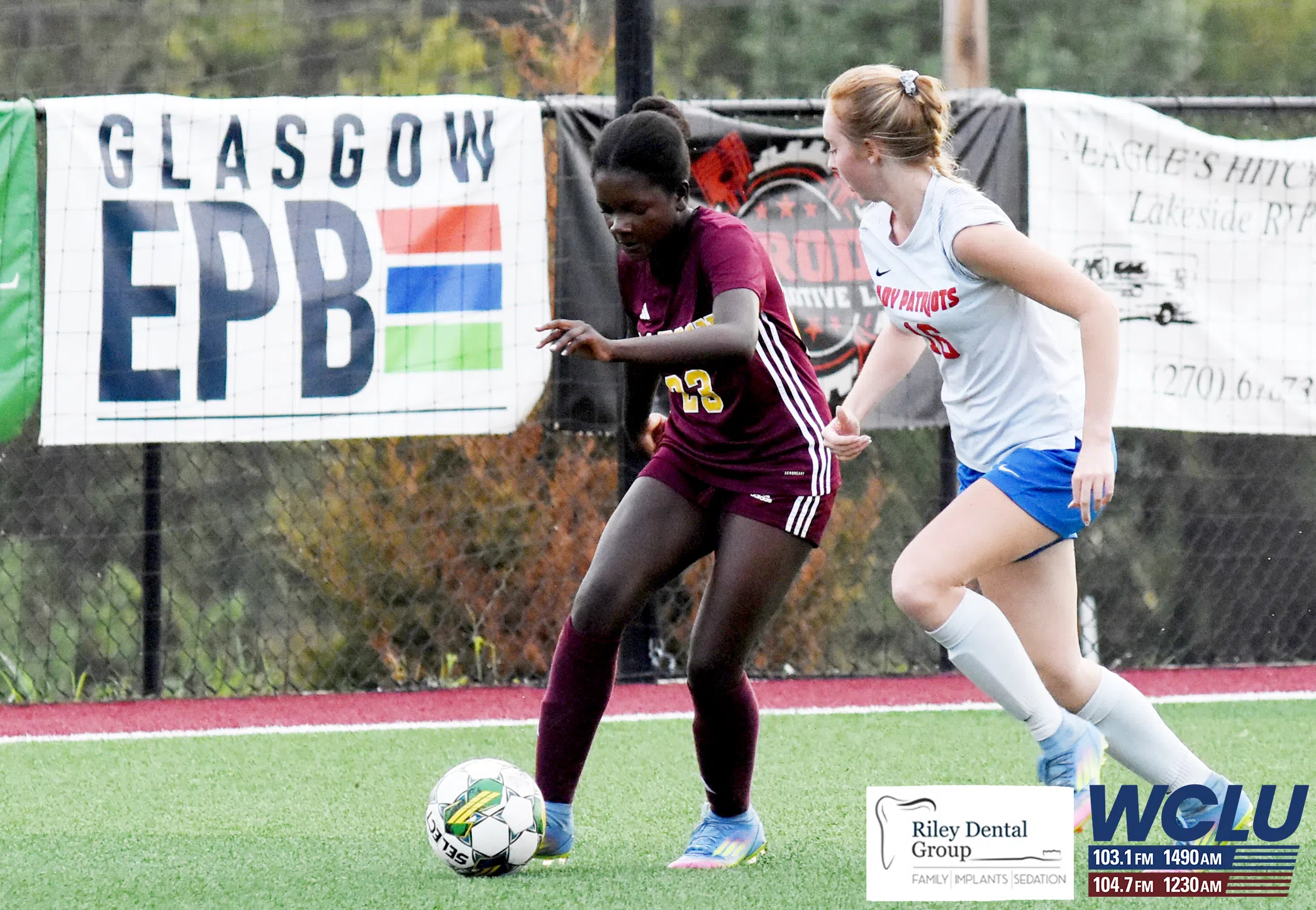 Barren County’s Sephora Velcine dribbles the ball against Allen County-Scottsville in a 15th District contest. The Trojanettes won, 4-0. James Brown/WCLU Sports