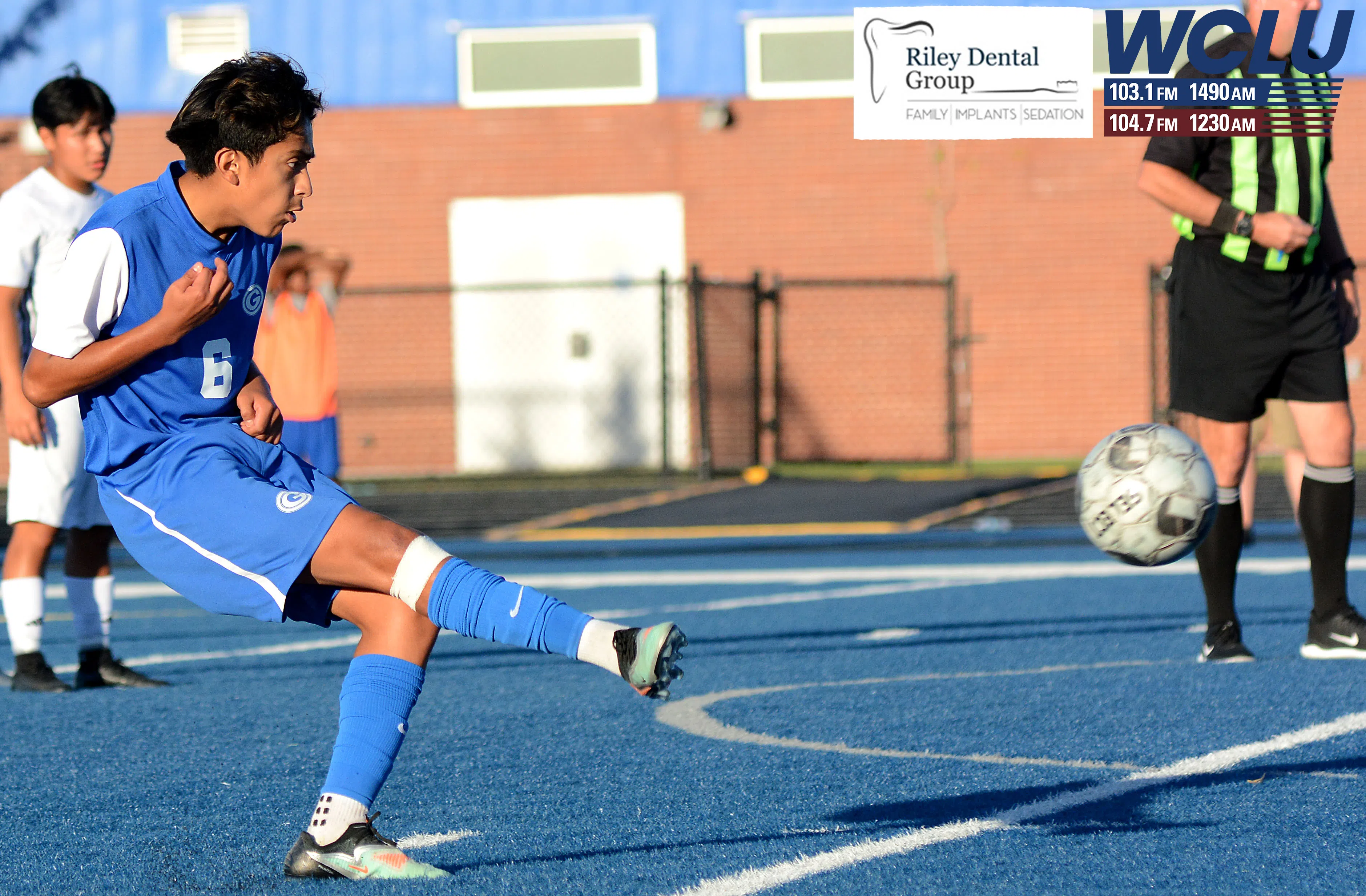 Glasgow’s Daniel Rodriguez shoots the ball on a free kick against Warren East in the Boys’ 15th District Tournament title game. The Scotties won, 4-1. Auggie Brown/WCLU Sports