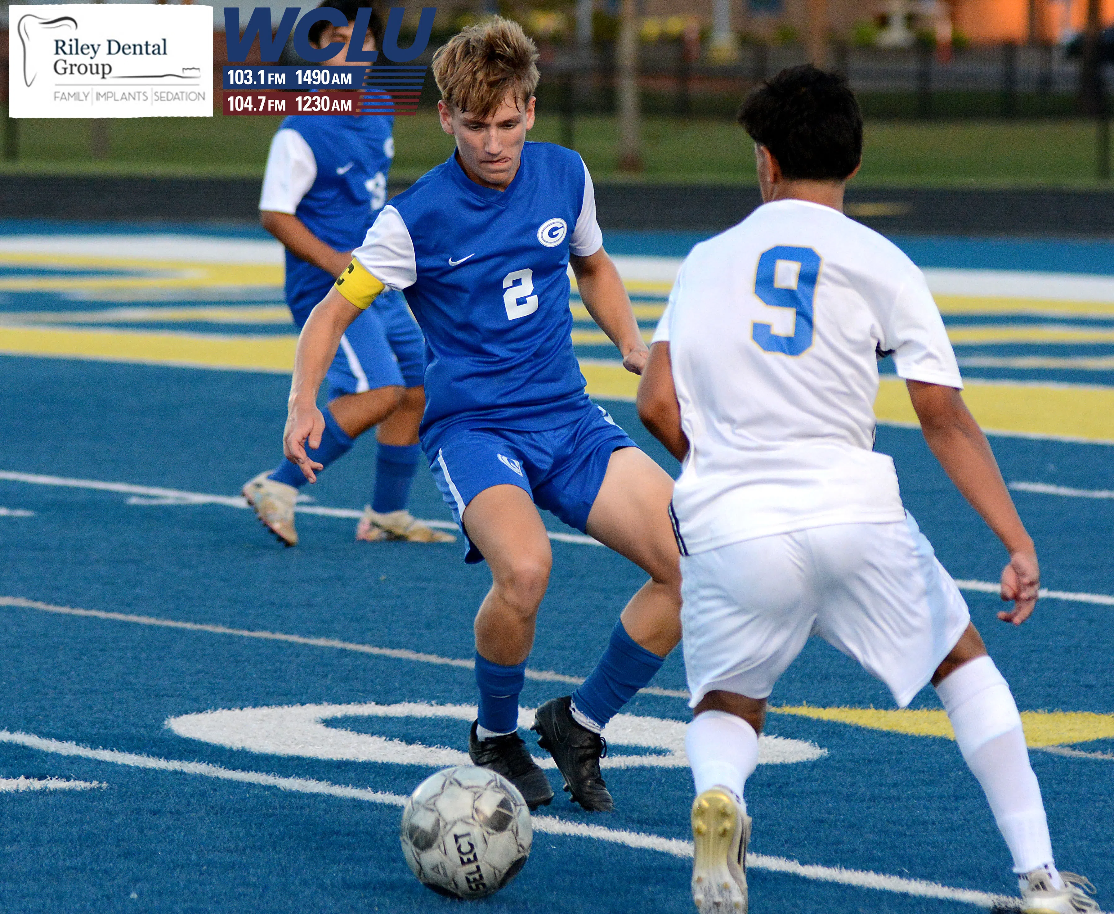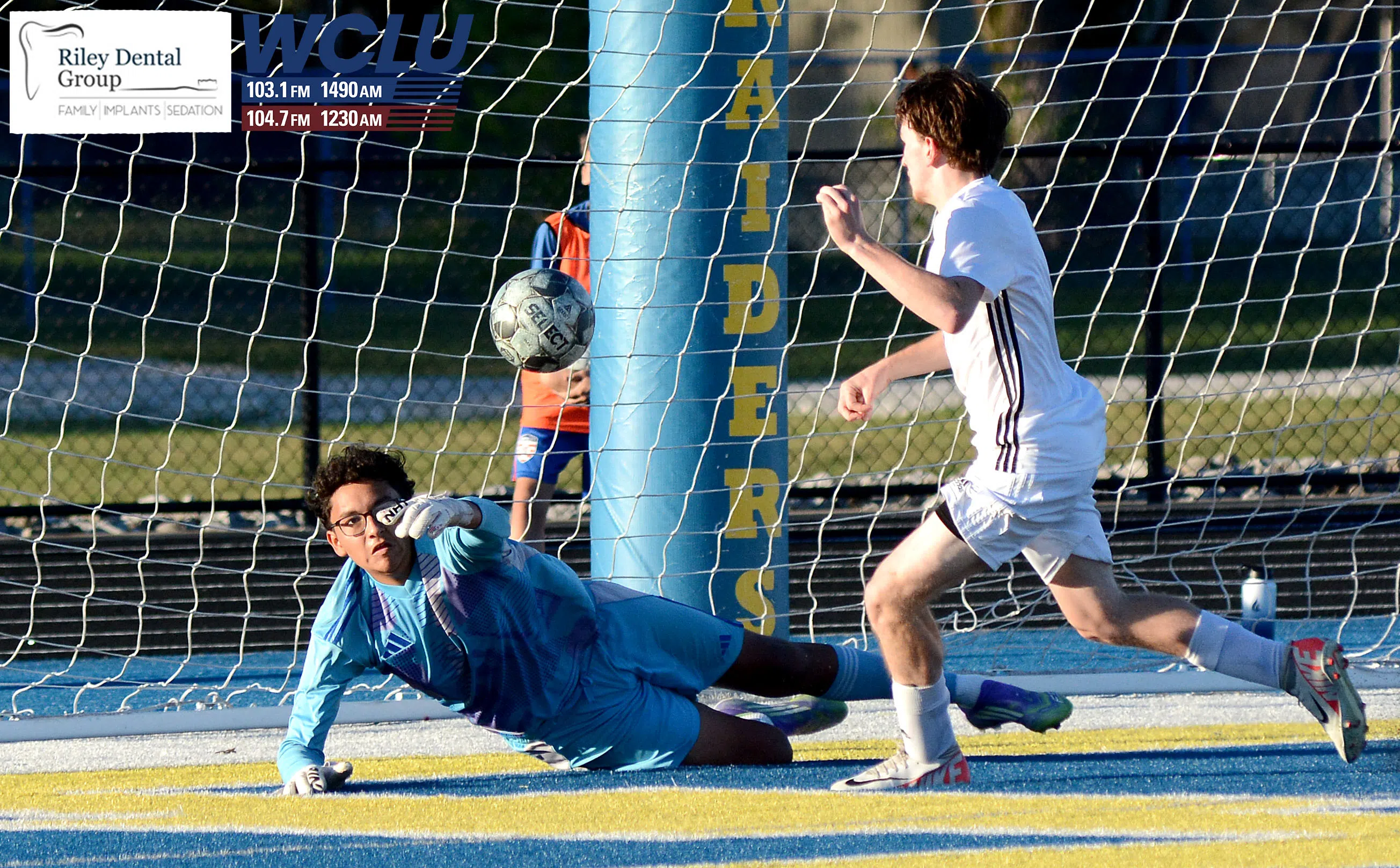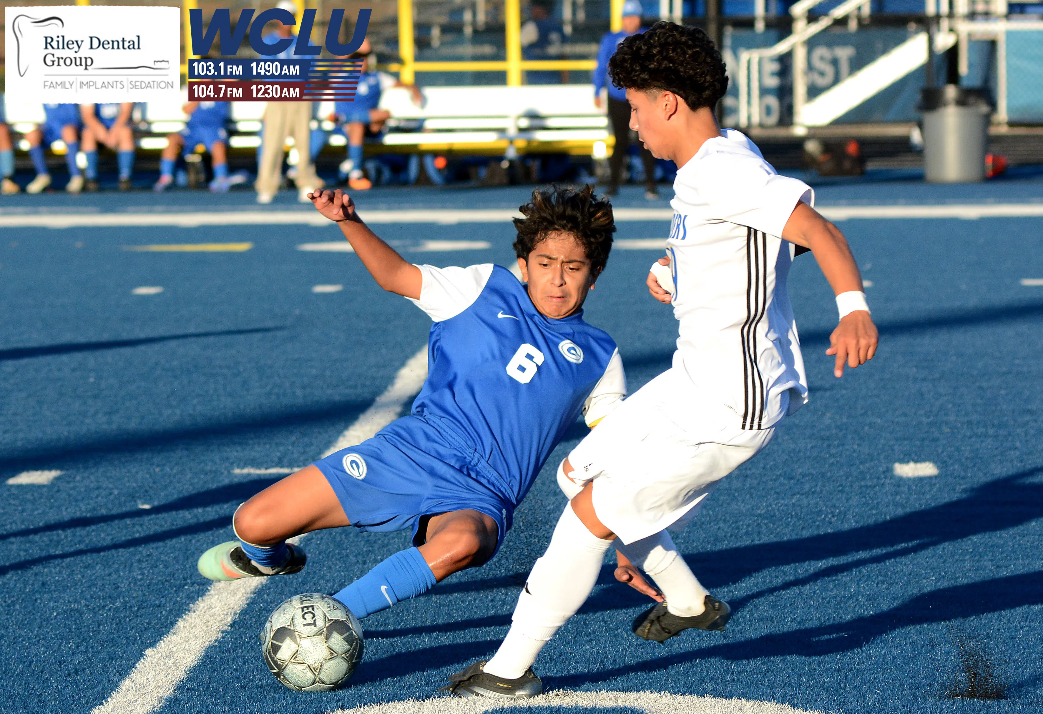 Glasgow’s Owen Travis clears the ball out of bounds against Warren East in the Boys’ 15th District Tournament title game. The Scotties won, 4-1. Auggie Brown/WCLU Sports