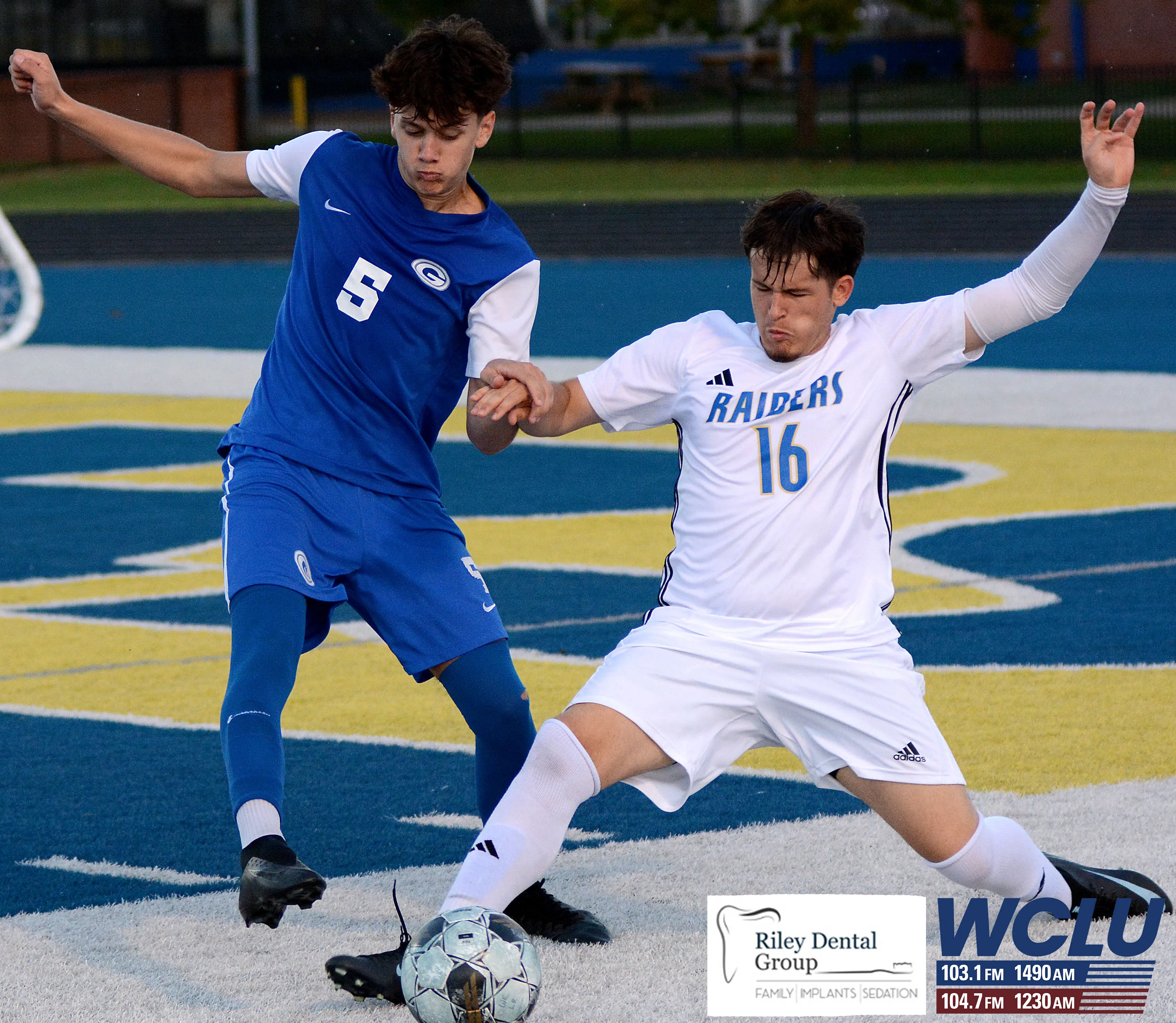 Glasgow’s Isaiah Ramos battles for the ball against Warren East in the Boys’ 15th District Tournament title game. The Scotties won, 4-1. Auggie Brown/WCLU Sports