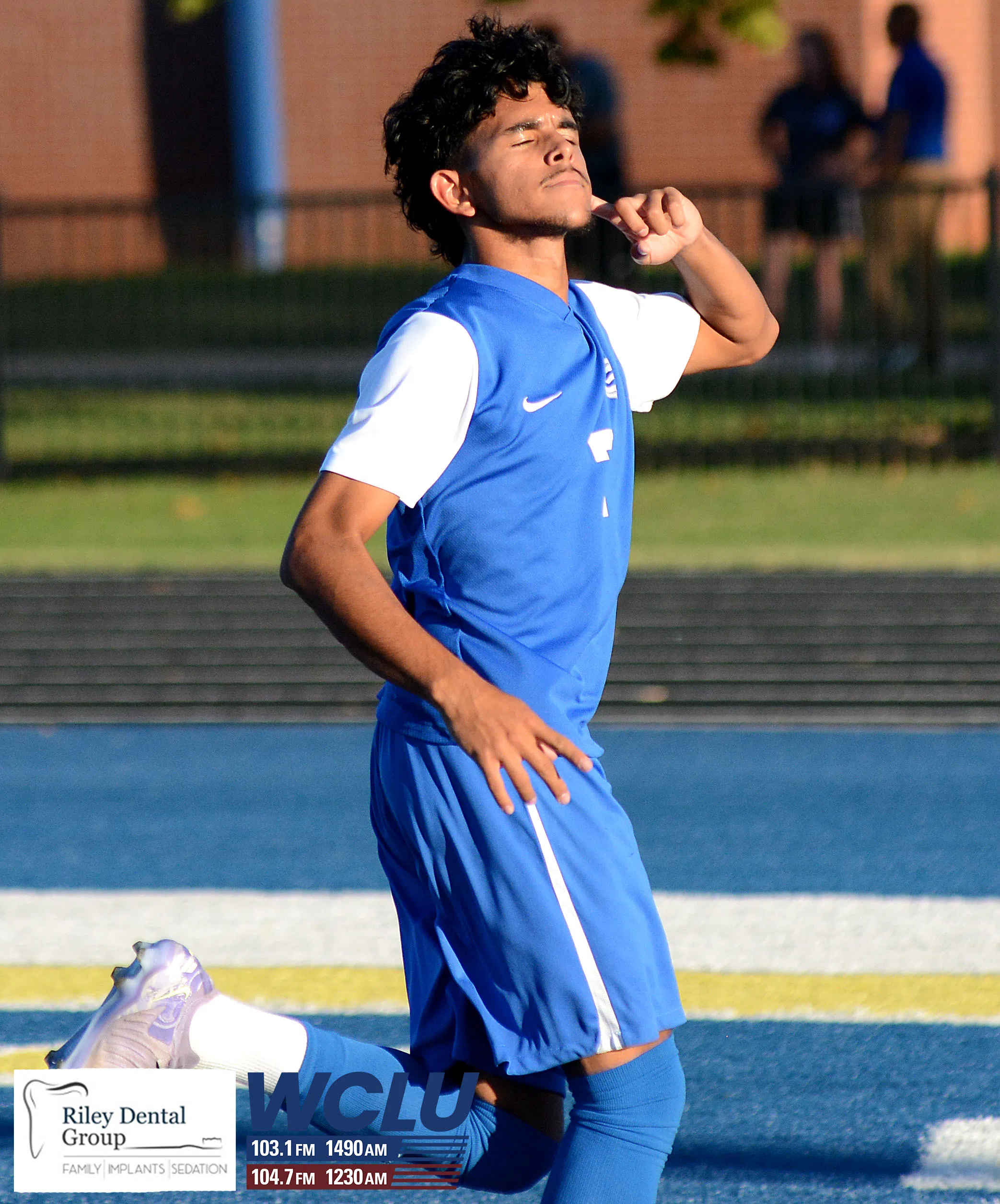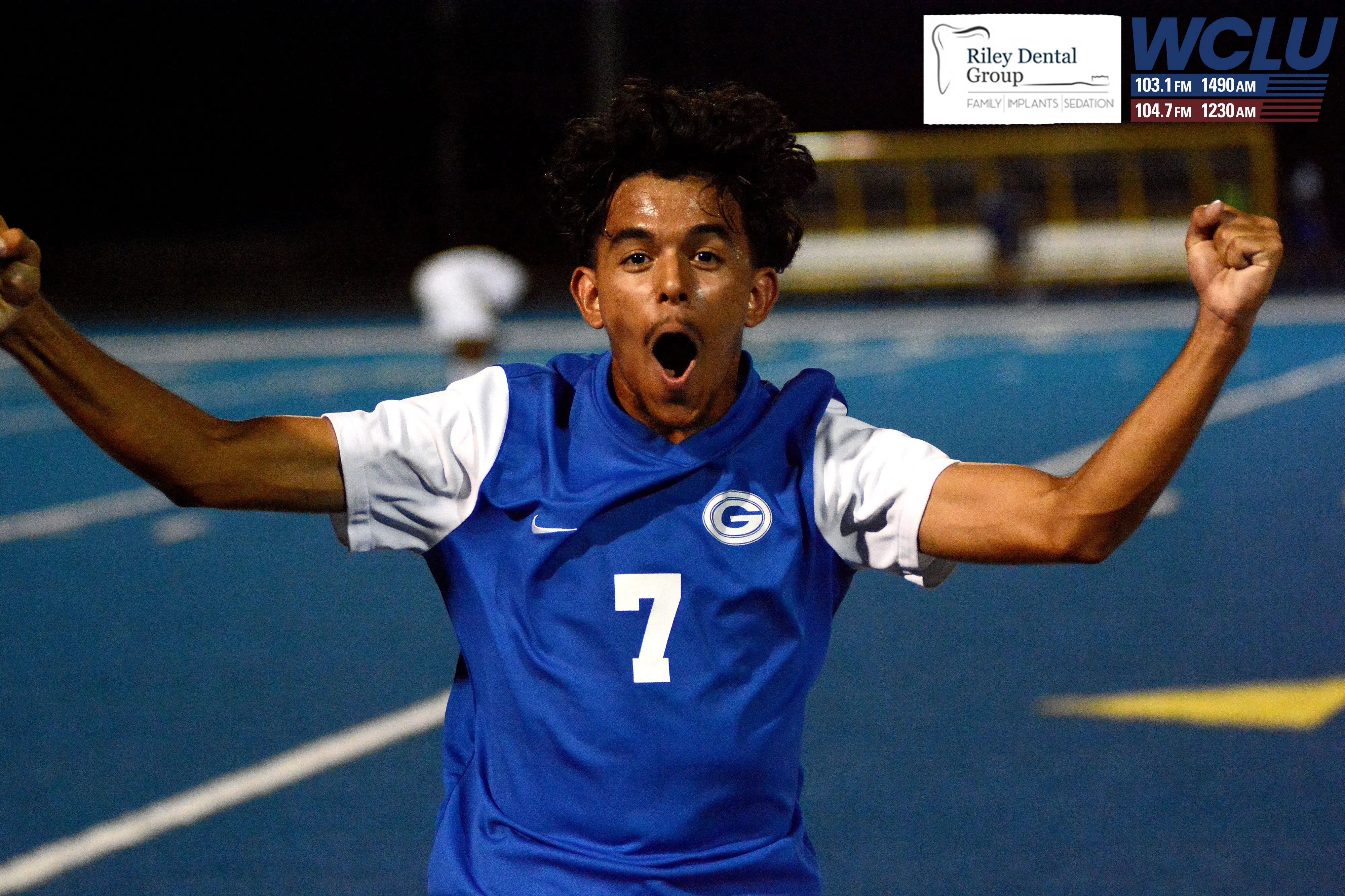 Glasgow’s Ronaldo Puldon celebrates after Glasgow’s 4-1 win over Warren East in the Boys’ 15th District Soccer title game. Auggie Brown/WCLU Sports