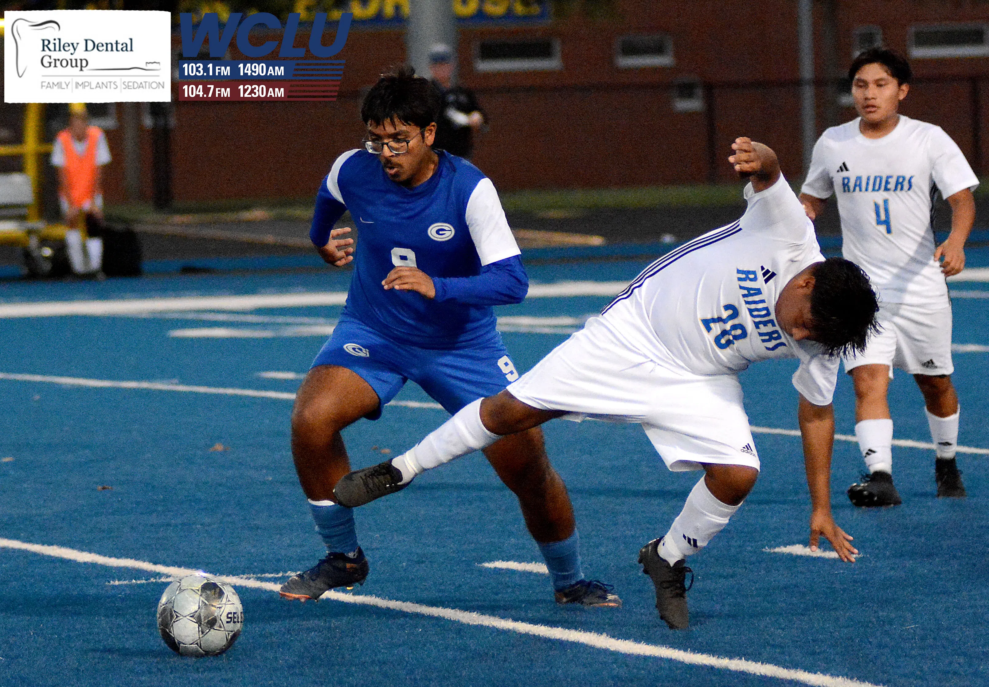 Glasgow’s Siddha Patel knocks a man off his feet while performing a tackle against Warren East in the Boys’ 15th District Tournament title game. The Scotties won, 4-1. Auggie Brown/WCLU Sports