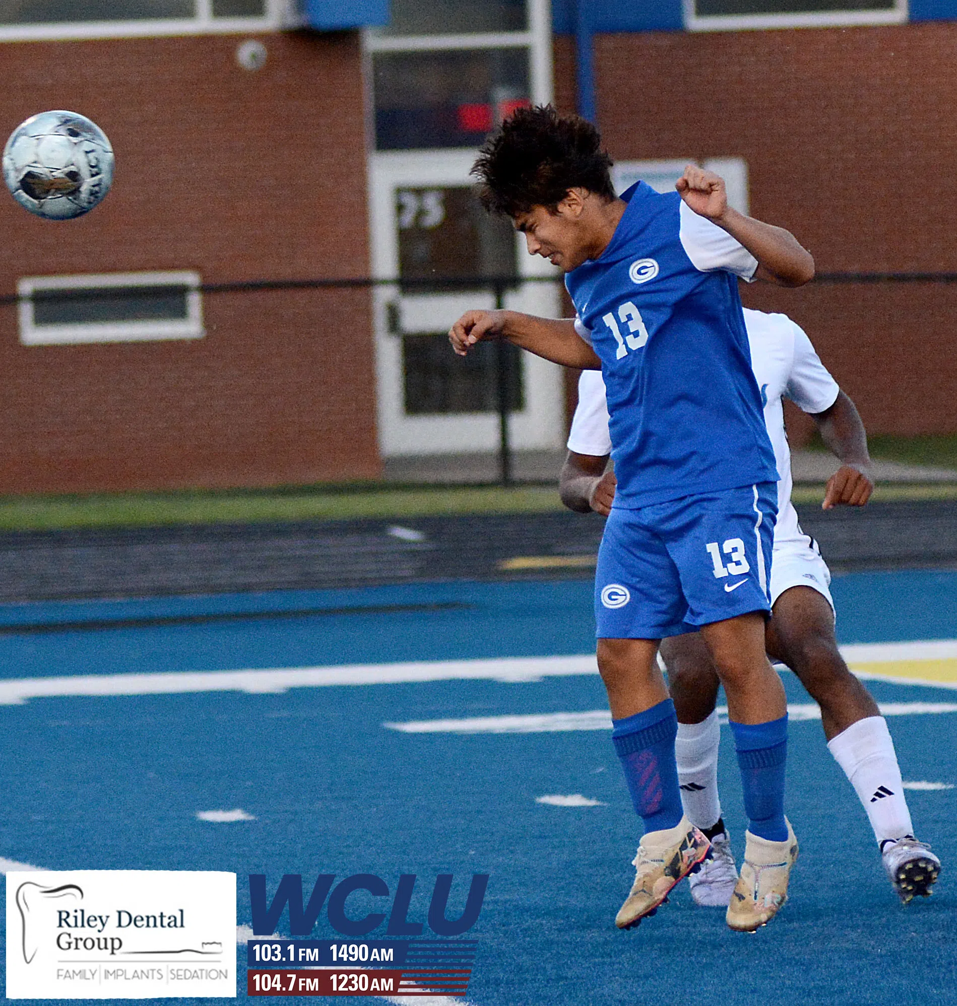Glasgow’s Wilson Barrios heads the ball against Warren East in the Boys’ 15th District Tournament title game. The Scotties won, 4-1. Auggie Brown/WCLU Sports