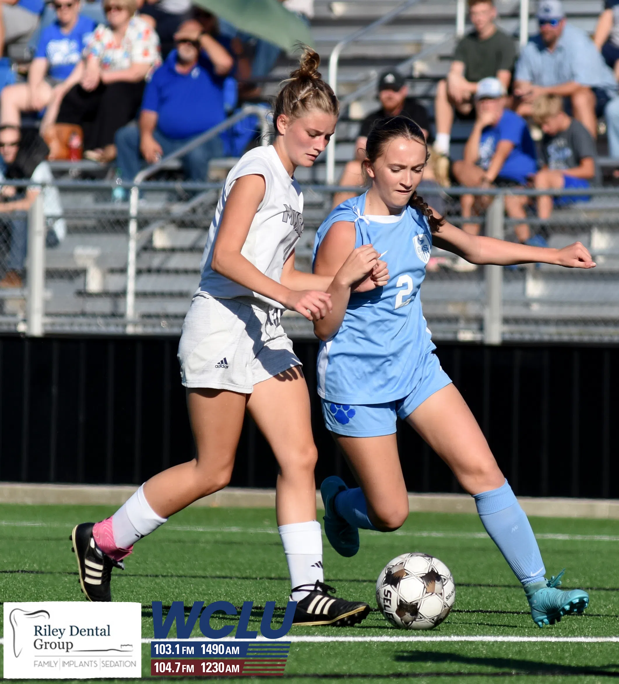 Glasgow’s Aniston Young battles for the ball against Monroe County in the Girls’ Fourth Region Soccer Tournament. The Lady Scotties won, 1-0. James Brown/WCLU Sports