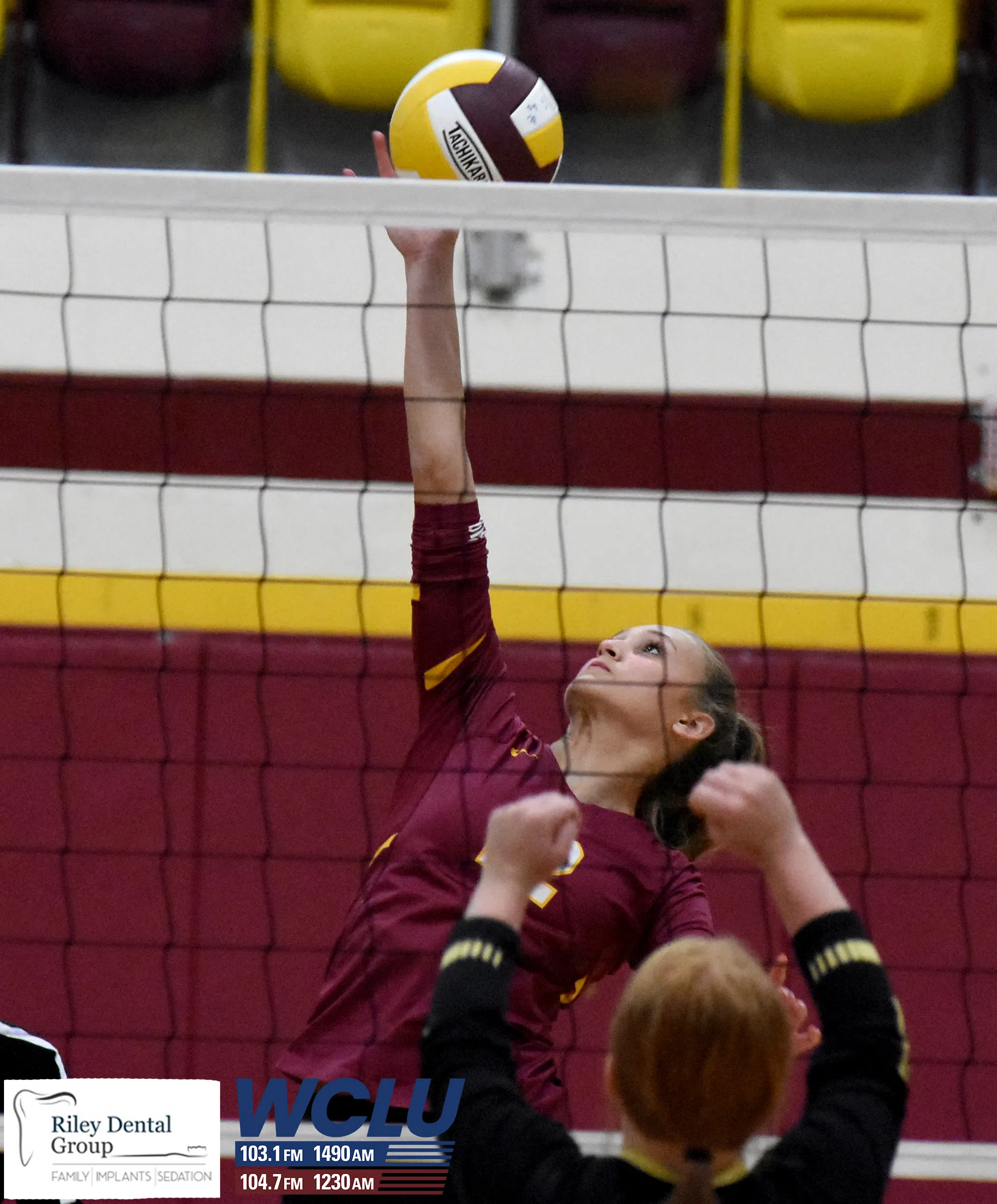 Barren County senior Riley Wilson sets the ball against Russellville on Senior Night. The Trojanettes won, 2-0. James Brown/WCLU Sports