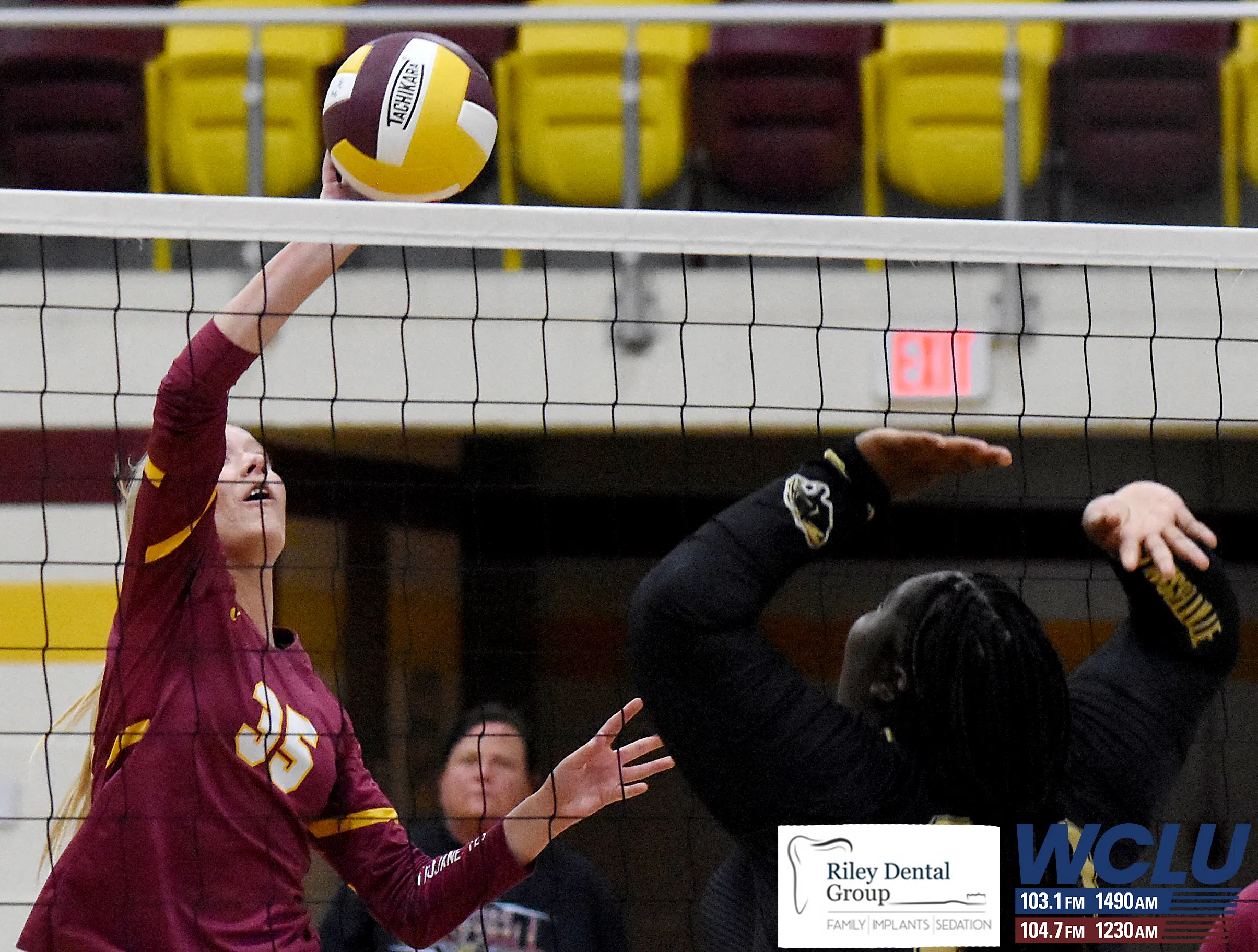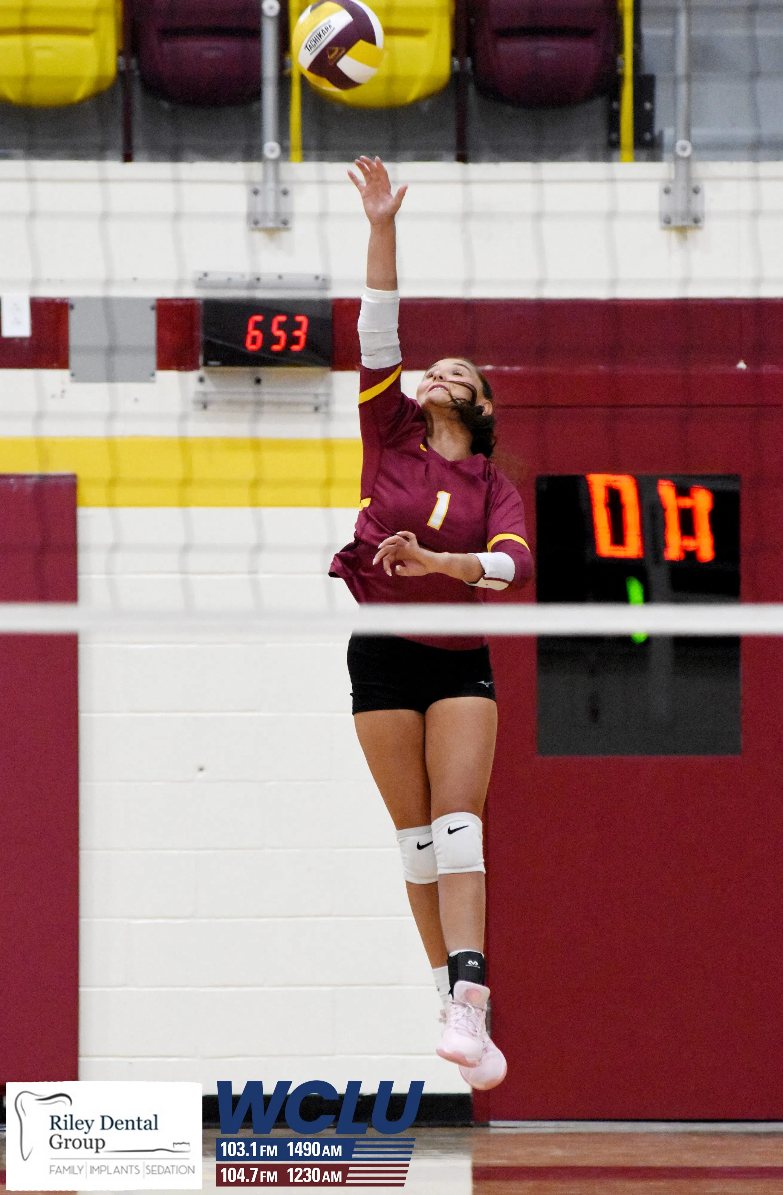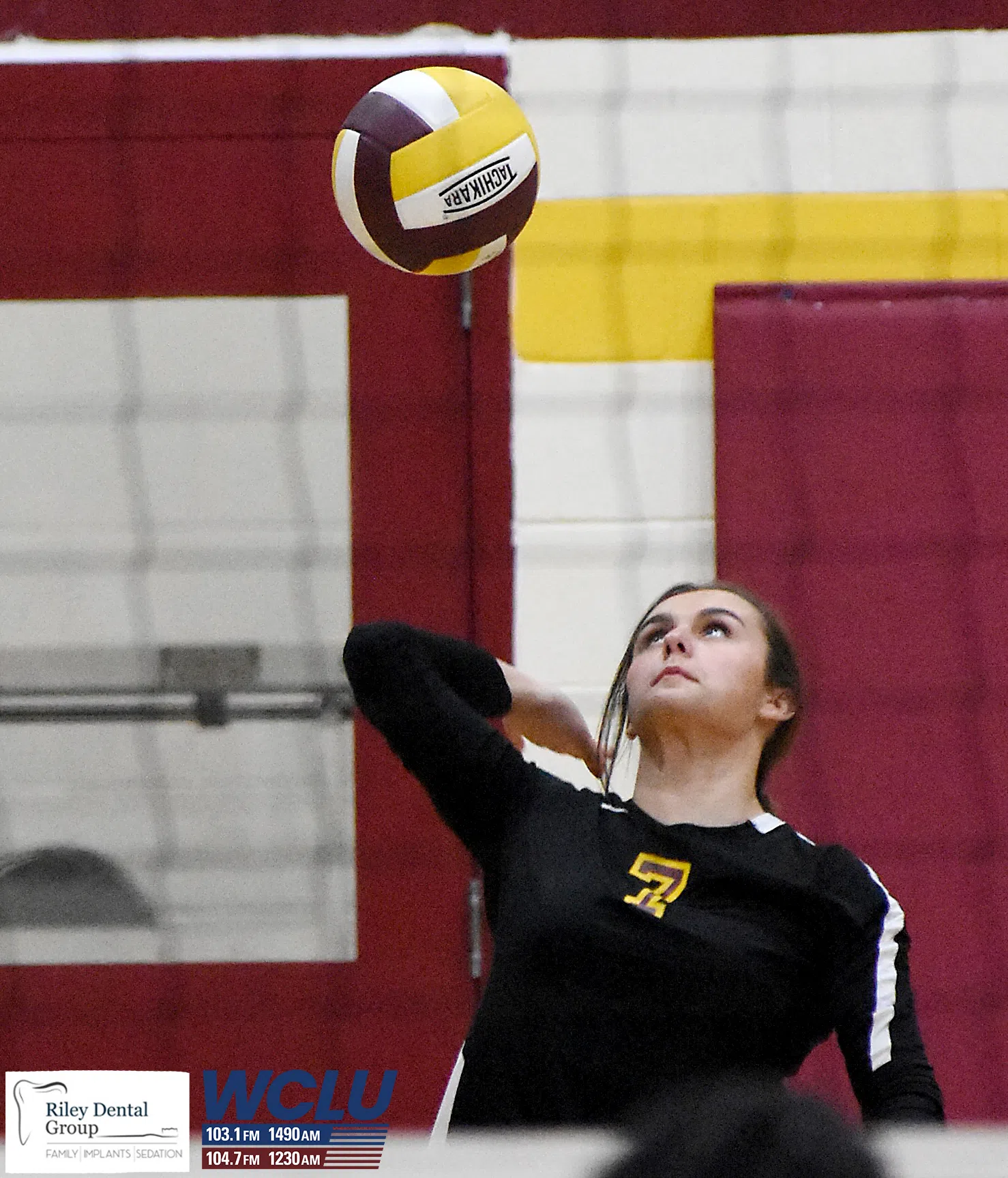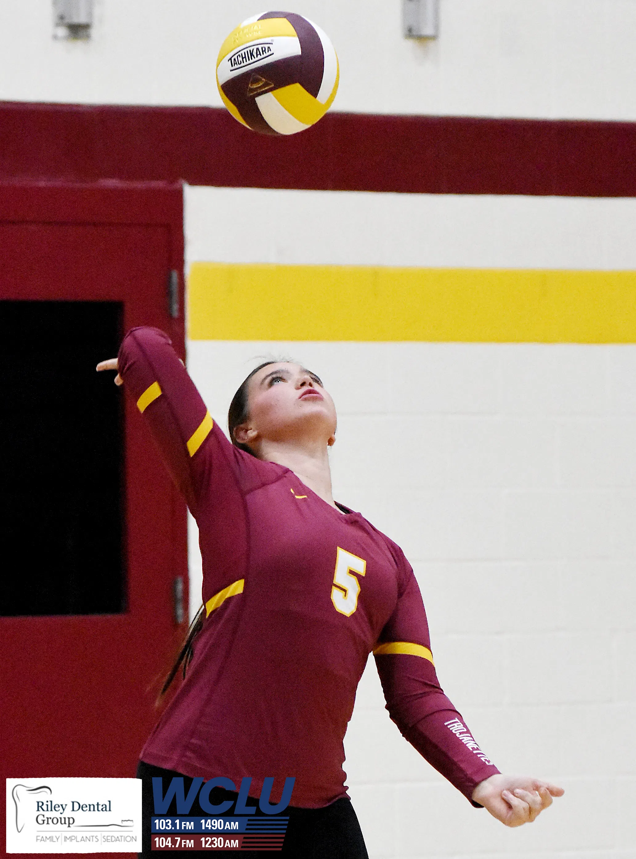 Barren County senior Riley Wilson sets the ball against Russellville on Senior Night. The Trojanettes won, 2-0. James Brown/WCLU Sports