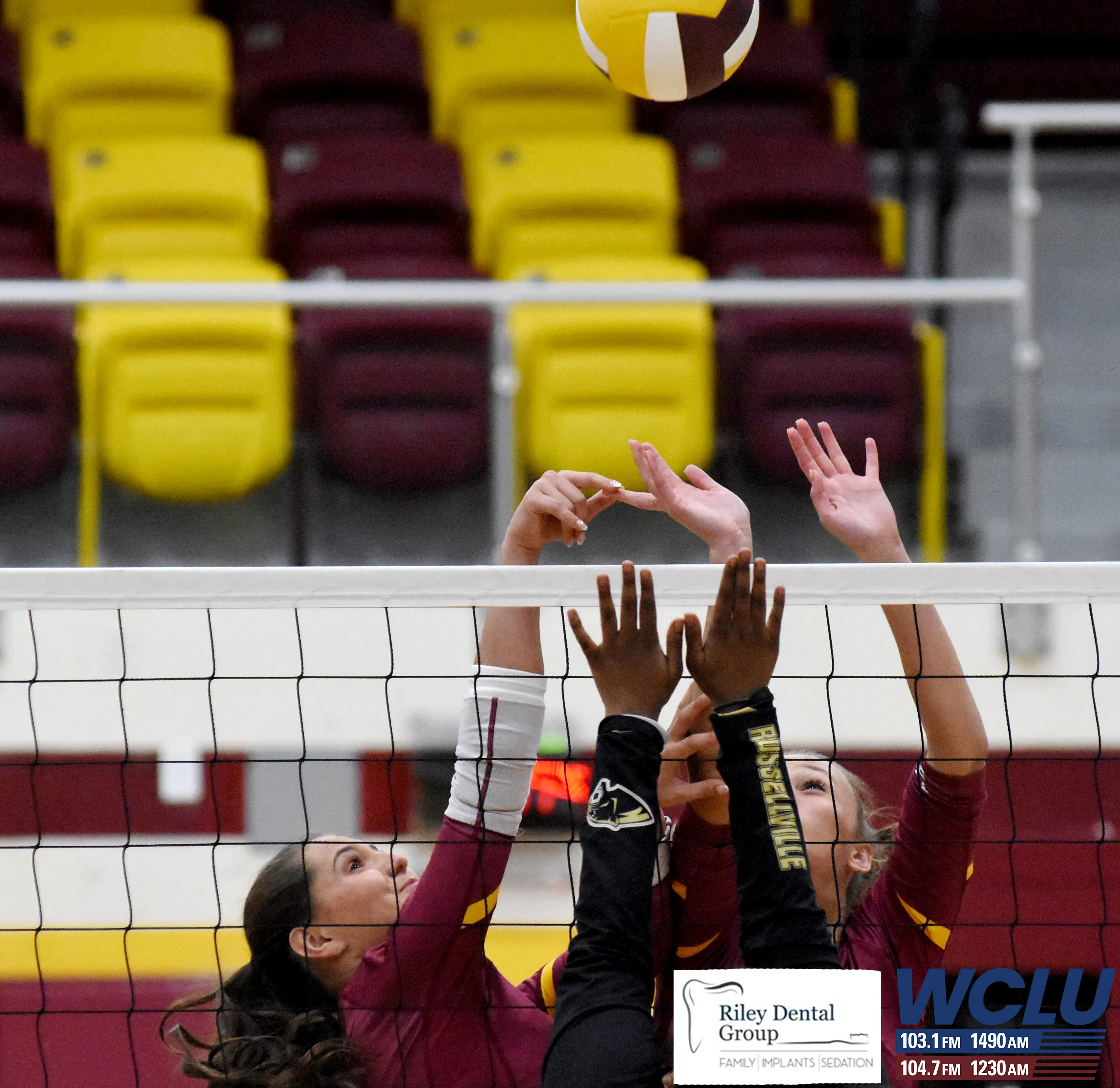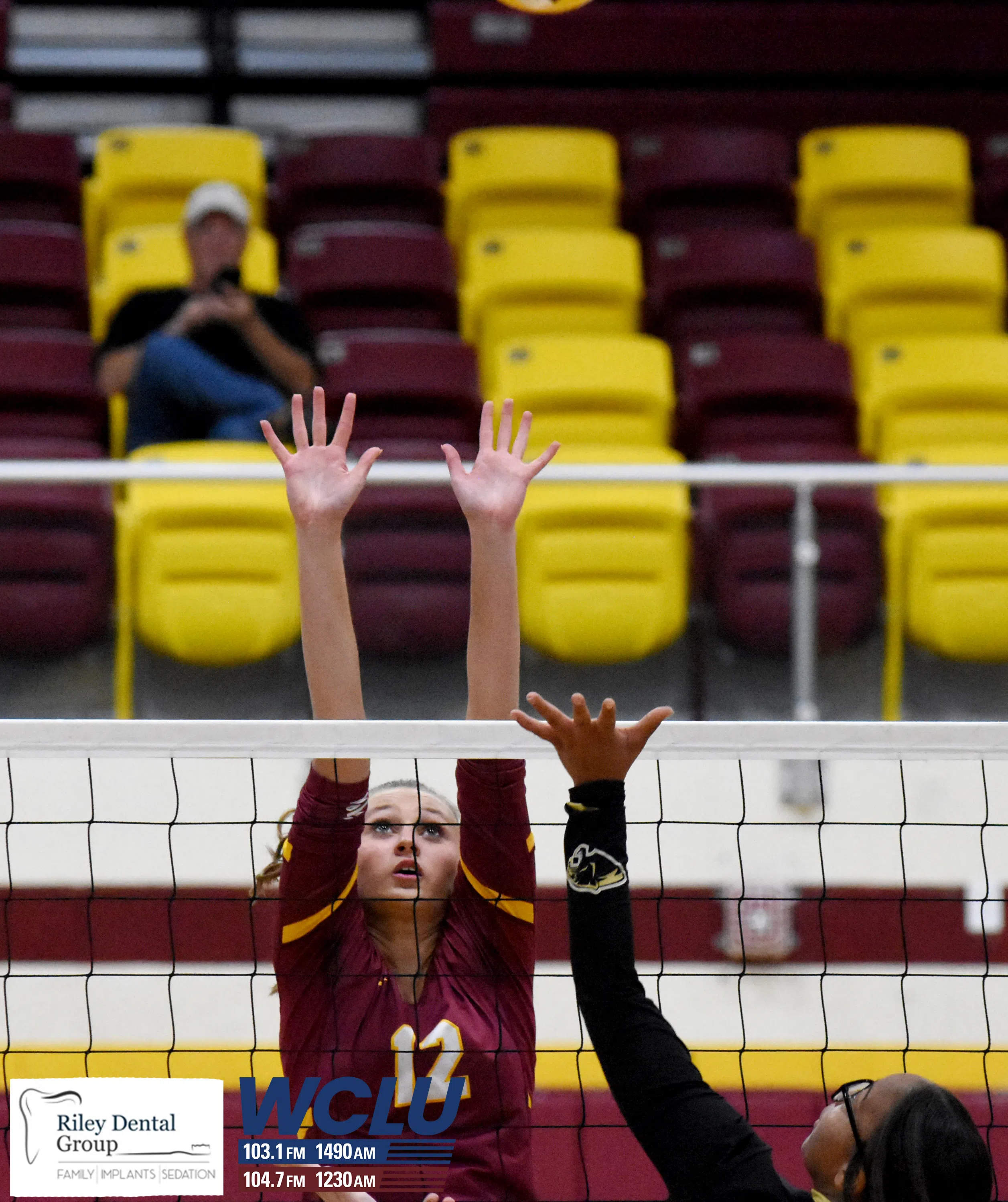 Barren County senior Hannah Bragg defends at the net against Russellville on Senior Night. The Trojanettes won, 2-0. James Brown/WCLU Sports