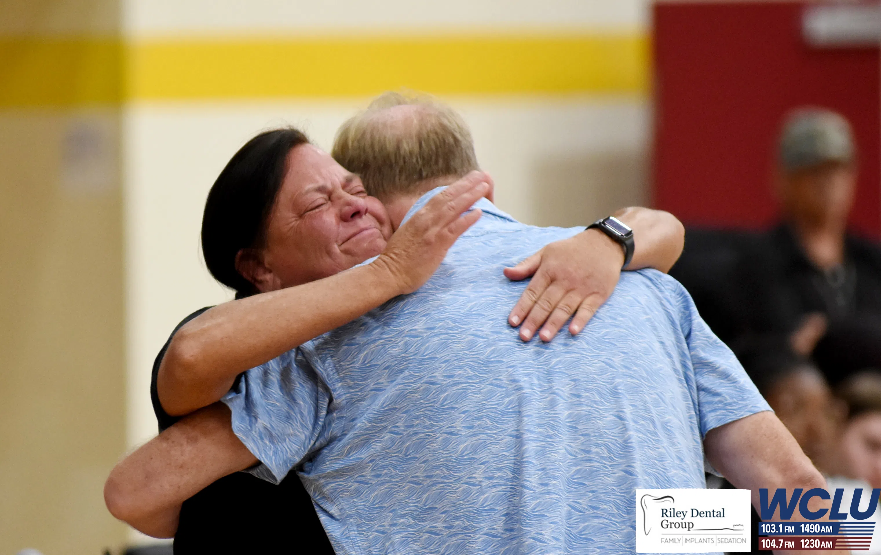 Six of Barren County’s eight seniors share a laugh during a time out against Russellville. From left, front, Ann Ashley Atkinson, Adley Cunningham, Kendall Esters, Riley Wilson, Savannah Murrell, and Josey Moore. Not pictured are seniors Hannah Bragg and Maylyn Ballard. The Trojanettes won on Senior Night, 2-0. James Brown/WCLU Sports