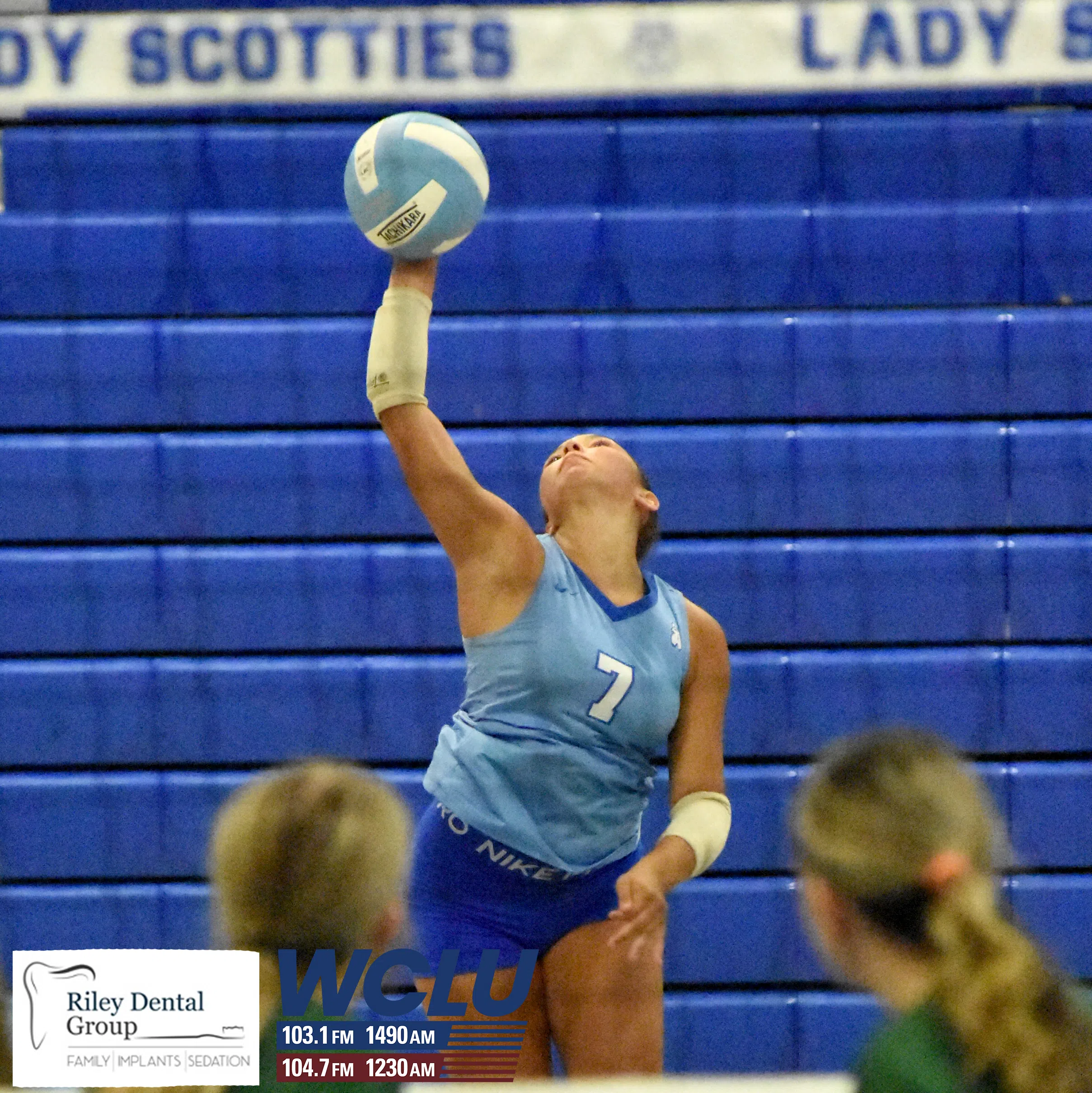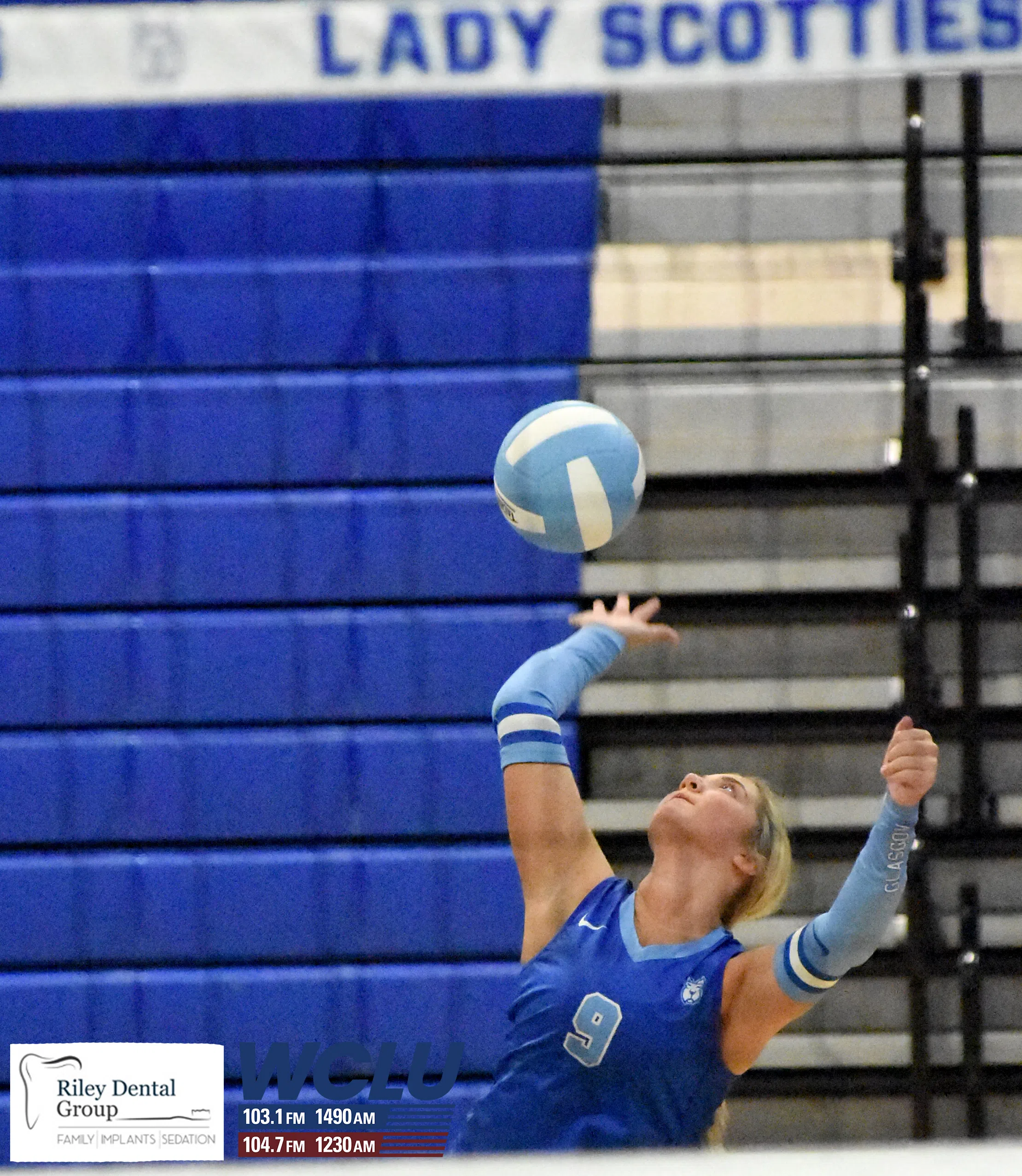 Glasgow’s Jada Wood sets the ball against Hart County on Senior Night. The Lady Scotties won, 2-0. James Brown/WCLU Sports
