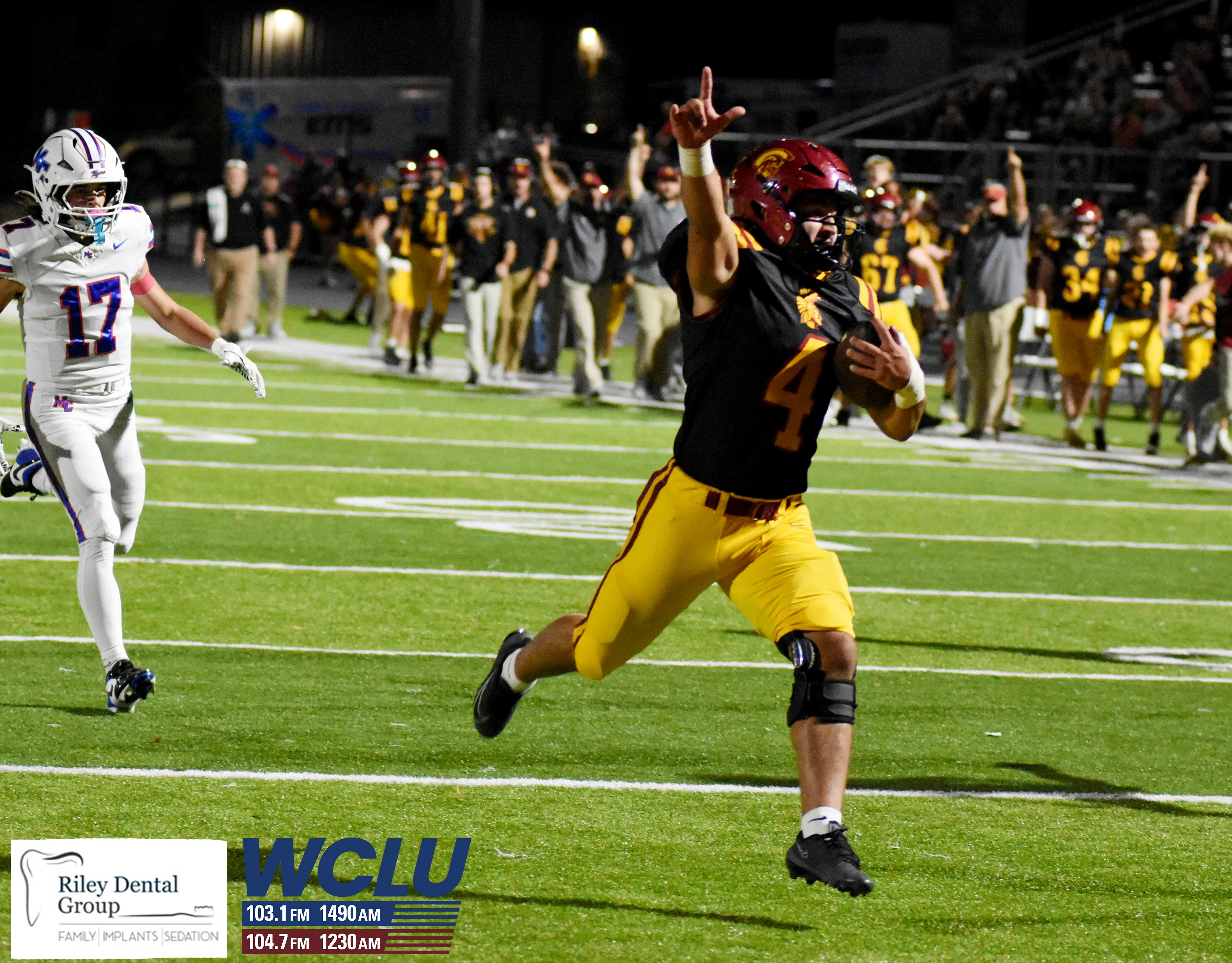Barren County’s Braxton Carnes runs for a touchdown against Macon County, Tenn. The Trojans lost, 29-14. James Brown/WCLU Sports