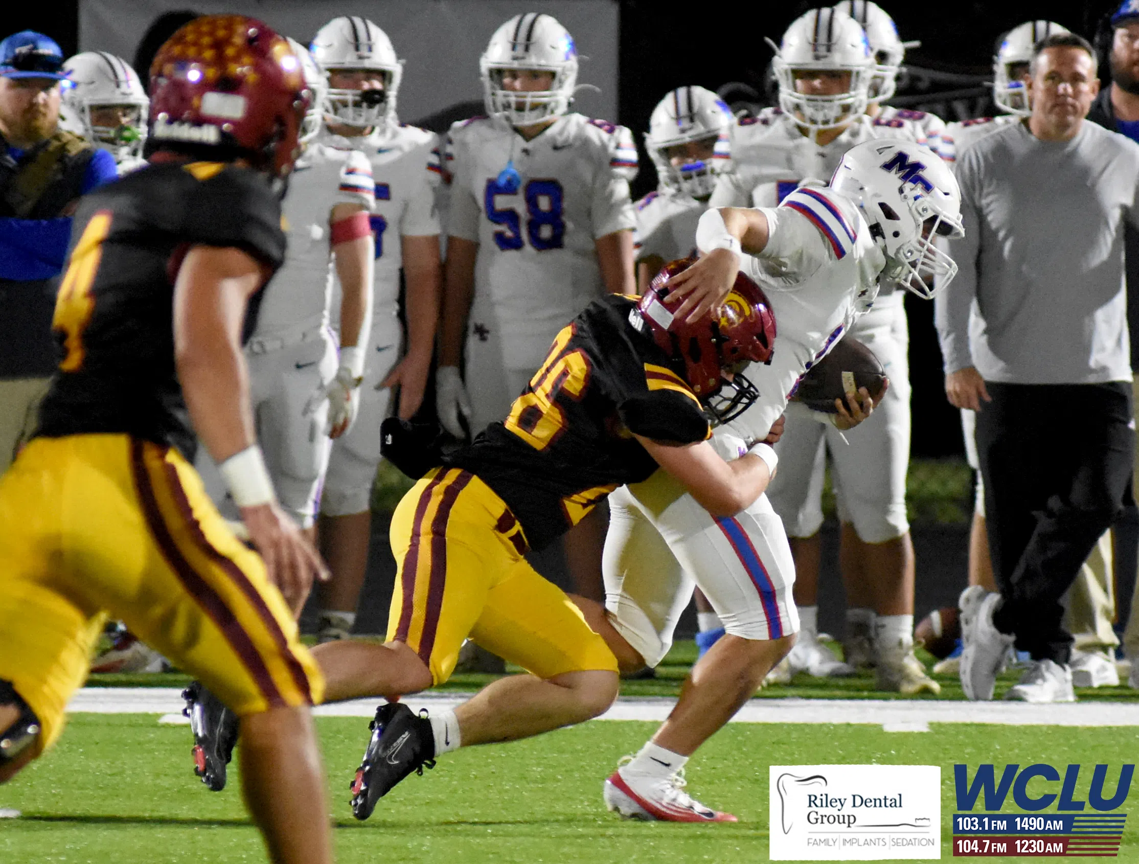Barren County’s Corbin Wells makes a tackle against Macon County, Tenn. The Trojans lost, 29-14. James Brown/WCLU Sports