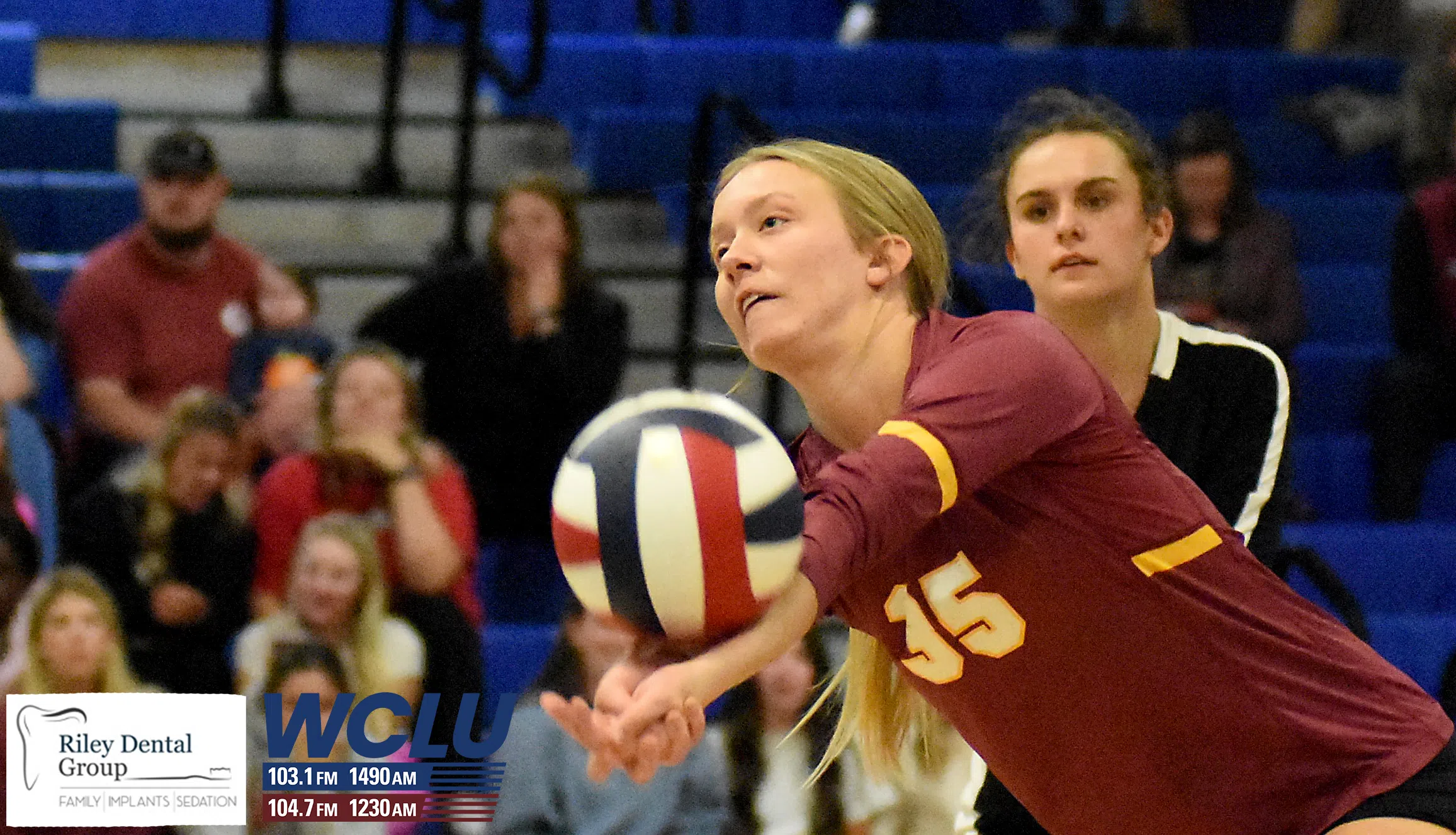 Barren County’s Ann Ashley Atkinson digs the ball against Warren East in the 15th District Volleyball Tournament. The Trojanettes lost, 3-0. James Brown/WCLU Sports