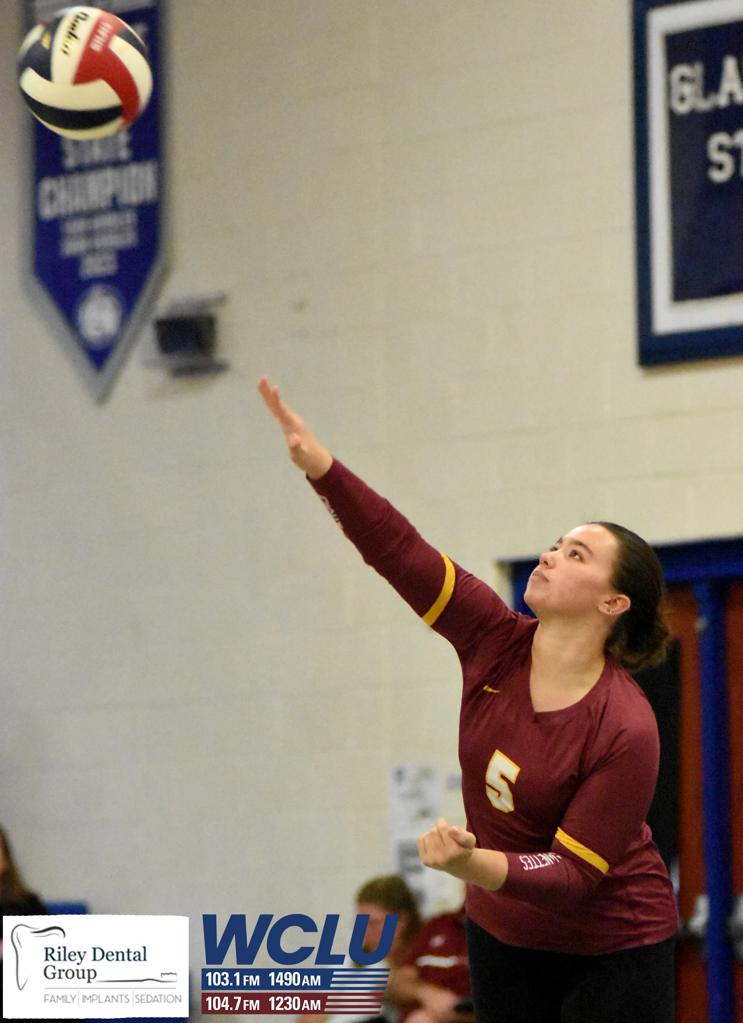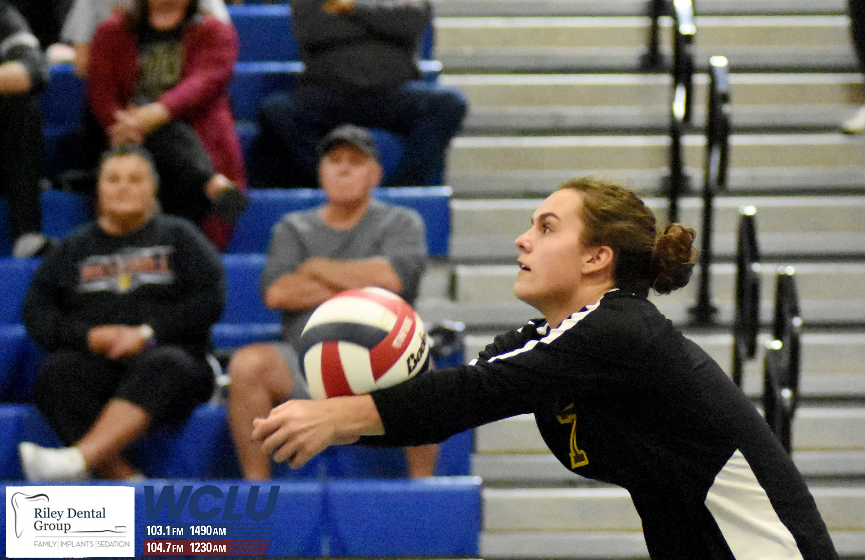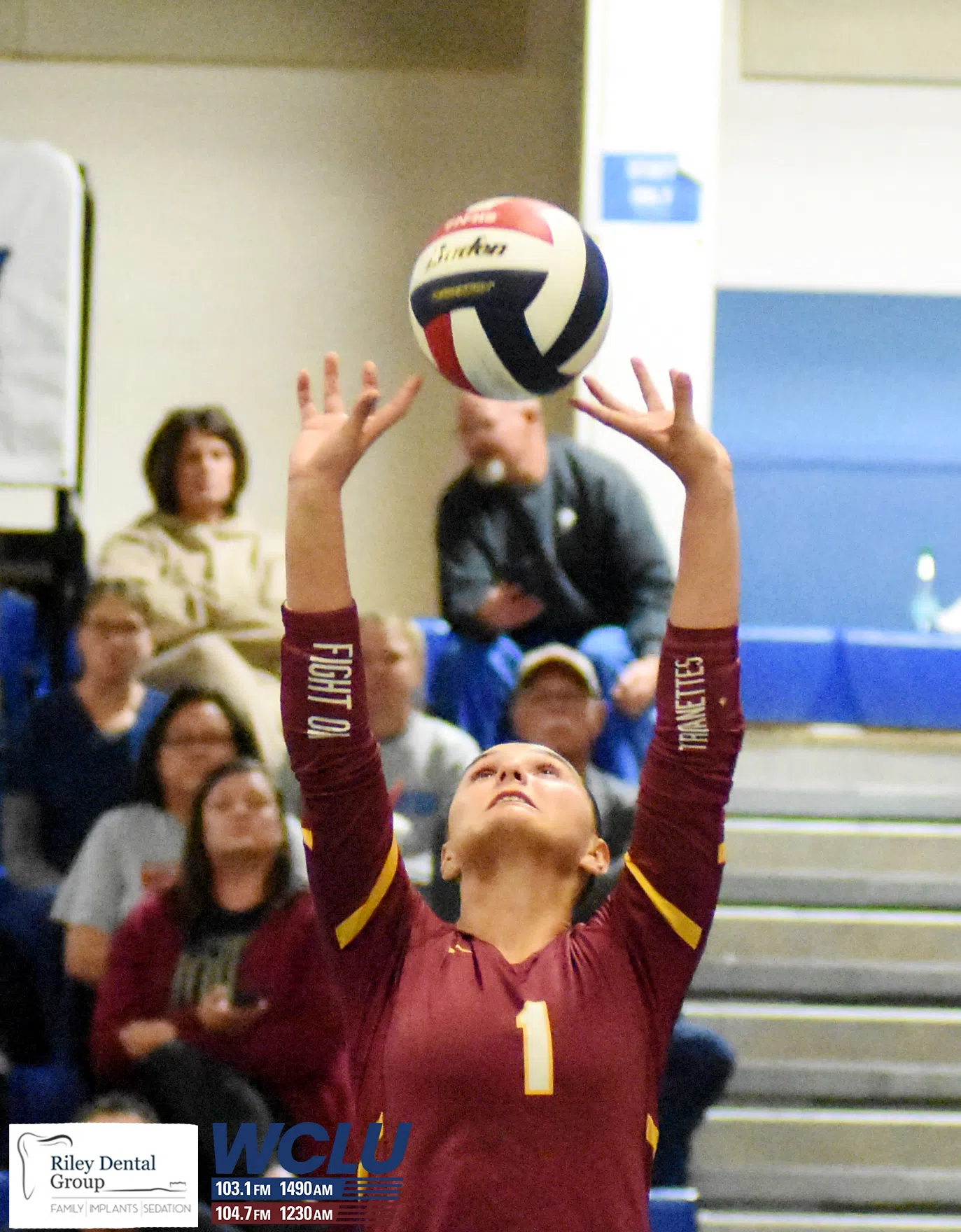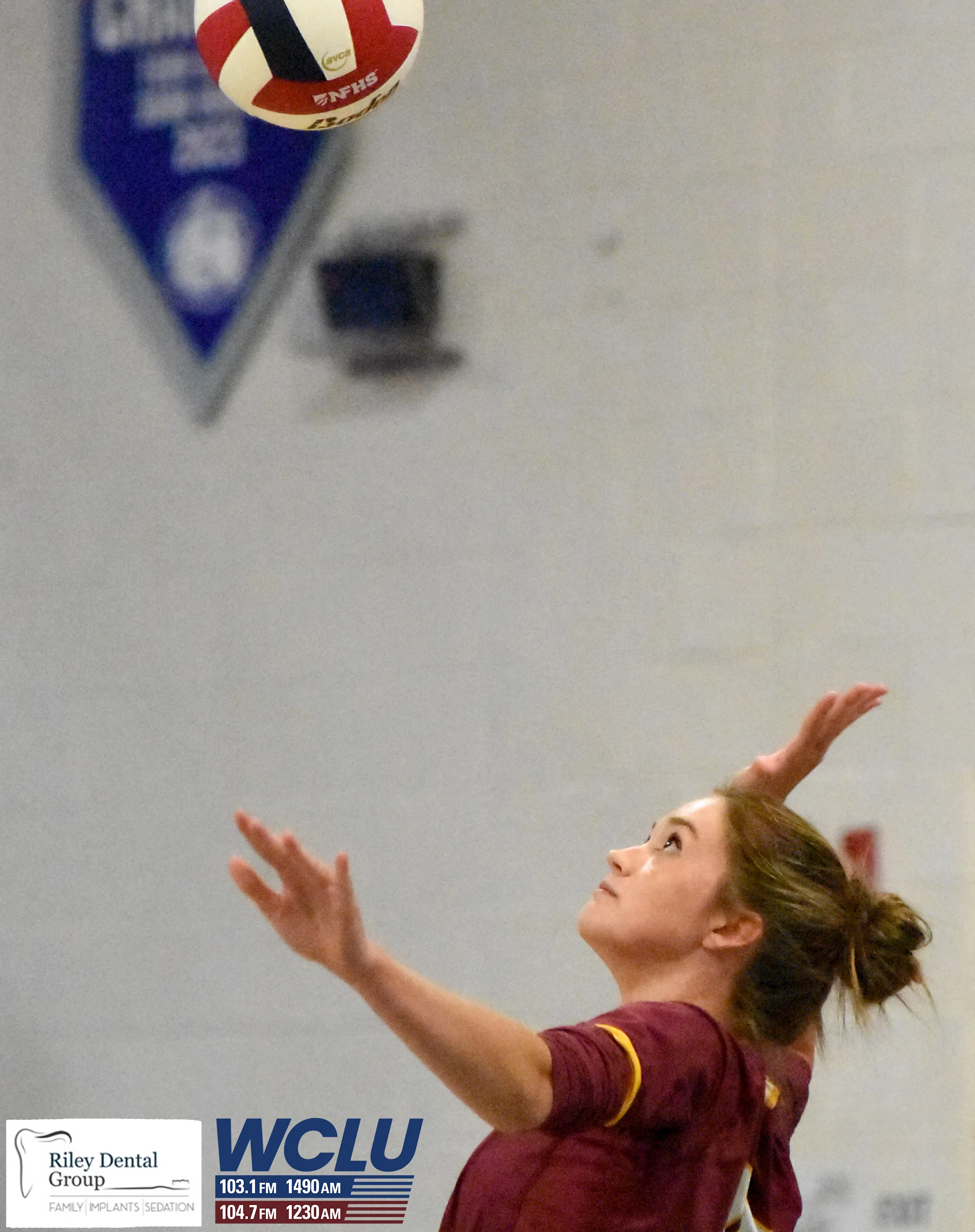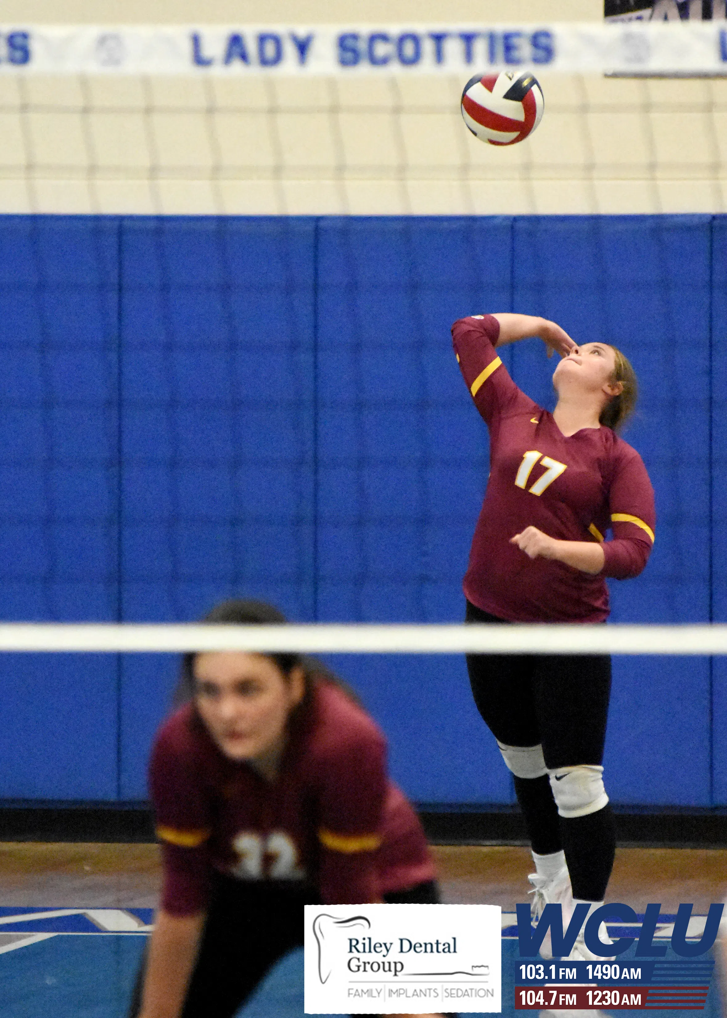 Barren County’s Josey Moore sets the ball against Warren East in the 15th District Volleyball Tournament. The Trojanettes lost, 3-0. James Brown/WCLU Sports