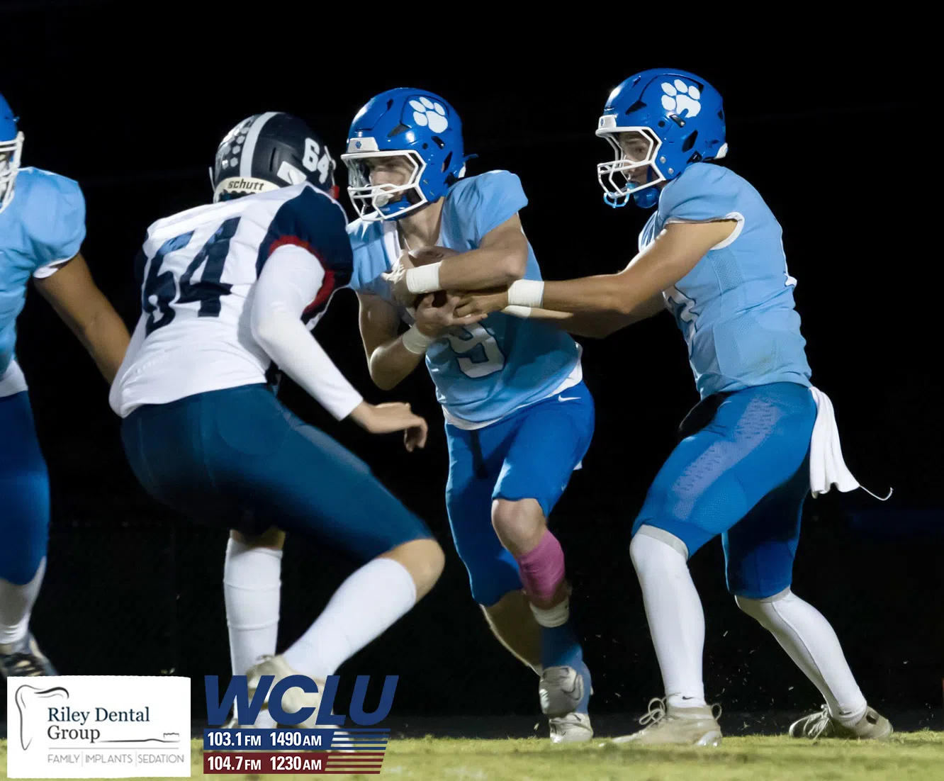 Glasgow’s Jaithan Franklin and Jaylen Bradley lead as Kaebran Jones runs with the football against Edmonson County. The Scotties won, 57-0. Addie McCoy/For WCLU Sports